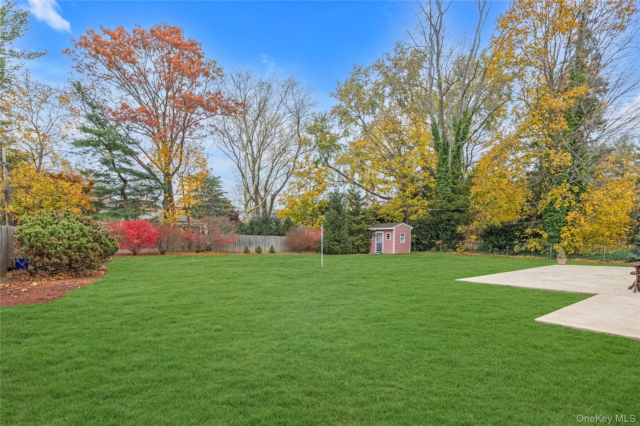 This charming and bright 3-bedroom ranch is set on a beautifully manicured .43-acre property in a quiet mid-block location. The home features a spacious living room and a dining room that opens to the den, creating an easy and comfortable flow. The eat-in kitchen is conveniently located, and an updated full bath and hardwood floors throughout add to the home's appeal. The full lower level offers excellent storage, a laundry room, and potential playroom or recreation space. Additional highlights include updated windows and a one-car garage. Enjoy the large backyard and patio area-perfect for outdoor entertaining or relaxation. Located in the Commack School District, this home offers comfort, convenience, and a peaceful setting.