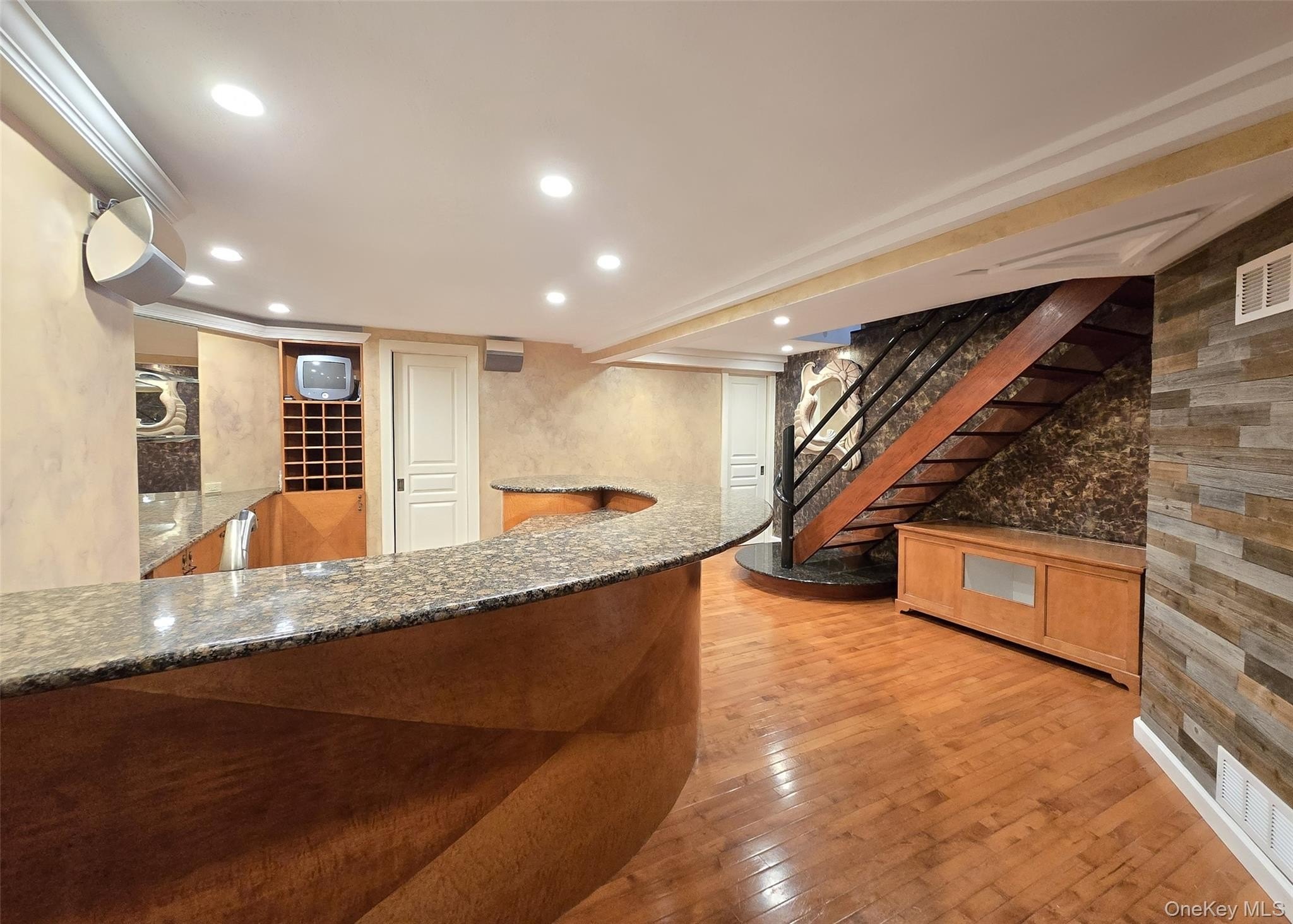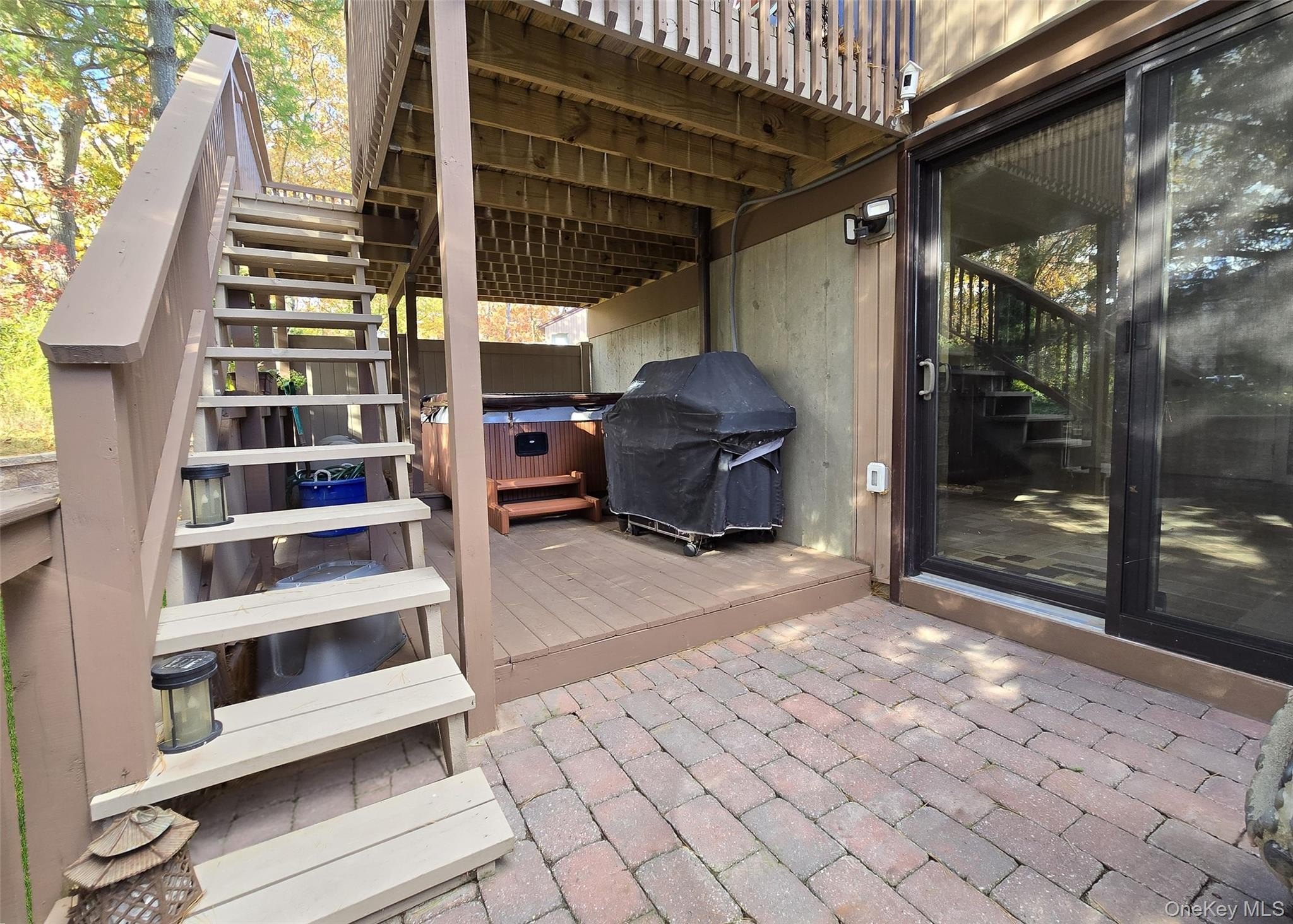 Rare opportunity in the desirable Timber Ridge Development! This extensively renovated 3-bedroom, 2.5-bath tri-level end unit has been completely updated with premium upgrades throughout. Recent improvements include a new roof, dual-zone HVAC system with 3-zone heat and 2-zone central air, new energy-efficient windows, new stainless steel appliances, and fully remodeled kitchen and bathrooms. The main level showcases a bright, open kitchen with custom windows that flood the space with natural light. The adjacent formal dining room features soaring cathedral ceilings and expansive windows, while the inviting living room centers around a gas fireplace with custom accent lighting and opens to a bi-level deck, perfect for outdoor entertaining. The primary suite offers a peaceful retreat with skylight, updated en-suite bathroom, and generous closet space. Additional bedrooms provide ample room for family or guests, with large closets throughout. Upstairs, a versatile loft area offers space for a home office, reading nook, or additional living area. The fully finished basement is an entertainer's dream, featuring a custom wet bar with granite countertops, Bose surround sound system, custom shelving, elegant lighting, and a stunning see-through gas fireplace connecting to the spacious family room. Step outside to your private patio oasis complete with hot tub for ultimate relaxation. This end-unit location provides added privacy and natural light, plus the convenience of an attached garage. Part of the highly desired Sachem School District and perfectly positioned for commuters with easy access to the LIRR station, major highways, MacArthur Airport, shopping, and dining. Don't miss this exceptional move-in ready home with every upgrade imaginable!