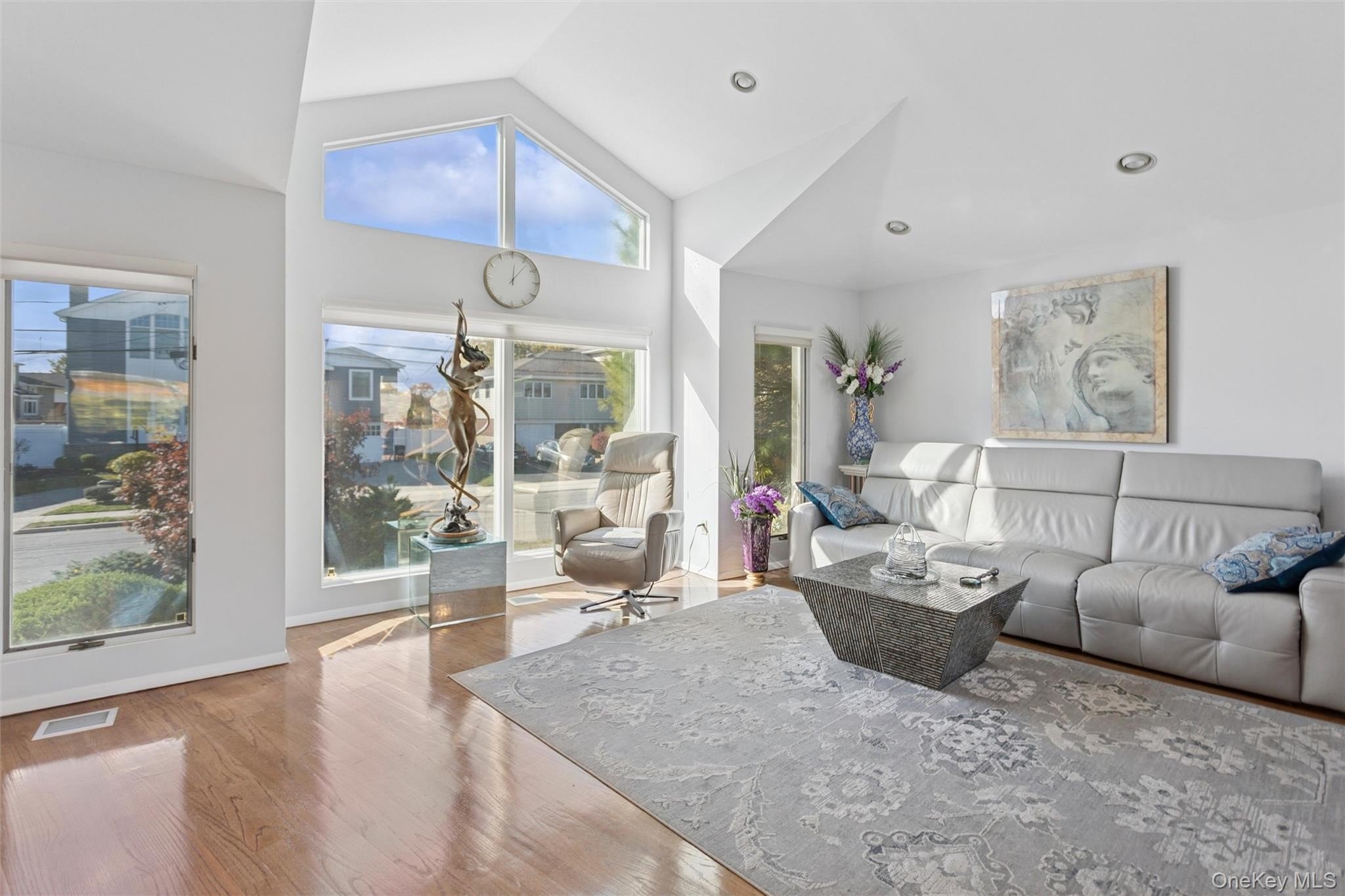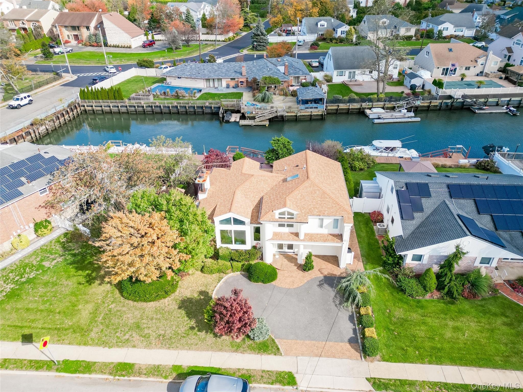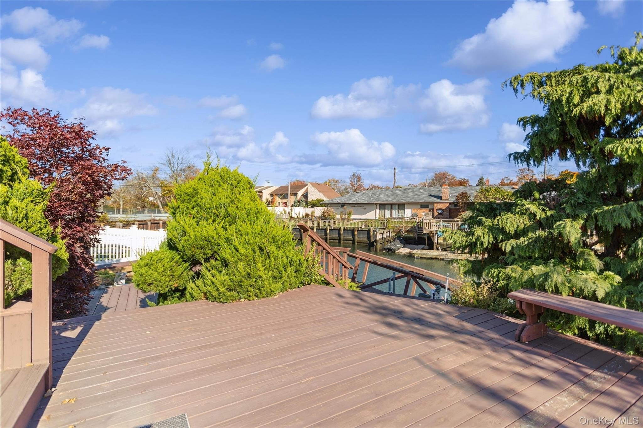 Opportunity Knocks! Welcome to this stunning South Merrick waterfront split, offering a contemporary vibe with an open, airy layout and soaring vaulted ceilings. This sun-drenched home combines modern comfort with casual elegance, featuring an updated eat-in kitchen, cozy den with fireplace, and a bright four-season room perfect for year-round enjoyment. Step outside to your own private oasis-beautifully landscaped grounds with multiple decks, a tranquil koi pond, and deep-water docking just minutes to the open bay. Ideal for the boating or fishing enthusiast, this property truly captures the best of coastal living. Custom windows, skylights, and gleaming hardwood floors enhance the natural light throughout, while sliders provide easy access to all your outdoor entertaining areas. With low taxes, great curb appeal, this home is a rare find. Experience the South Merrick waterfront lifestyle at its finest!