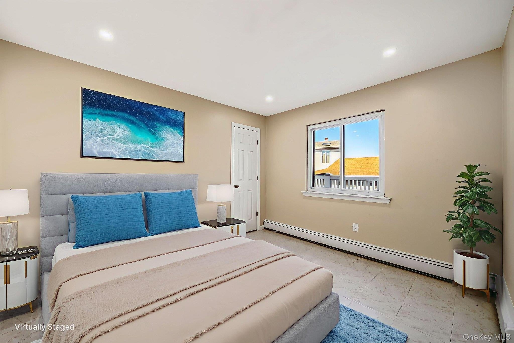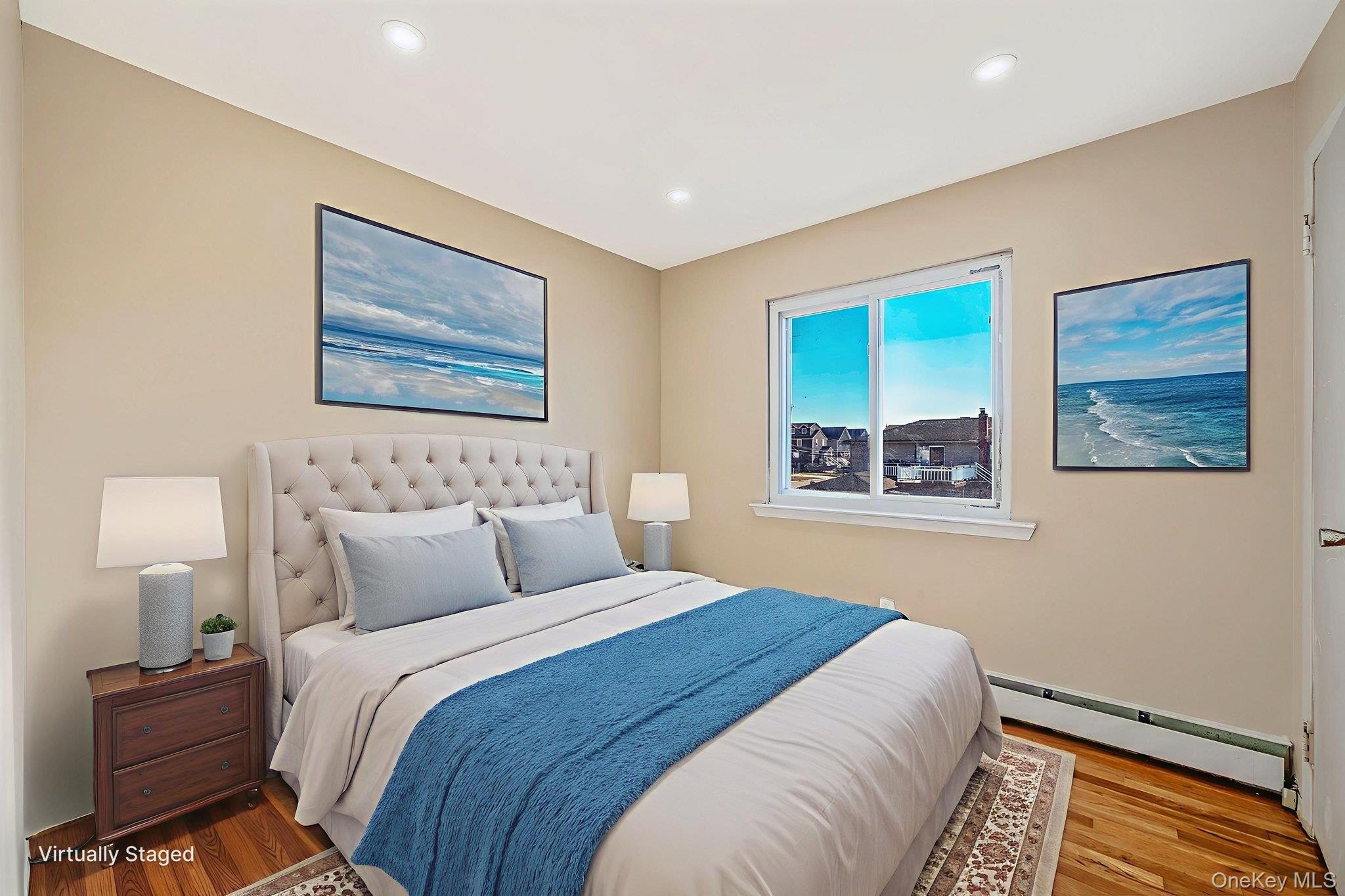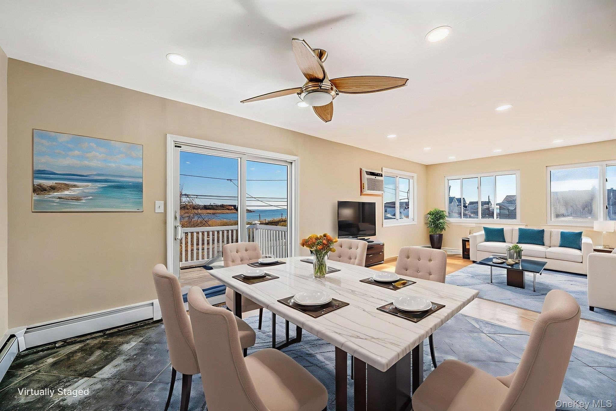 Welcome to 4 Bay Place, a spacious high-ranch home with a properly permitted Accessory Dwelling Unit (ADU) offering versatile living options for extended family or rental income. This 5-bedroom, 3-bath residence spans approximately 2,005 sq. ft. and features an attached garage, updated flooring, recessed lighting, and sun-filled rooms throughout. The main level provides a bright open layout, generous bedrooms, and two full baths, while the lower level includes a full kitchen, additional bedrooms, and a separate entrance. Perfectly positioned in the desirable Venetian Shores area, this home showcases beautiful bay and water views from multiple rooms. Residents enjoy Venetian Park access, private beach rights, and the Lindenhurst Beach Pavilion-ideal for morning strolls, kayaking, or sunset views. Conveniently located near local restaurants, shops, schools, and the LIRR, this home blends comfort, flexibility, and the essence of Long Island coastal living. Some photos have been virtually staged to help visualize space and potential layout.