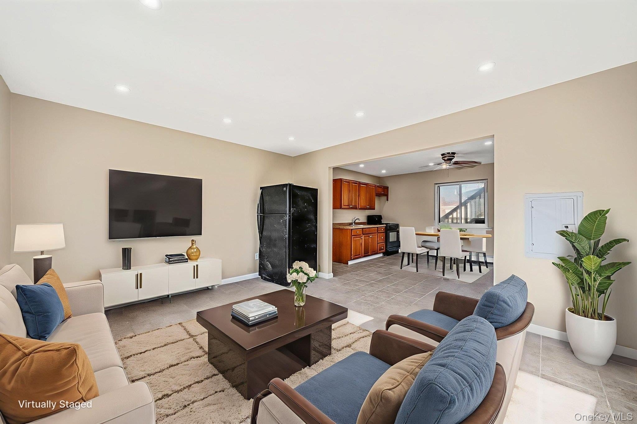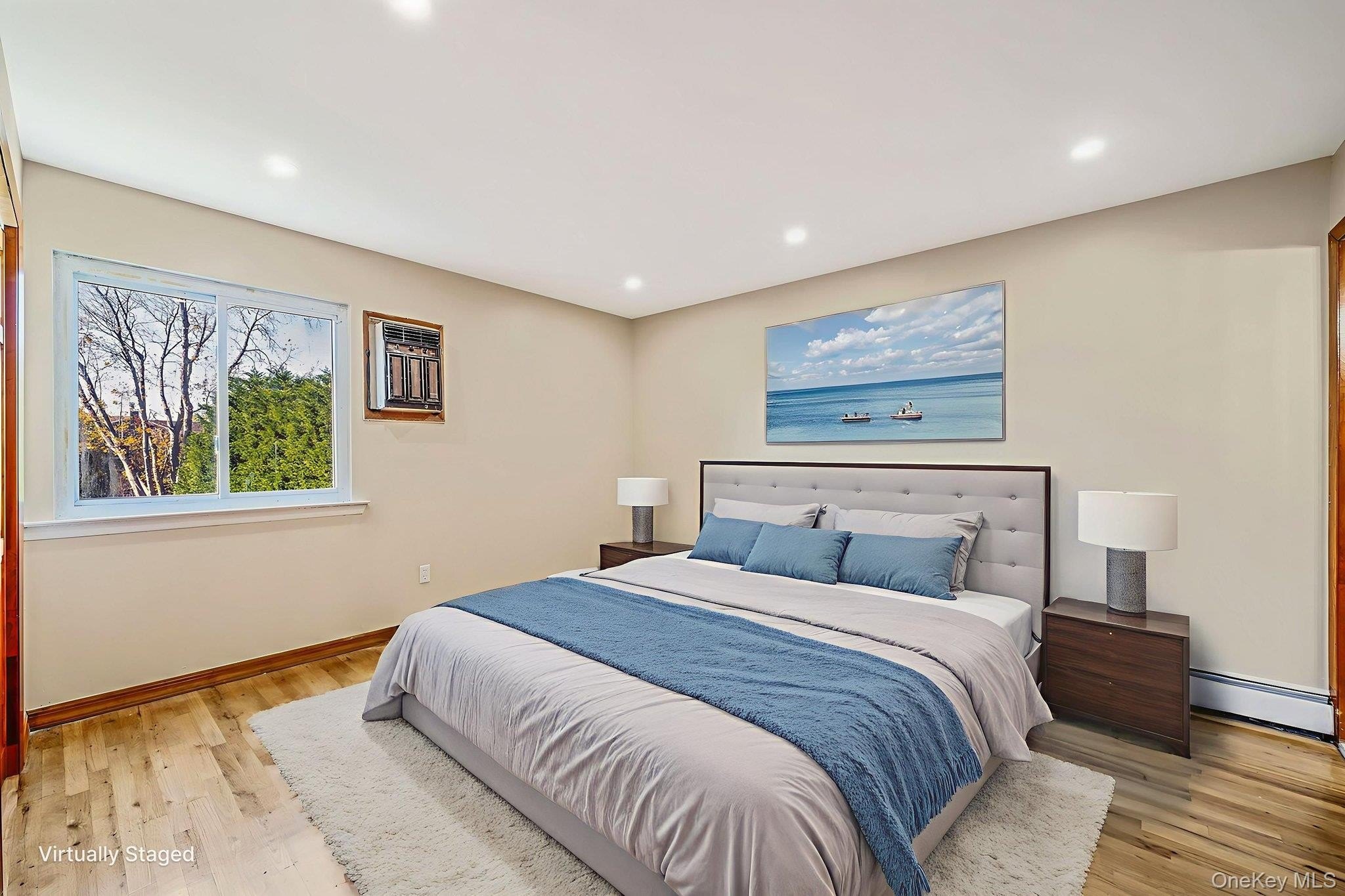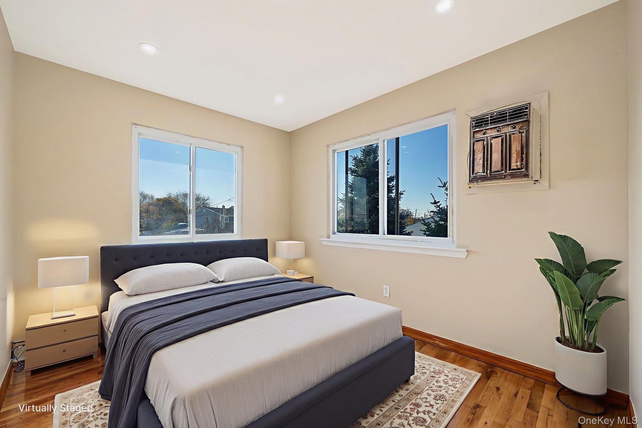 Welcome to 4 Bay Place, a spacious high-ranch home with a properly permitted Accessory Dwelling Unit (ADU) offering versatile living options for extended family or rental income. This 5-bedroom, 3-bath residence spans approximately 2,005 sq. ft. and features an attached garage, updated flooring, recessed lighting, and sun-filled rooms throughout. The main level provides a bright open layout, generous bedrooms, and two full baths, while the lower level includes a full kitchen, additional bedrooms, and a separate entrance. Perfectly positioned in the desirable Venetian Shores area, this home showcases beautiful bay and water views from multiple rooms. Residents enjoy Venetian Park access, private beach rights, and the Lindenhurst Beach Pavilion-ideal for morning strolls, kayaking, or sunset views. Conveniently located near local restaurants, shops, schools, and the LIRR, this home blends comfort, flexibility, and the essence of Long Island coastal living. Some photos have been virtually staged to help visualize space and potential layout.