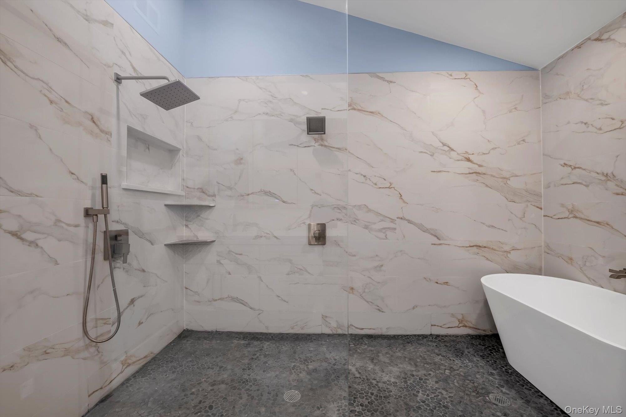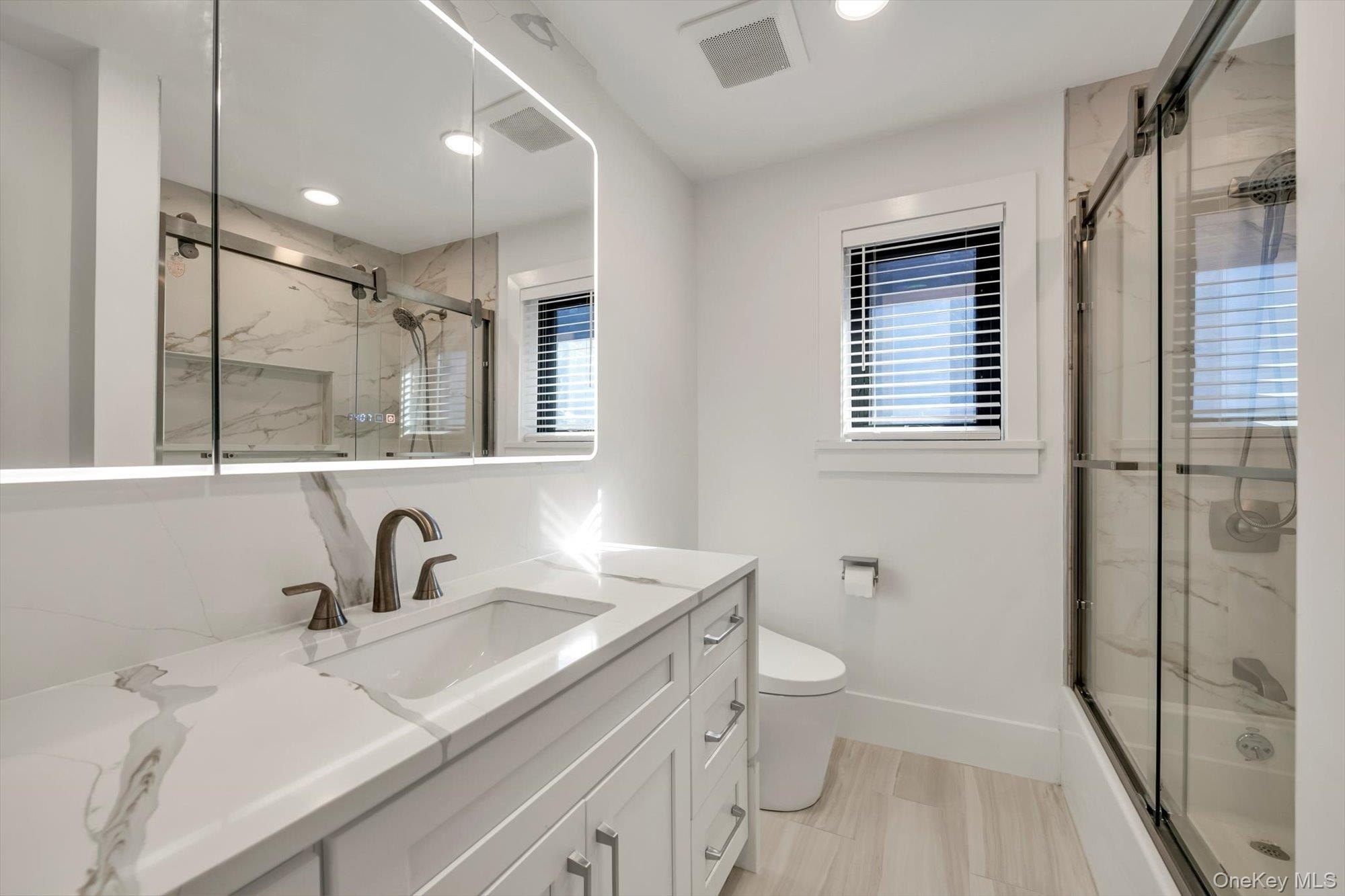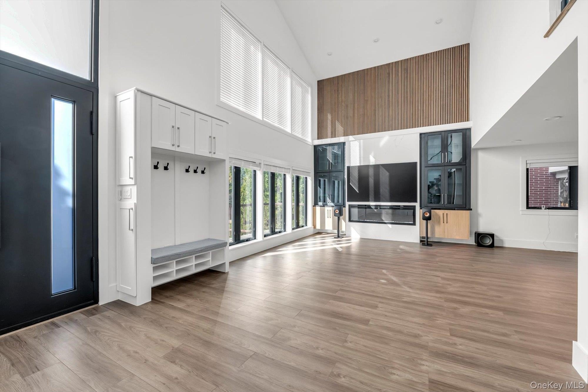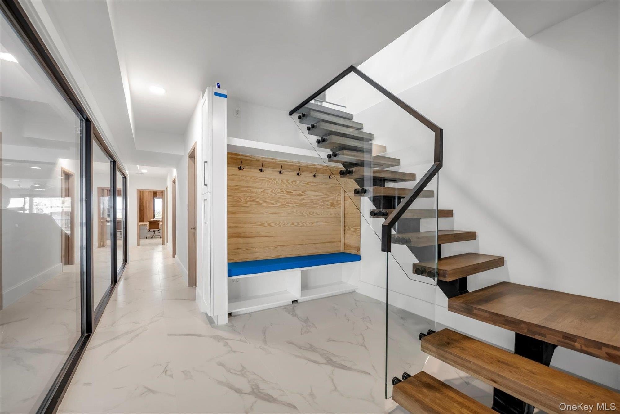 Experience coastal luxury at its finest in this 2025 newly renovated modern masterpiece, where panoramic ocean views meet exquisite craftsmanship. The main level features an open-concept layout with floor-to-ceiling windows framing endless sea vistas. A chef's dream kitchen showcases custom inset cabinetry, 3" mitered quartz countertops, full-height quartz backsplash, and a stunning quartz breakfast island with seating for seven. Premium appliances by Wolf, Subzero, and Cove ensure a top-tier culinary experience, with plumbing ready for a steam oven. The living and dining areas flow seamlessly onto the ocean-facing deck and pool, perfect for entertaining or quiet sunset moments. Upstairs, the primary suite offers a full wall of glass overlooking the bay, creating a serene, resort-like retreat. The spa-inspired bathroom includes a soaking tub, marble walls, and dual vanities. The lower level features a recreation lounge, private office with custom cabinetry and quartz surfaces, and direct access to the pool terrace. Unique architectural details include a floating steel staircase with solid 3" walnut treads, a glass-wall garage with car lift, and an 18-foot electro-chromatic glass front door that turns opaque at the touch of a button. A rare combination of design, technology, and breathtaking views-this home redefines coastal living.