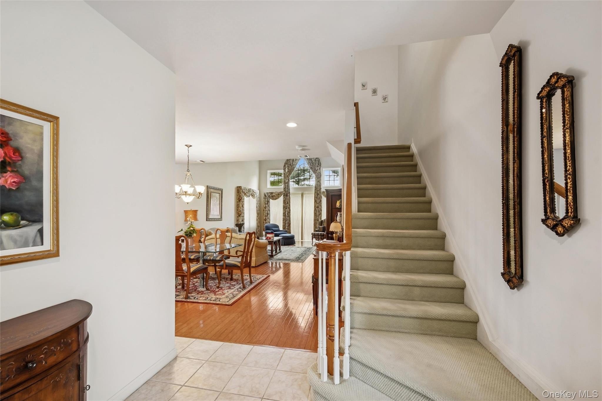 Enjoy Country Club living in this spacious Mirasol model townhouse located in The Greens at Half Hollow. This home offers 3 bedrooms, 2 1/2 bathrooms and a stunning main-level layout featuring a grand entryway, pristine wood floors, and a primary suite with a tray ceiling, three walk-in closets, a large bathroom, and a convenient laundry area. The great room boasts vaulted ceilings, floor-to-ceiling windows, and a sliding door leading to the patio. The kitchen includes granite countertops. The second floor features a loft area, two additional bedrooms, and a full bath. In addition to a 24-hour attended gatehouse and on-site security patrol, the community offers exceptional amenities: a beautiful clubhouse, indoor pool, gym, spa, sauna, steam room, card room, restaurant, library, concierge services, tennis courts, outdoor pool, walking trails, and optional golf. This is an adult community with a minimum age requirement of 55 and low taxes.