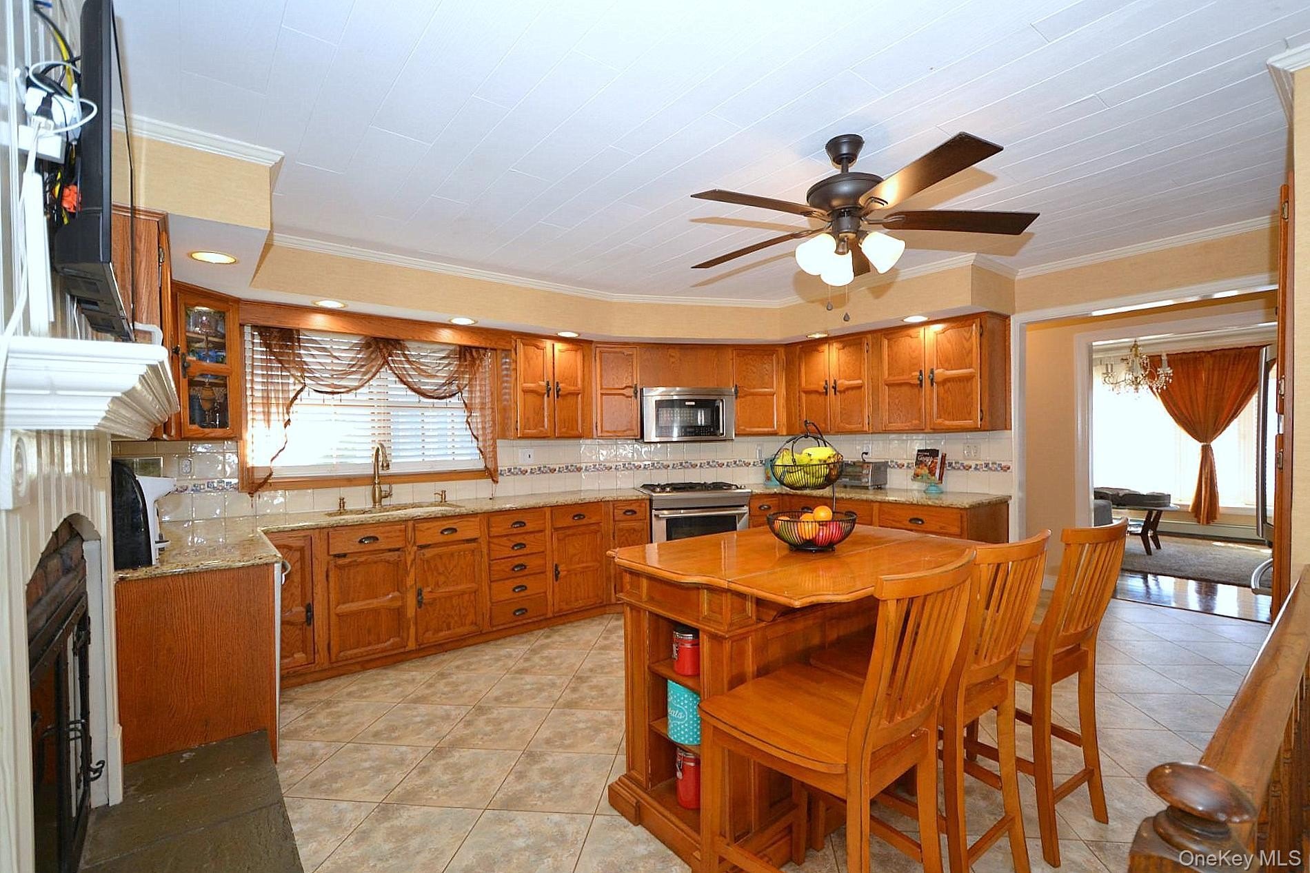 Experience timeless elegance in this impeccably maintained 4 Bedroom, 2.5 Bath Colonial, situated on a shy 1/2 acre Landscaped and Fully Fenced Grounds. From the moment you arrive, the Home's Curb Appeal and Gardens set the tone for the sophistication found inside. Enter the Foyer with Tile Flooring that Flows into the Eat In Kitchen. Step into the Inviting Formal Living Room Anchored by a Classic Wood Burning Fireplace and the Formal Dining Room with Gleaming Oak Hardwood Flooring throughout the First Level. The Gas Fireplace adds Warmth to the Eat-In-Kitchen, Appointed with Oak Cabinetry, Granite Counters and Stainless Steel Appliances. The Main Level Primary Bedroom offers a Spacious Walk-In Closet and an Additional Main Floor Bedroom or Home Office, and a Full Bath with a Whirlpool Tub. The Second Floor continues the theme of comfort and style with 2 Expansive Bedrooms, One is a Second Primary with a Spacious Walk-In Closet, Enhanced by Mohawk Laminate wood-look flooring throughout. The Full, Partially Finished Basement offers Potential with dedicated spaces for a Playroom/Home Office, Laundry, Half Bath and Utilities. The Attached 2-Car Garage has an Extra Wide Driveway. Roof is 2 Years Young. Condition is Mint. A Must-See Home Offering Space and Comfort.