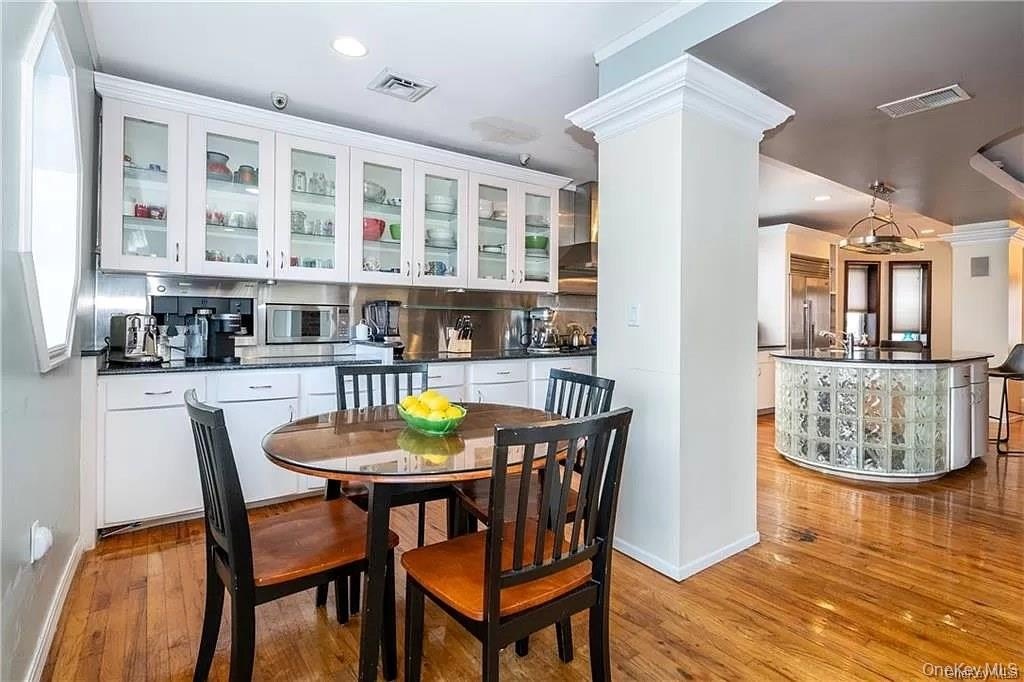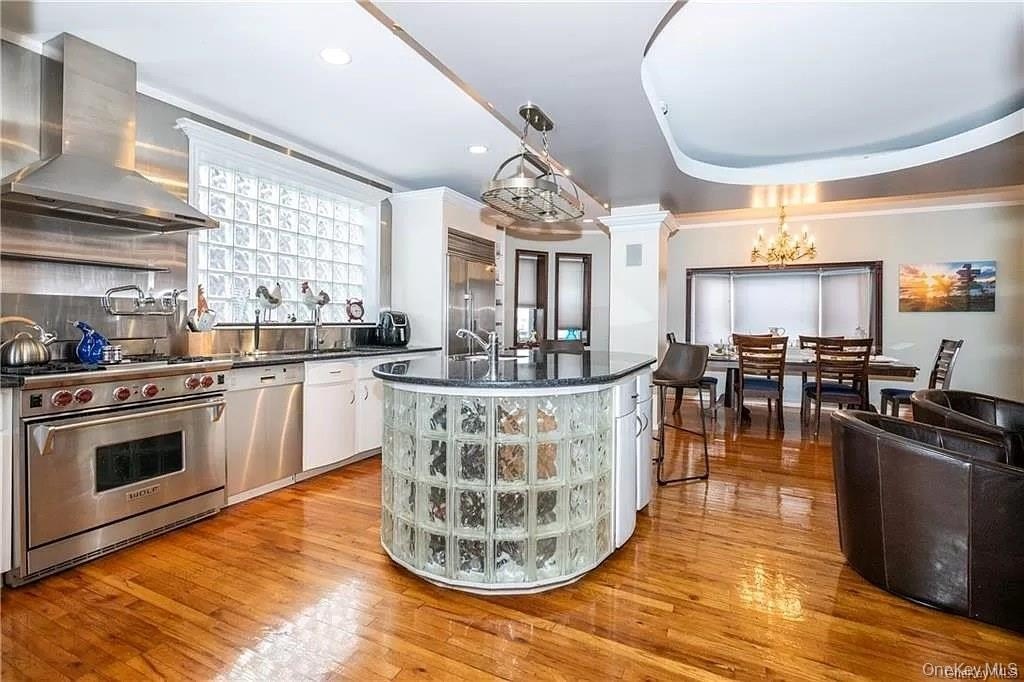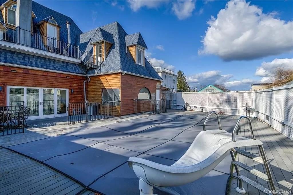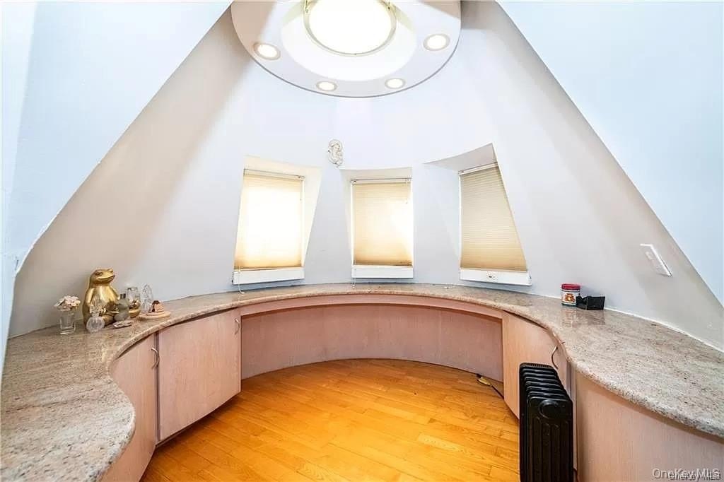 Don't miss the chance to own this unique home, perfectly positioned to capture beautiful water views throughout. The first floor is designed with openness and flow in mind, creating a welcoming setting for both everyday living and hosting. The gourmet kitchen is outfitted with high-end stainless-steel appliances-including a Wolf stove with pot filler, Sub-Zero refrigerator, Bosch dishwasher, and a built-in Miele espresso machine-plus an island featuring a prep sink and granite countertops. This level also includes a dining area, warm pellet fireplace, and an expansive great room offering a home theater, piano, additional fireplace, and a full bar. The second story hosts three spacious bedrooms. The primary suite stands out with its walk-in closet, private bath, fireplace, convenient laundry room, and direct access to an outdoor balcony. On the top floor, you'll discover extra rooms that can easily serve as guest quarters, creative studios, or extended living areas, along with another full bathroom for added convenience. The property also includes a remote-operated electric gate for added security along with a detached one-car garage.