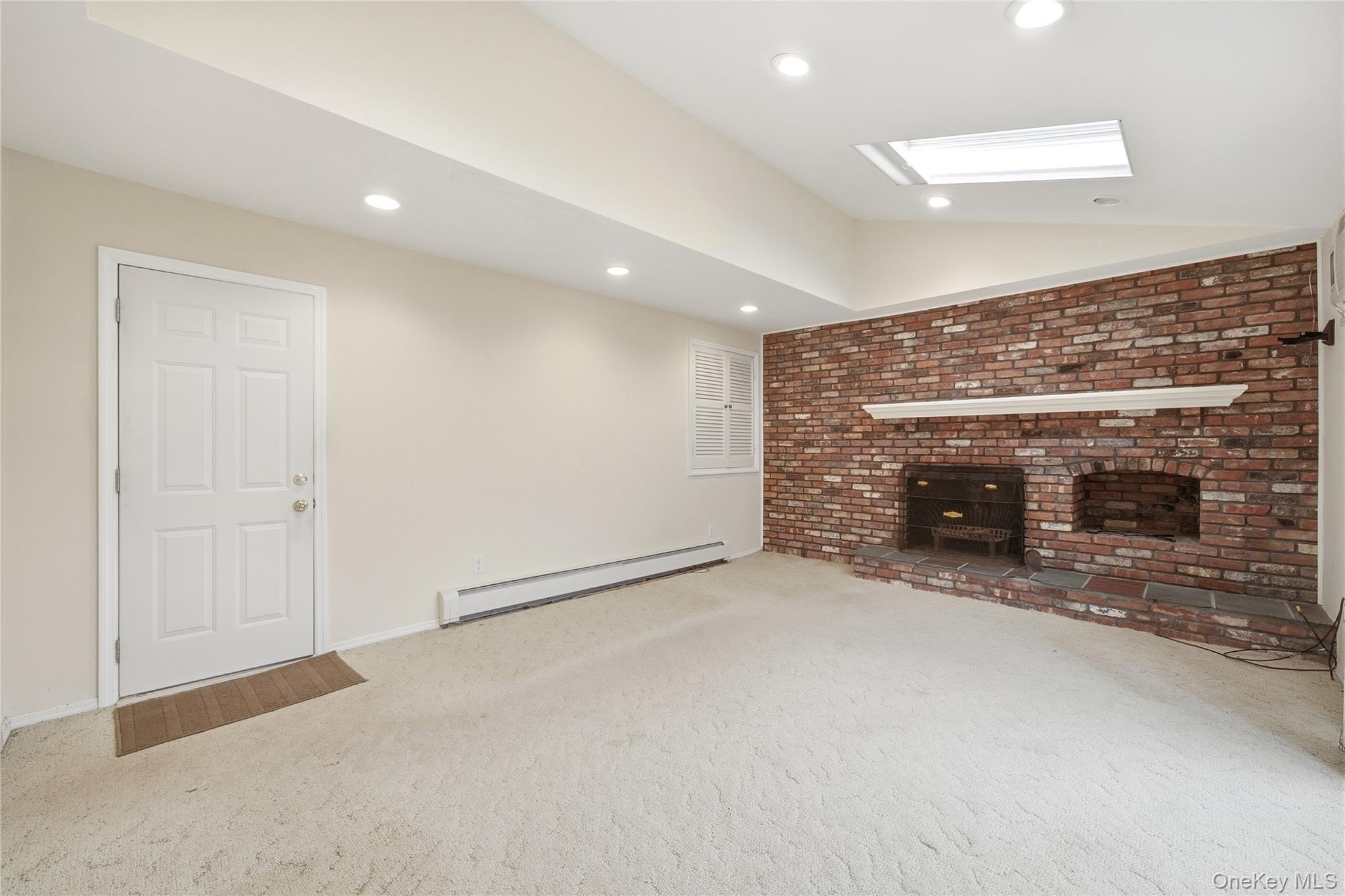Welcome to 16 Pantzer Street, a beautifully maintained 4-bedroom, 2.5-bath Laurel Colonial in the heart of prestigious Todd Estates North, Smithtown. Timeless curb appeal greets you with classic antique brick accented by vinyl siding and a grand columned portico spanning the entire front of the home. Flooded with natural light from skylights in both the kitchen and living areas, this move-in-ready residence features gleaming hardwood floors throughout. The expansive updated kitchen boasts granite countertops, sleek stainless steel appliances, a countertop range with hood, and a sunny breakfast area. A spacious den, gracious formal dining room, and convenient laundry/mudroom complete the impressive main level. Upstairs, all four generous bedrooms are on one level, including a luxurious primary suite with dressing room, two walk-in closets, and private en-suite bath. Additional highlights include an attached 2-car garage, two-zone oil hot water heat, blacktop driveway, and a serene rolling wooded lot with attractive landscaping and a stunning stone patio-perfect for outdoor entertaining. Along with classic colonial charm, this exceptional home offers the space, light, and style discerning buyers seek in one of Smithtown's most coveted neighborhoods. A rare find!