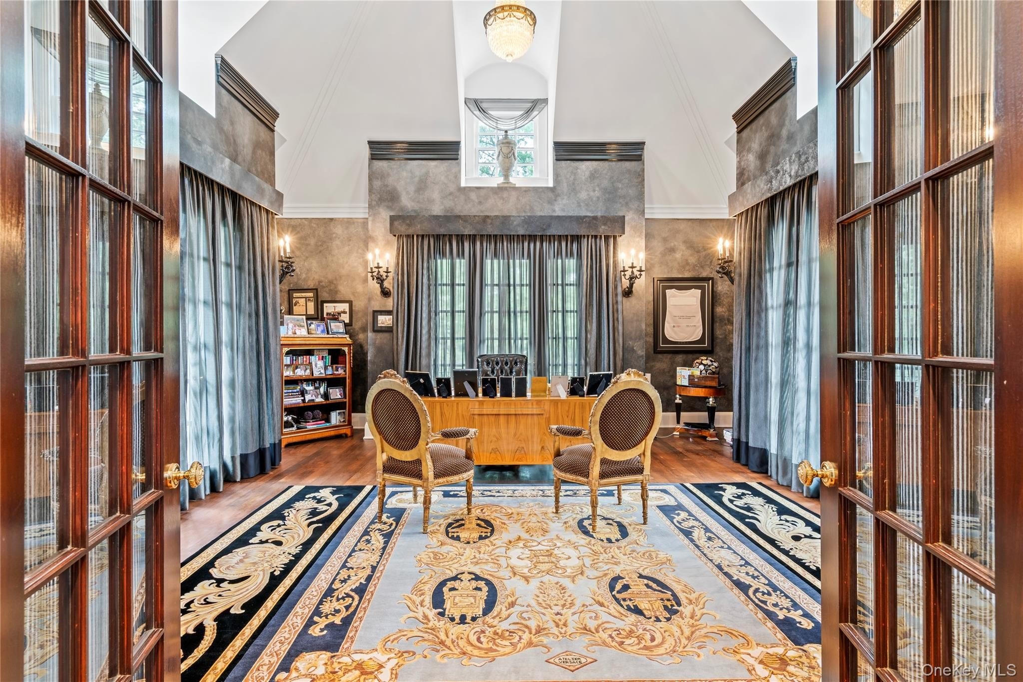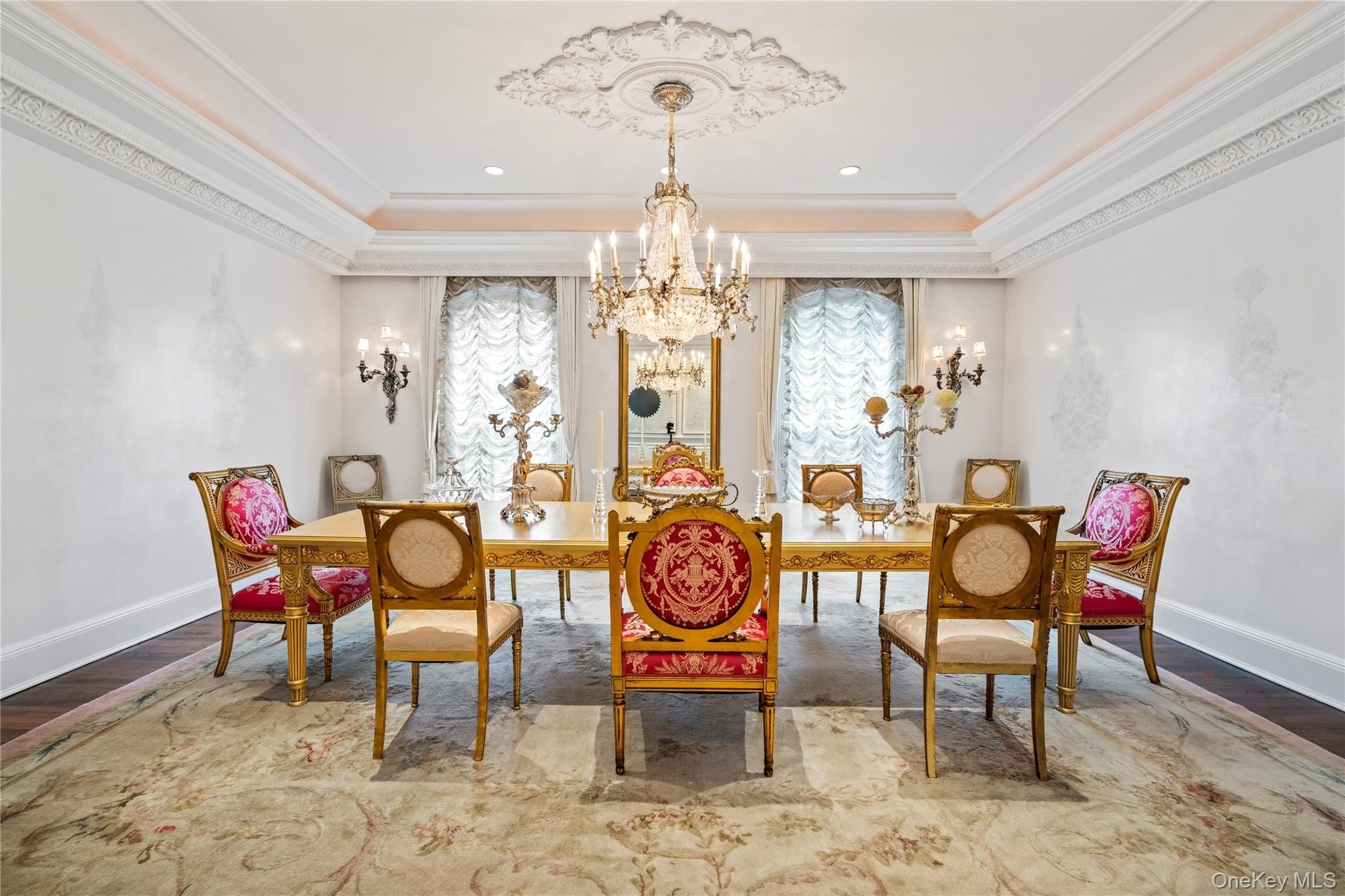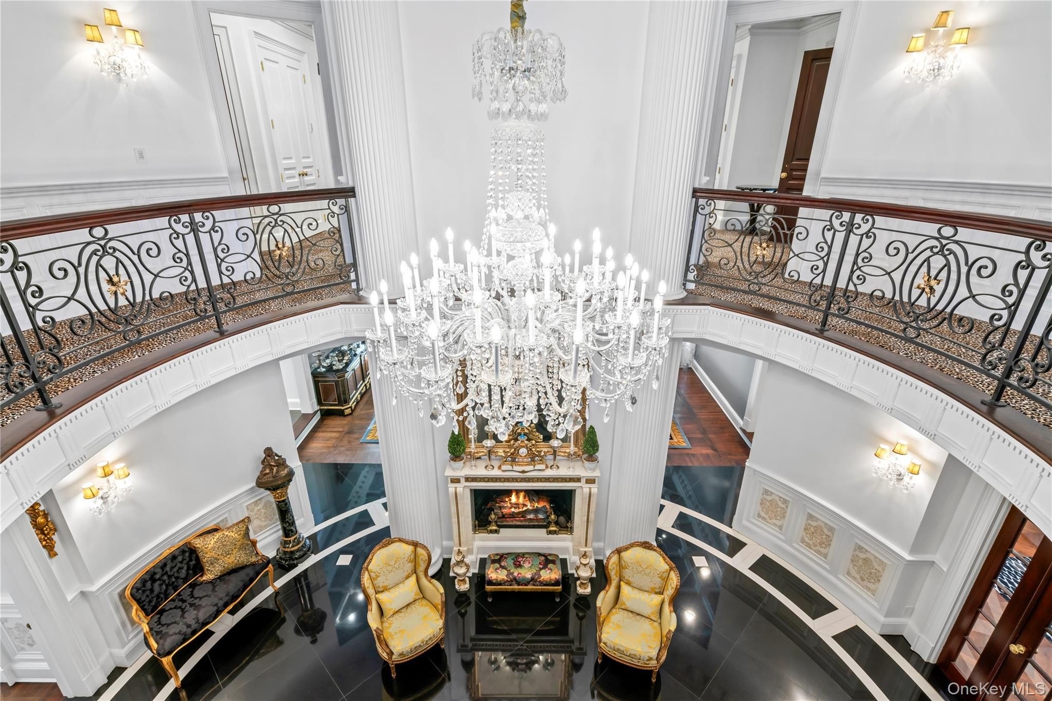 For the Discerning Client who seeks only the Finest....Welcome to 8 Vista Lane in Brookville--where Timeless Design and Bespoke Materials are blended to create this Sophisticated Modern Luxury. A Grand Courtyard leads to the Entrance of this Spectacular Private Estate. The Tone is set as Guests are greeted in the Breathtaking 30'high Domed Circular Reception Gallery adorned with Magnificent Crystal Chandelier, Stunning Marble Floors, Marble Fireplace, Intricate Plaster Moldings & Delicately Hand Painted Gold Leaf Wall Accents. Grandeur continues to an Elaborate Formal Living Room with Mahogany Floors, Shimmering Designer Textured Walls, Built-In Bar/Wine Cabinet, French Marble Fireplace & 2 sets of French Doors leading to an enclosed bluestone Patio for Indoor/Outdoor entertaining ease. Elegant Dinner Parties can be hosted from the private Banquet Dining Room graced with Antique Crystal Chandeliers & wall Sconces surrounded by elegant Venetian Plaster walls with soft handpainted Topiary silhouettes. The spacious Family Room is complimented by beautifully detailed coffered ceiling, Magnificent stone Fireplace and custom Drapery covering 3 sets of French Doors that open to a covered patio with brick archways. The Dream Kitchen is a Gourmet's delight with the most exquisite custom High Resin Wood Cabinetry, Meile & Wolf appliances, a 350 Bottle Wine Refrigerator, custom Illuminated Glass countertops, heated porcelain floors & Breakfast Room overlooking lush greenery. A private Office/Bedroom with soaring Architectural ceiling & doors to a Juliet Balcony and rear Patio is set off a private Hallway. Intricate custom wrought iron railings with gleaming mahogany handrails adorn each of this Manor Homes 4 floors. A circular Hallway embraces the 2nd floor leading to the elaborate Primary Bedroom. This lavish retreat is the epitome of Luxury with custom built-in wardrobe closets, French Marble carved Fireplace,2 separate Full Baths, one in Onyx, the other Marble with large custom walk-in closet, electronic blackout shades & expansive private outdoor patio. 3 additional large bedrooms, each with generous closets, private baths and electric shades complete this floor. The lower level is an open floor plan with play rooms, game room, gym,laundry and full indoor sports court. An entrance to the 4 car garage and stairway to rear property are accessed from this level. A life of privilege and a sanctuary of luxury await the next owners of this extraordinary residence set on two acres with pool/jacuzzi ,tennis, built-in outdoor kitchen, bluestone patios & professional gardens. Jericho SD By Appointment