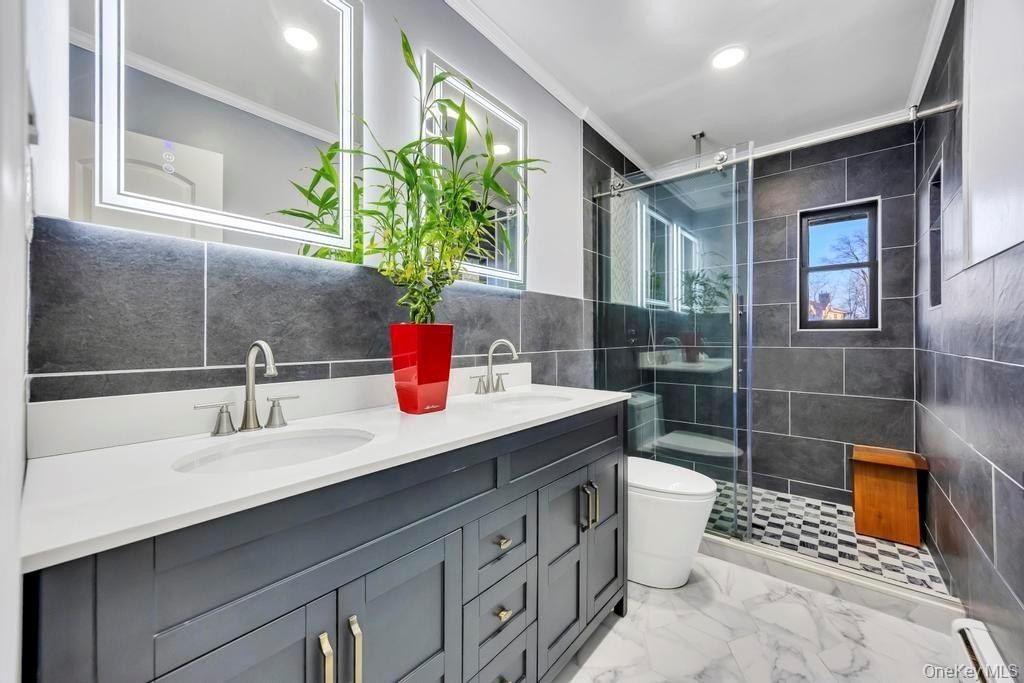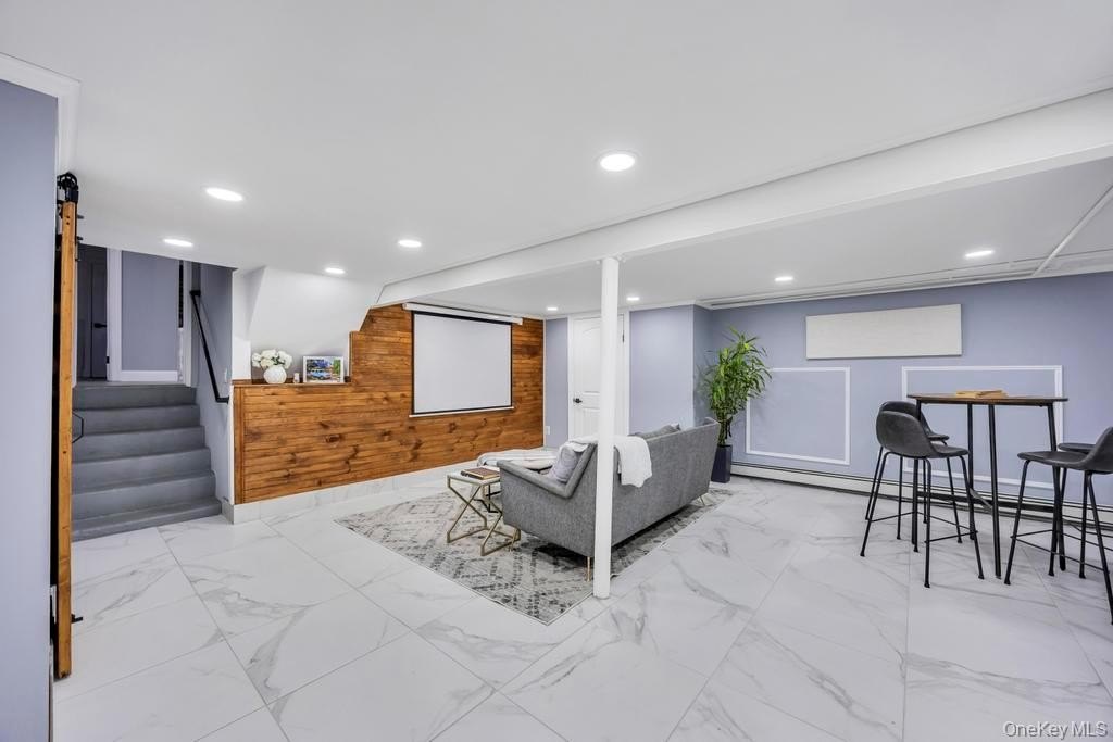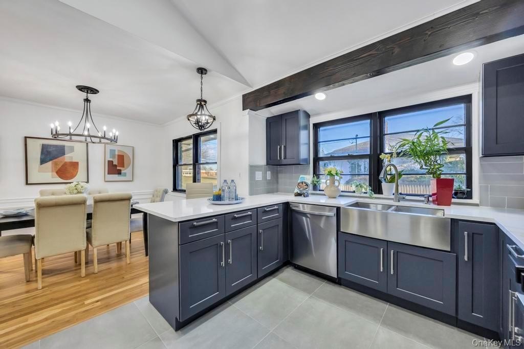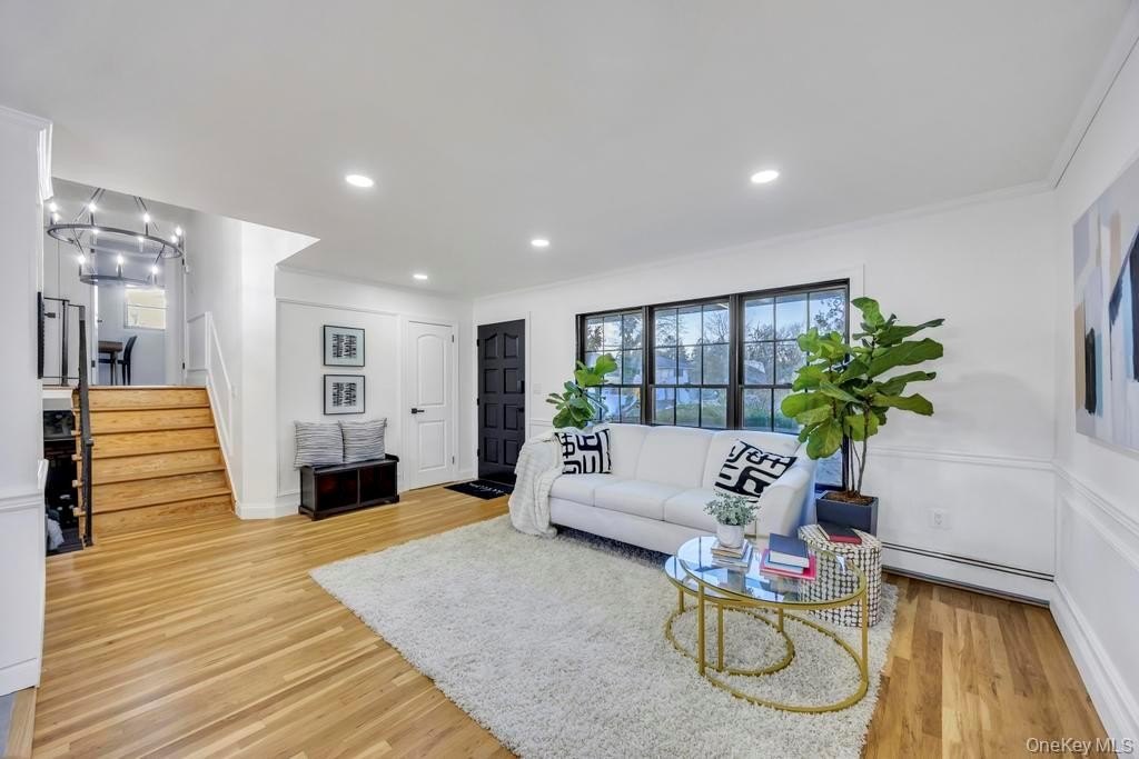 Welcome to this beautifully updated home that seamlessly blends modern design, comfort, and functionality. This spacious residence features 4 bedrooms and 2 fully renovated bathrooms with an airy, open-concept main level filled with natural light. The living and dining areas include sleek finishes and recessed lighting, flowing into a brand-new chef's kitchen with elegant dark cabinetry, quartz countertops, stainless steel appliances, a stylish breakfast bar, and vaulted ceilings. All bedrooms offer new flooring and ample closet space, while both bathrooms have been remodeled with contemporary tilework and premium fixtures. Smart home features include Samsung smart appliances, Ring security, smart locks, and Nest heating, complemented by a new hot water tank, gas boiler, chimney liner, HVAC central air system, and updated plumbing and electrical. A versatile first-floor bonus room is ideal for guests, a home office, or a gym, and the finished basement provides additional living or recreational space. The private fenced backyard includes a vegetable and fruit garden, along with an extra-large garage with a power door and beautiful landscaping that enhances the home's curb appeal. Move-in ready with thoughtful upgrades throughout, this home is truly a must-see.