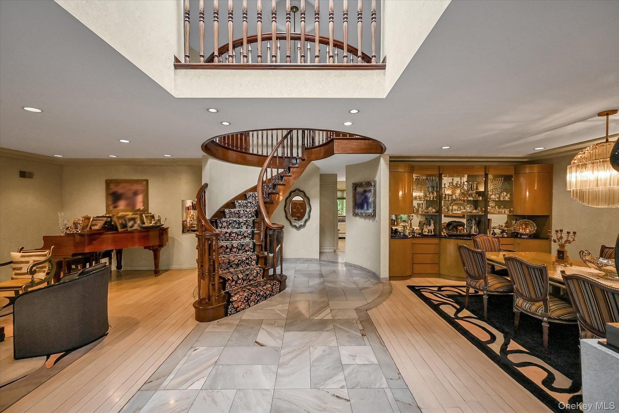 A Rare Offering in Kew Gardens Hills Welcome to this magnificent 60x100 Center Hall Colonial, set on one of the most coveted blocks in Kew Gardens Hills. Homes of this caliber and scale are seldom available, presenting a truly extraordinary opportunity for the discerning buyer. From the moment you step into the grand entryway, you are greeted by an elegant spiral staircase and an abundance of natural light that sets the tone for the home's sophistication. A formal dining room and expansive living room provide the perfect backdrop for both intimate gatherings and large-scale entertaining. The custom gourmet kitchen is a chef's dream, featuring top-of-the-line appliances, a spacious eat-in area, and seamless access to a beautifully designed patio-ideal for outdoor dining and entertaining. The main level also boasts a refined family room with a wood-burning fireplace and sliding doors that open to a spectacular yard, complete with a private basketball court and ample space to create your own outdoor oasis. On the second floor, you will find five generously sized bedrooms, each designed with custom built-ins and extensive closet space. The primary suite is a true retreat, featuring a walk-in closet, dressing area, and a spa-like hotel-style bath. The fully finished basement elevates the lifestyle experience with guest quarters, a playroom, laundry facilities, and a private steam room/sauna for the ultimate in-home relaxation. This is more than a home-it is an unparalleled lifestyle. Rarely does a property of this size, elegance, and presence come to market in Kew Gardens Hills. Do not miss the chance to make it yours.