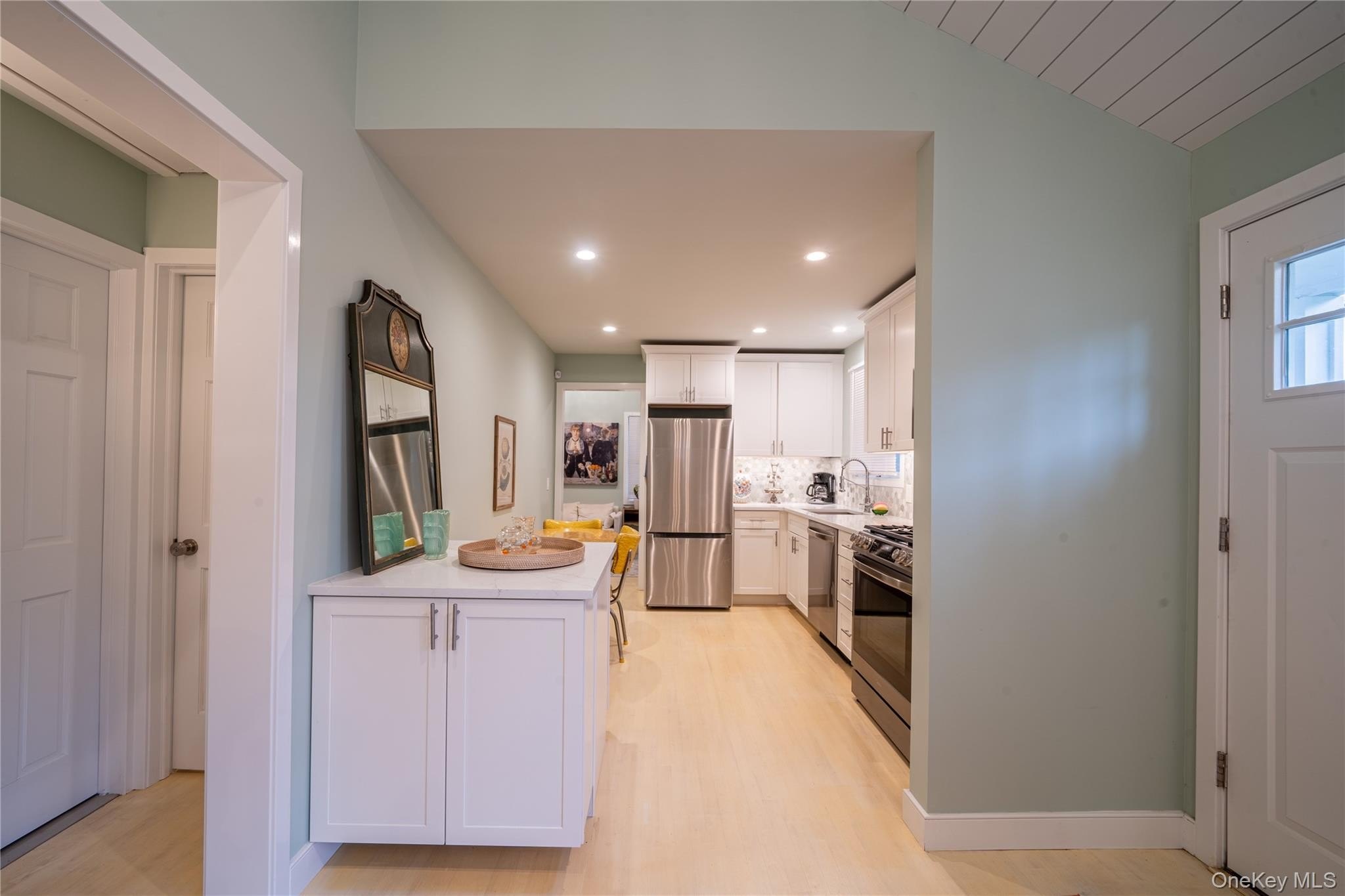 Imagine stepping into your Dream Coastal Retreat at 16 Overbook St in Riverhead's prestigious Reeves Beach Community. This Stunning Cape Cod underwent a meticulous renovation three years ago, transforming it into a masterpiece of modern living. Offering 2 Bedrooms , a luxurious Full Bath , a Custom Kitchen with stainless steel appliances showcasing exceptional attention to detail. The Living Room features dramatic cathedral ceilings that create an airy, sophisticated atmosphere, and a Den or Office with the washer and dryer set/up for extra space. Outside, your private oasis awaits with a deck and outdoor shower, perfect for coastal entertaining, Best of all your exclusive private beach access is just steps away..
