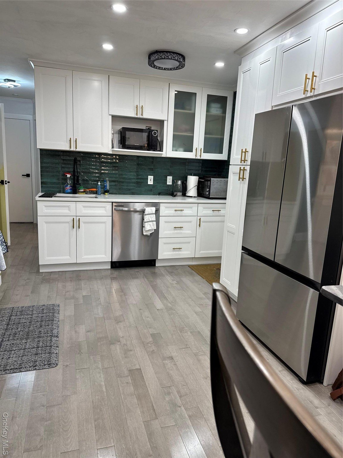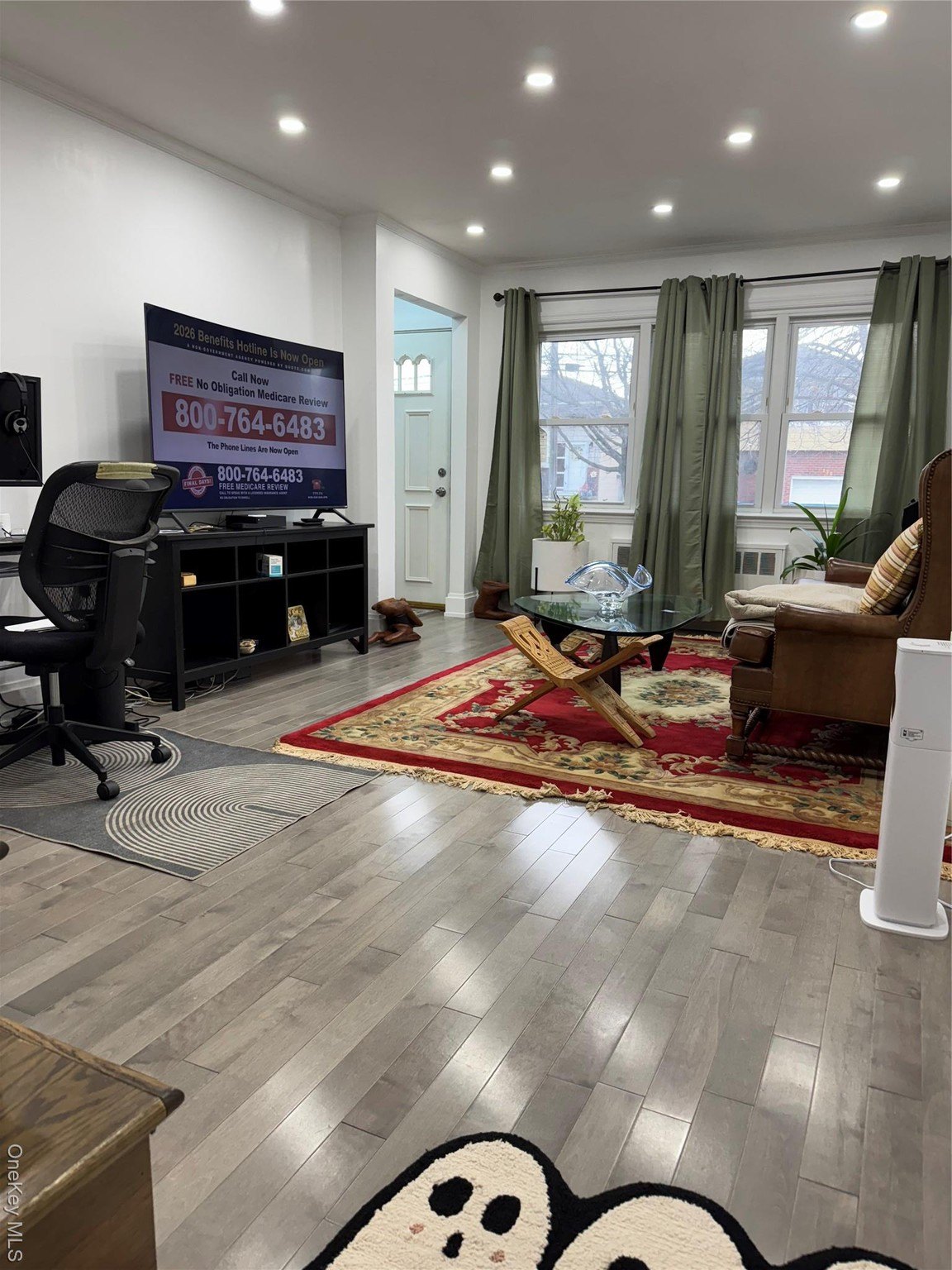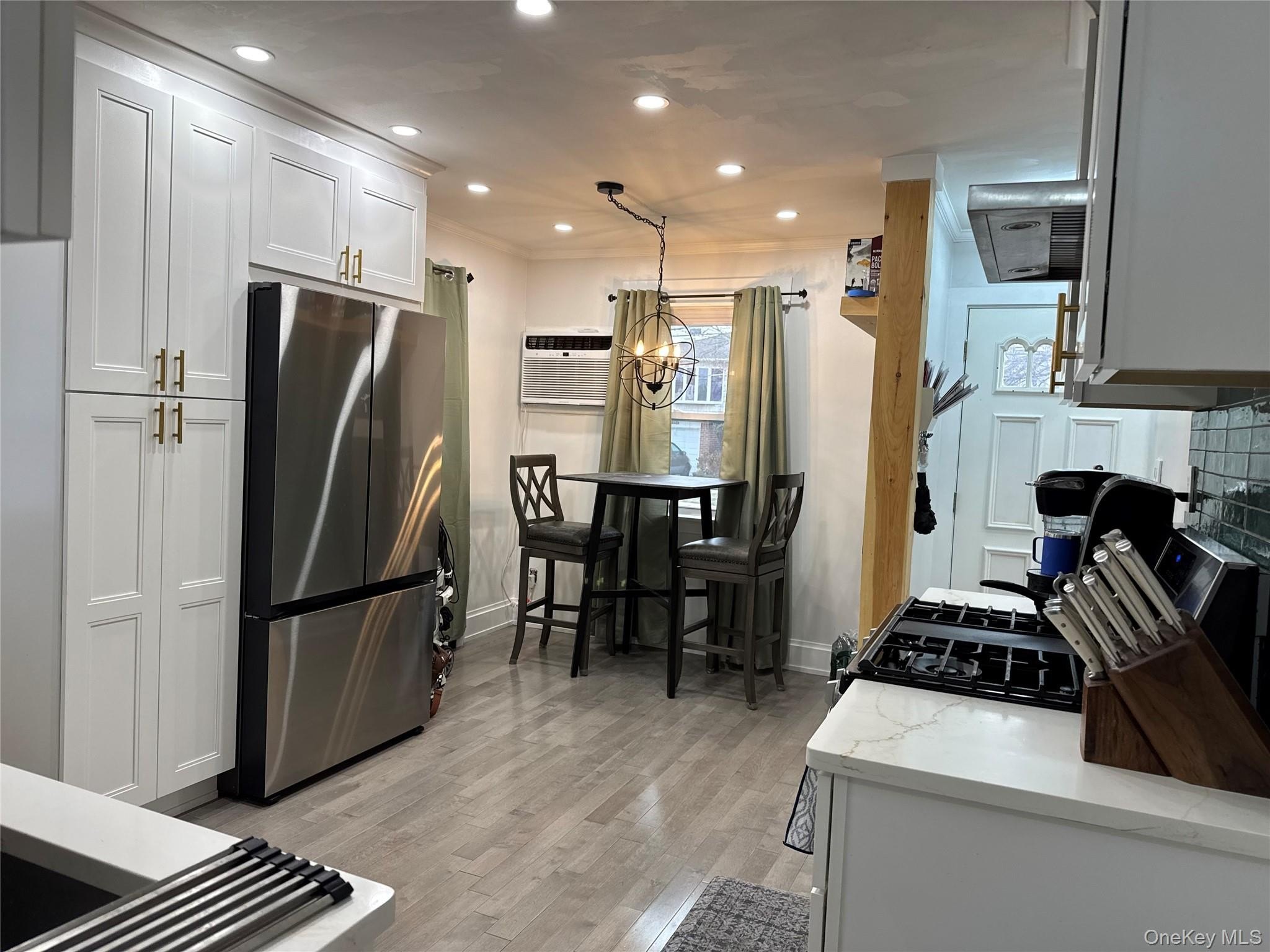 Welcome to this beautifully renovated, move-in ready Cape! This gorgeous one-family home features 4 bedrooms-two on the first floor, including a primary bedroom on the main level, and two additional bedrooms upstairs-along with 2 full bathrooms. The home is in excellent condition, offering bright, updated living areas and a spacious, high-ceiling full basement with an open layout and a dedicated laundry room with washer and dryer (no private outside entrance). Enjoy a nice-sized backyard, a rear patio, and a storage shed-perfect for entertaining or extra storage. The home includes one built-in A/C unit and three window units, plus three exterior exits: front and both sides. Conveniently located close to shopping areas and right on the border of Queens, with easy access to transportation. A perfect blend of comfort, location, and charm-don't miss it!