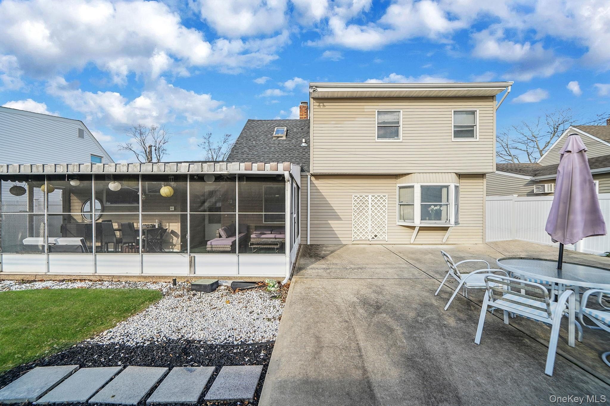 Welcome to this charming expanded cape it is located in the heart of Levittown on a tree lined road. It is offering 4 generous bedrooms and a warm, inviting layout . This well-maintained home features a bright living room with abundant natural light, an updated kitchen with ample cabinet and counter space, and a dining area perfect for everyday living and entertaining. The main level offers one bedroom a full bathroom and a cozy family room, while the second floor provides three additional large bedrooms with excellent closet space, storage and a bathroom. Enjoy the private backyard, ideal for relaxing, gardening, or outdoor gatherings. The sunroom is an added bonus for summer fun. Conveniently located near shopping, dining, parks, and major roadways, this lovely home is move-in ready and full of potential. This will not last. Call me for your private showing today!!!