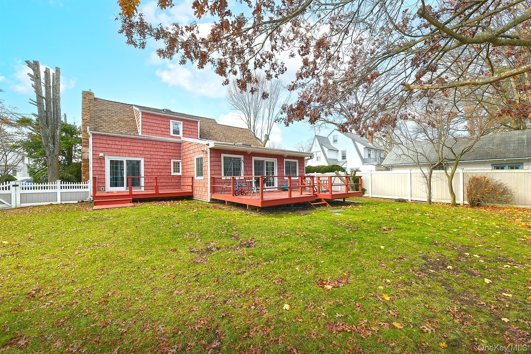 Charming Sterns Park Colonial on manicured over size property. Beautiful tree lined wide street. Traditional cozy living room with coffered ceilings, chandeliers, fireplace and large sun drenched windows. Amazing entrance foyer with large closets. Updated hardwood floors throughout first and second levels. Granite and stainless steel kitchen counter tops, spacious cabinets and gas cooking. Huge and bright entertainment room with sliders to deck, skylight and fireplace. Gas heat and separate water heater. Fully vinyl fenced yard. Inside access to garage for inclement weather. Economical Freeport electric. Close to RR, bus stops, parks, restaurants, shops, parkway access and entertainment. Award winning schools. Taxes with village $10,902.33, $10170.23 after star exemption deducted. All updated, just turn the key to your new home.