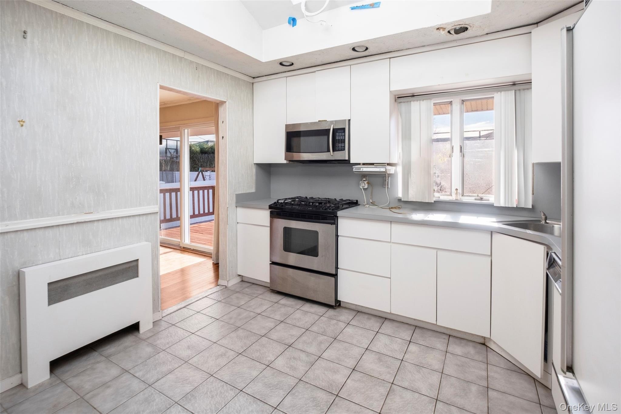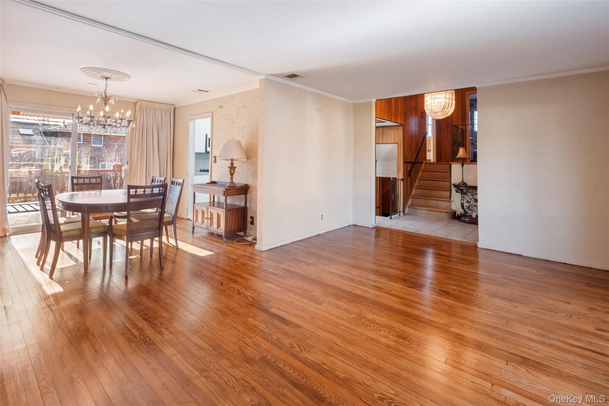 Welcome to this charming three-bedroom split-level home, ideally located in the highly sought-after Syosset community. The first floor offers an inviting entry foyer that opens to a spacious living room, a formal dining room with access to an oversized deck, and a bright eat-in kitchen. The second level is equally lovely, featuring a comfortable primary bedroom with its own full bathroom, along with two additional bedrooms and a well-appointed hall bath. The lower-level great room, complete with a cozy wood-burning fireplace, provides the perfect setting for gathering with friends and loved ones. The combination of architectural details, location, and lifestyle make this a standout choice for today's discerning buyer.