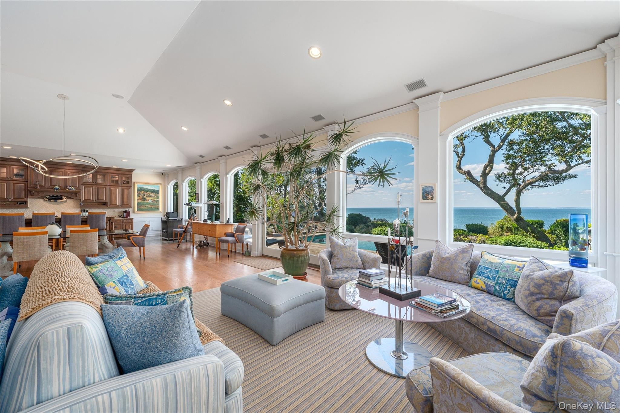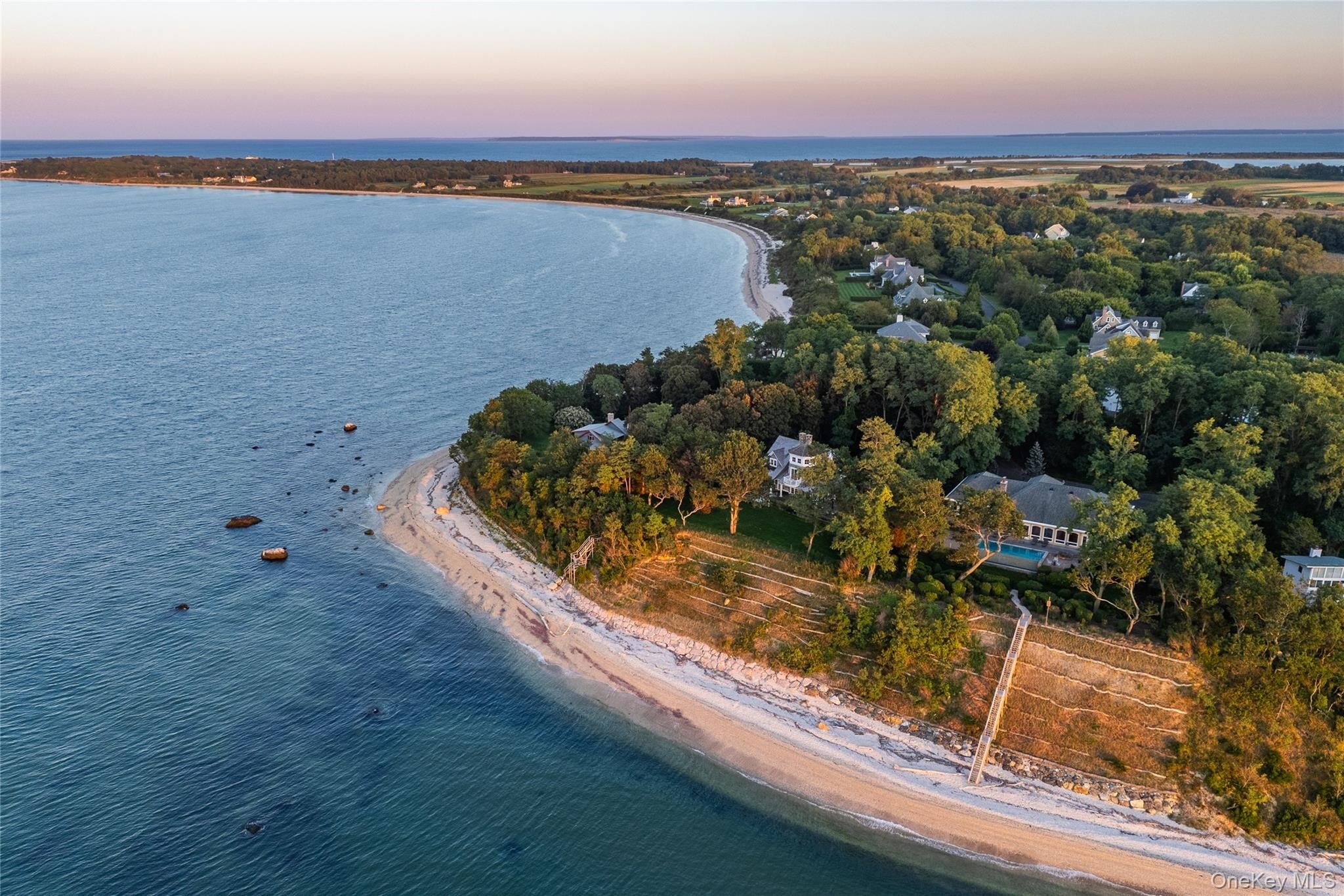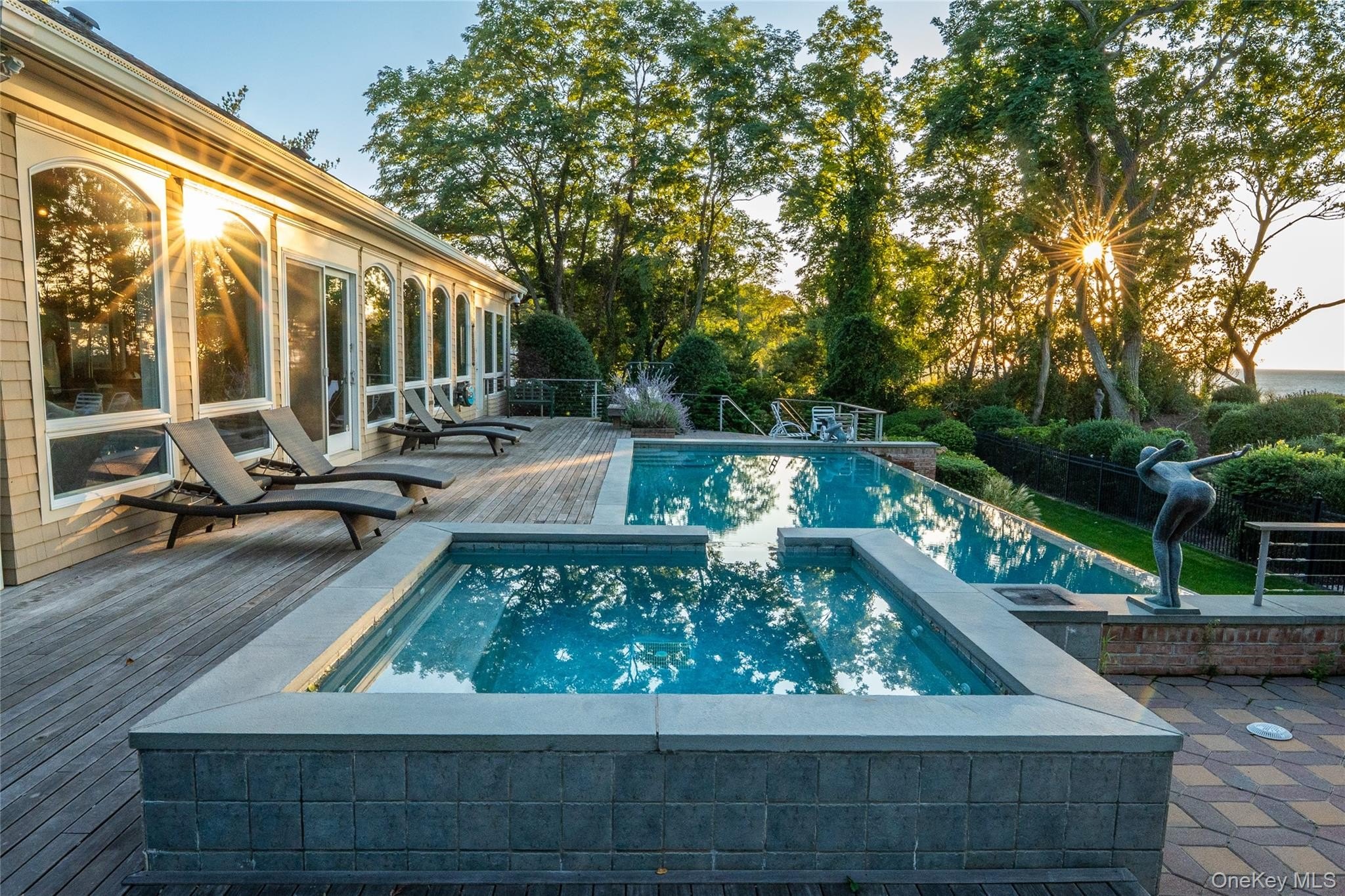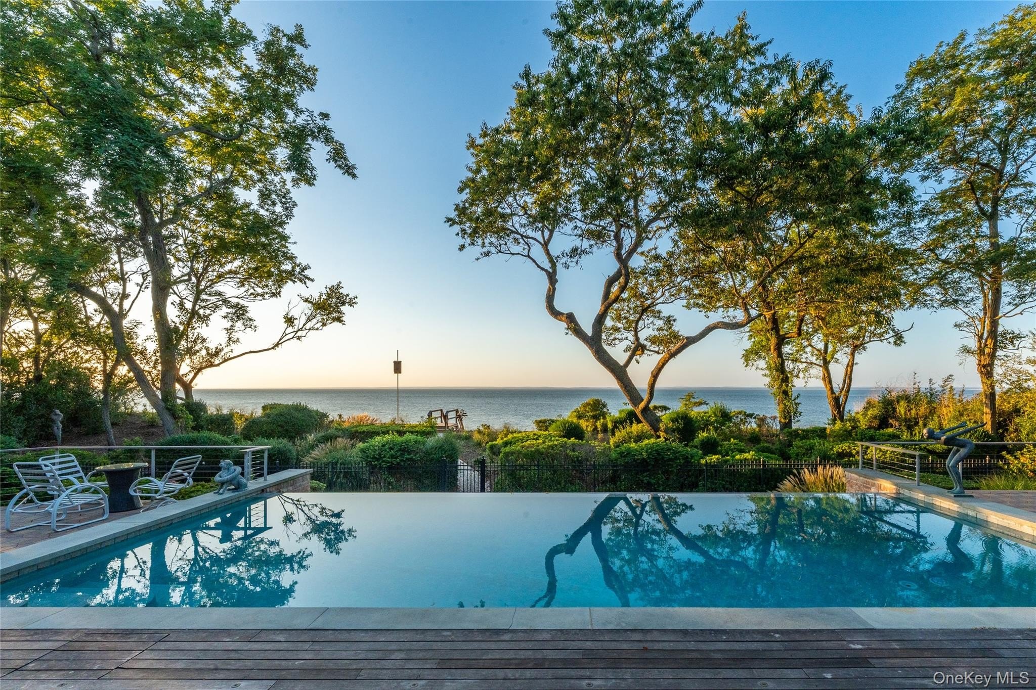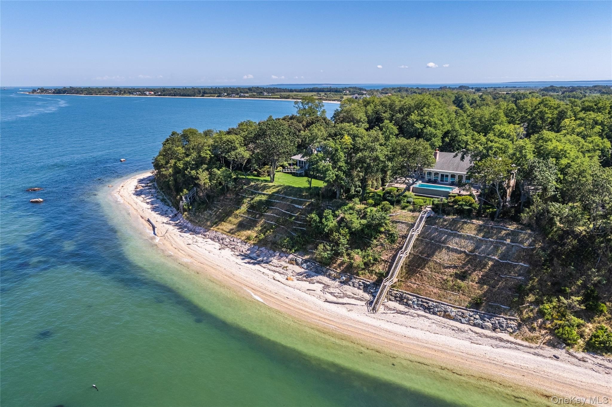 This Sound Front home at the edge of a quiet Orient cul-de-sac is more than a haven-it's a destination for those who appreciate the rare union of luxury, privacy, and personality. Here, drama is found in the sweep of panoramic water views and the hush of mornings on a private deck, just upstairs from your own sandy shoreline. Step into soaring, sunlit spaces designed for living boldly: a cathedral-ceilinged great room crowned by a Niamh Barry light sculpture, six uniquely serene bedrooms, and a media lounge fit for both celebration and retreat. Two grand spiral staircases anchor the heart of the home, while an elevator ensures every level is effortless. This is a house that thinks ahead-10-foot ceilings, custom red oak flooring, radiant heat where you want it, a climate-controlled wine room, a butler's pantry for flawless entertaining, and double laundry rooms for seamless living. Outside, a 34'x13' Gunite heated infinity pool and 8'x8' spa blend into Sound views, with private stairs leading to the beach for spontaneous escapes. Security, comfort, and modern ease are ever-present with remote cameras, central vacuum, a triple-car garage, a full-house generator, and avant-garde HVAC and audio systems-leaving you free to focus on what really matters: sunrises, open water, and time well spent. For those who believe a home should never feel ordinary-this Orient retreat awaits.