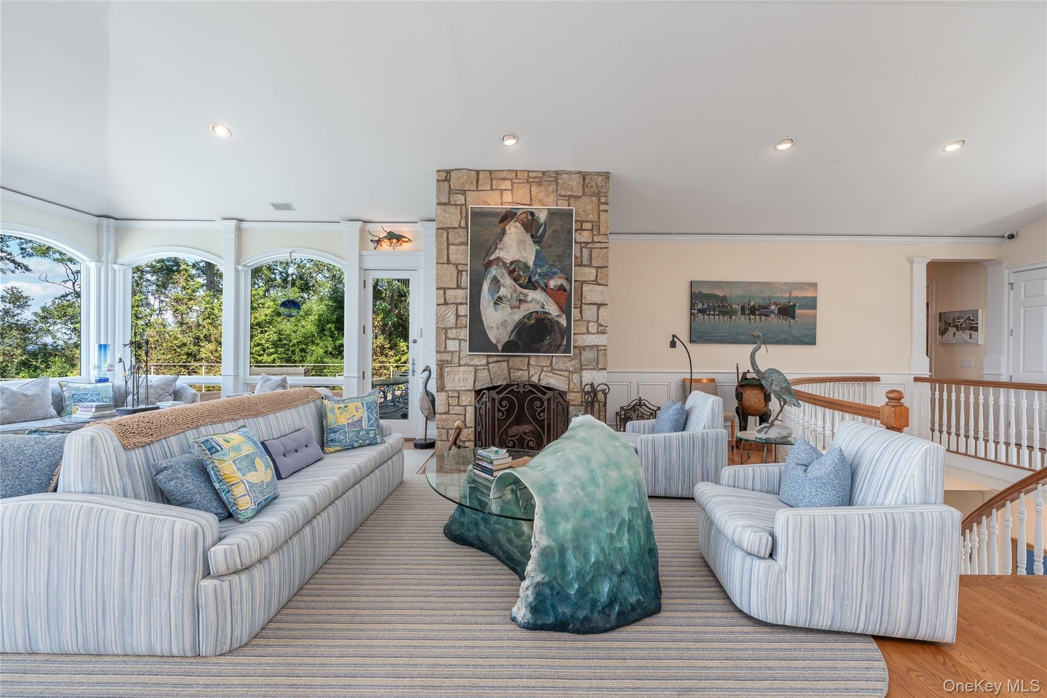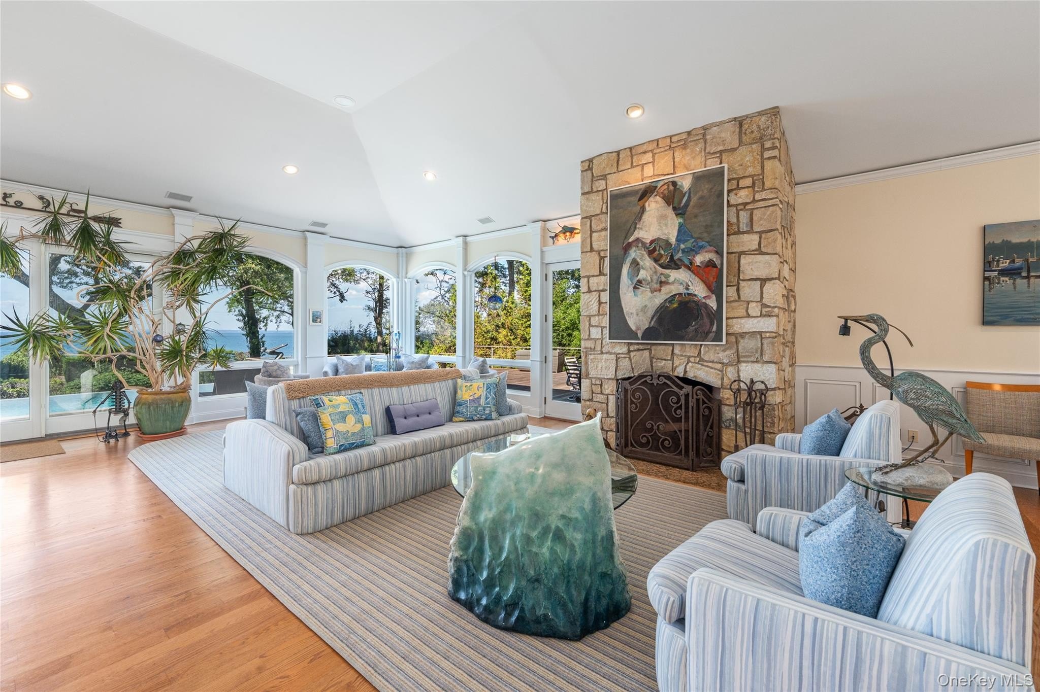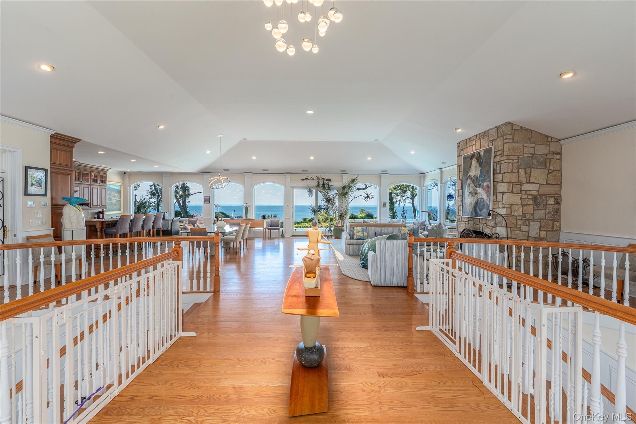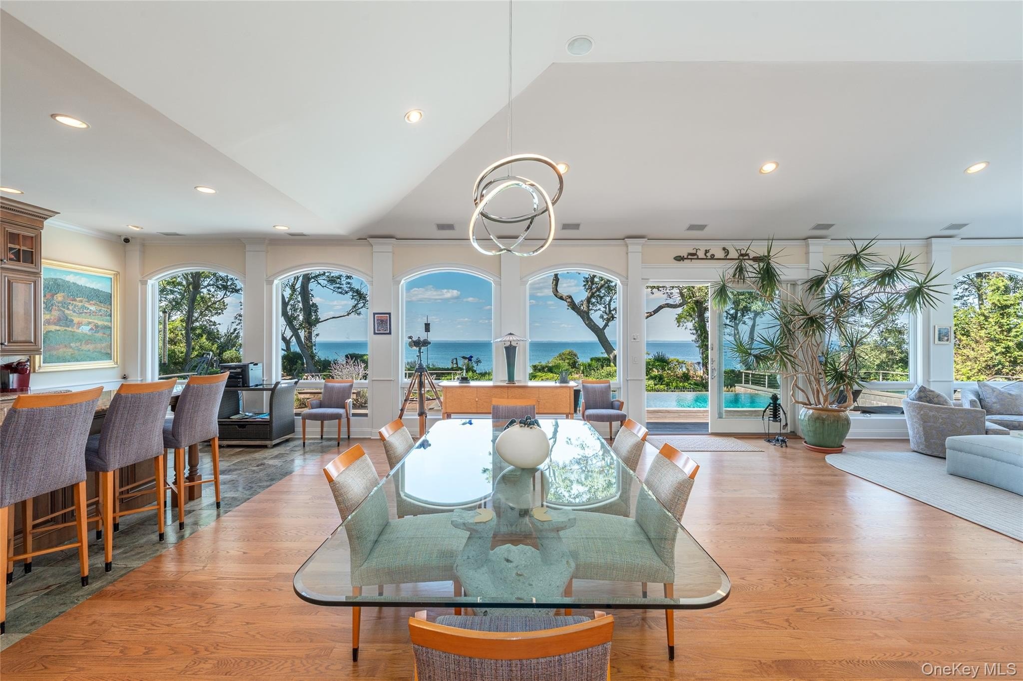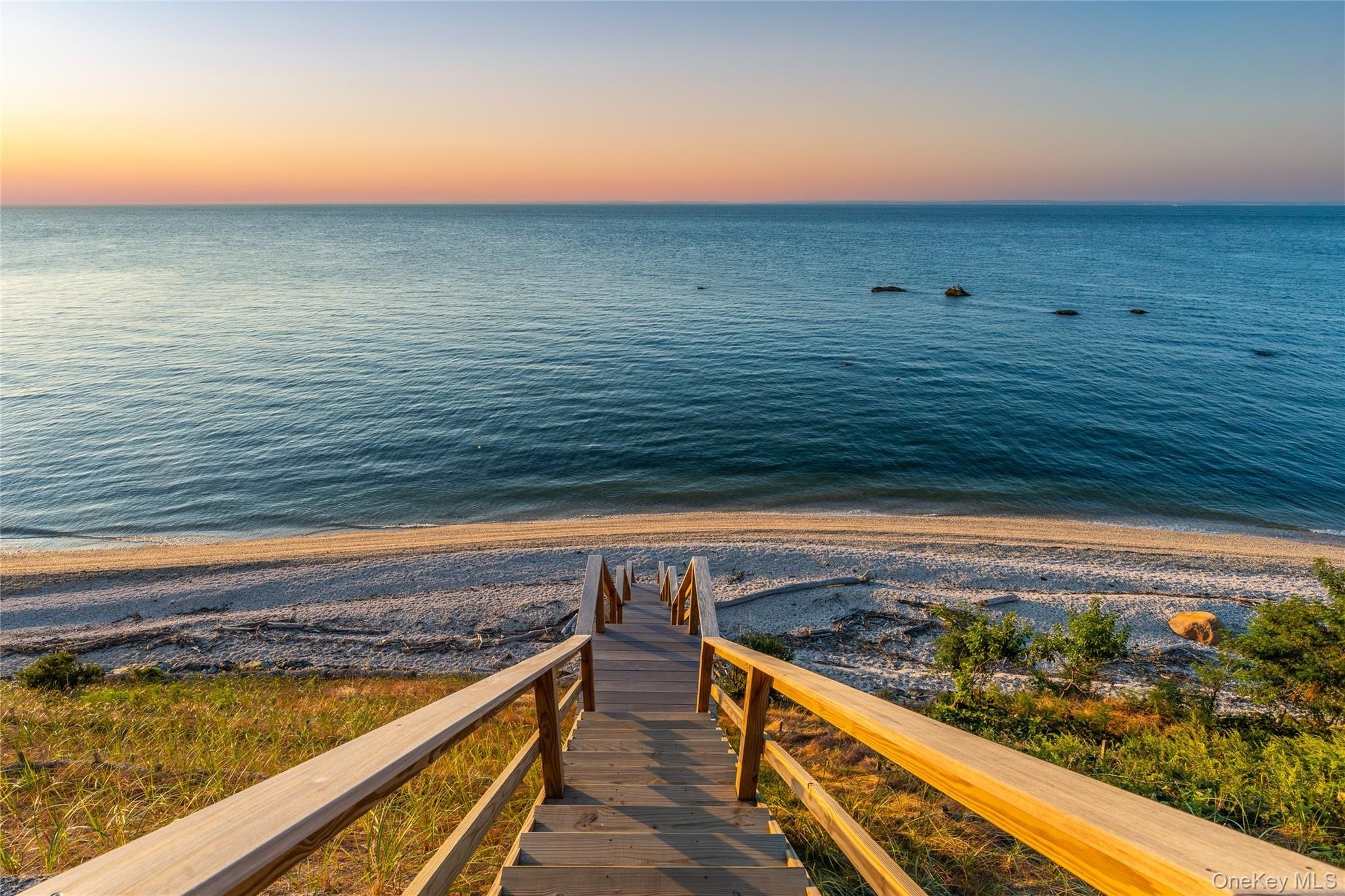 This Sound Front home at the edge of a quiet Orient cul-de-sac is more than a haven-it's a destination for those who appreciate the rare union of luxury, privacy, and personality. Here, drama is found in the sweep of panoramic water views and the hush of mornings on a private deck, just upstairs from your own sandy shoreline. Step into soaring, sunlit spaces designed for living boldly: a cathedral-ceilinged great room crowned by a Niamh Barry light sculpture, six uniquely serene bedrooms, and a media lounge fit for both celebration and retreat. Two grand spiral staircases anchor the heart of the home, while an elevator ensures every level is effortless. This is a house that thinks ahead-10-foot ceilings, custom red oak flooring, radiant heat where you want it, a climate-controlled wine room, a butler's pantry for flawless entertaining, and double laundry rooms for seamless living. Outside, a 34'x13' Gunite heated infinity pool and 8'x8' spa blend into Sound views, with private stairs leading to the beach for spontaneous escapes. Security, comfort, and modern ease are ever-present with remote cameras, central vacuum, a triple-car garage, a full-house generator, and avant-garde HVAC and audio systems-leaving you free to focus on what really matters: sunrises, open water, and time well spent. For those who believe a home should never feel ordinary-this Orient retreat awaits.