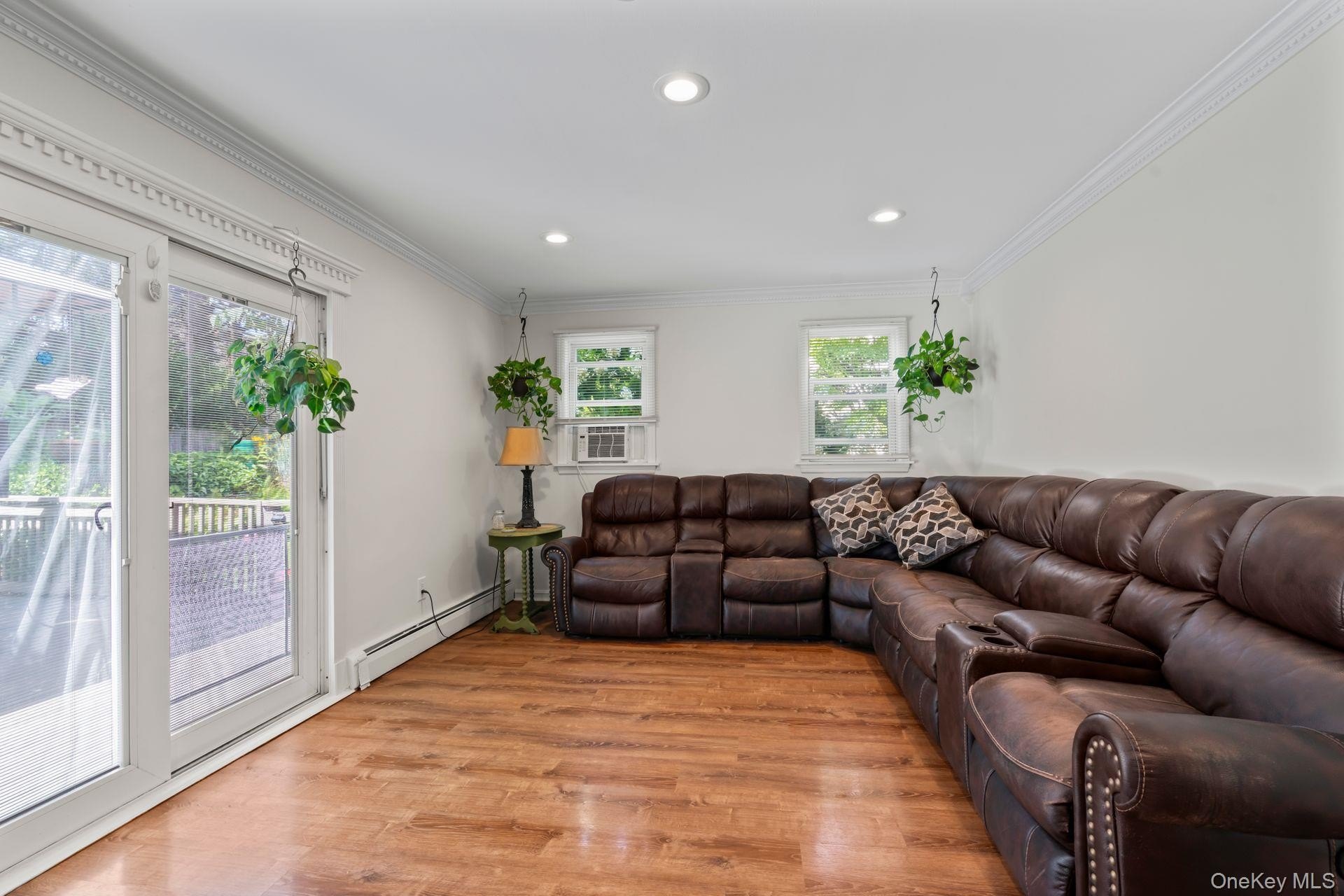 Welcome home to a beautifully renovated residence on a quiet cul-de-sac north of 25A, just minutes to Huntington Village, Huntington Harbor, beaches, and local parks. Sun-filled interiors feature Andersen windows and a thoughtful layout that feels open and inviting. The eat-in kitchen offers granite countertops, stainless steel appliances, and gas cooking, creating an ideal space for everyday living and easy entertaining. A comfortable family room with sliders opens to an expanded deck for indoor-outdoor flow. On its own upper level, the bedroom wing lives like a classic Colonial with four generous bedrooms, including a spacious primary suite with private bath. Convenient first-floor laundry adds everyday practicality. Outdoors, the serene yard is a true retreat with a large deck, a pergola for shaded lounging, and the soothing sound of a cascading water feature. Whether hosting friends or unwinding after the day, this peaceful setting makes life feel effortless. This is a move-in-ready home where comfort, convenience, and nature come together.