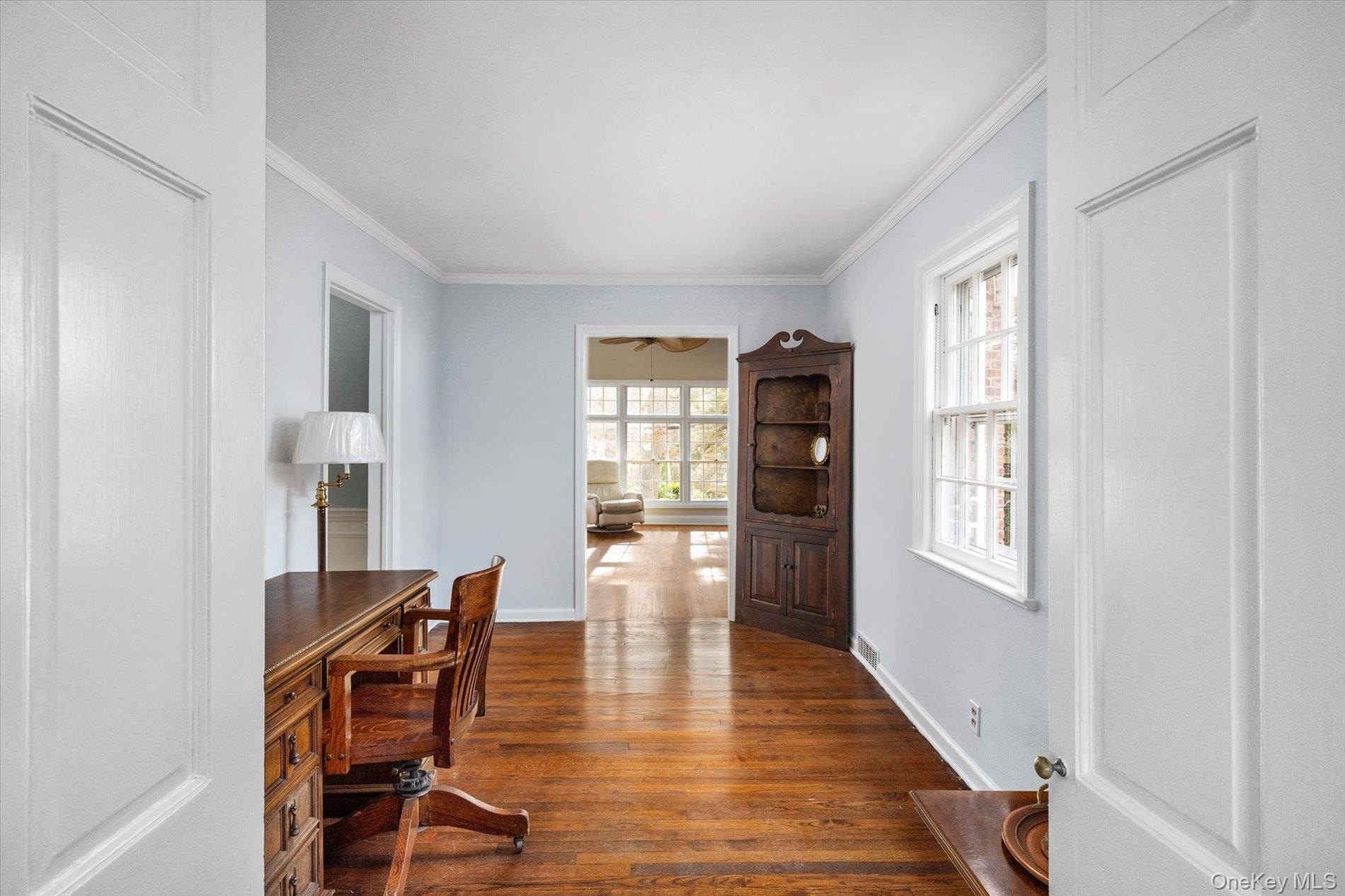 This classic colonial is located on a picturesque street in the village of Flower Hill, and has been meticulously maintained and updated throughout the years. This sunny home has original custom millwork, beautiful hardwood floors, and an inviting circular flow perfect for entertaining. The spacious and inviting living room has wood burning fireplace and original random width pegged oak floors leading to a charming room that is perfect as an office, music room or library. There is a graciously proportioned formal dining room Family room has cathedral ceiling with oversized windows overlooking the rear gardens and terrace. Sunny rear foyer with skylights connects the family room, dining room and kitchen to the outdoor entertaining terrace and patio .Kitchen has oak cabinets, new appliances and large breakfast area. The primary bedroom is generously proportioned with his and her closets and features new primary bath. The second bedroom offers privacy with an ensuite bath. Third and fourth bedrooms are beautifully sized with new hallway bath. There are two bonus rooms on the third floor with full staircase off the main hallway. The basement is a hidden treasure and features original recreation room with working brick fireplace, oversized windows, outdoor access, and large unfinished storage the full footprint of the home for a total of approximately 1300 square feet on the lower level. The property is perfect for entertaining with dining terrace and bluestone patio overlooking the private landscaped grounds. Award winning school district, close to both local shopping in town and Americana Manhasset, and walking distance to the Long Island Railroad. Great opportunity to make this beautiful classic colonial home your own!