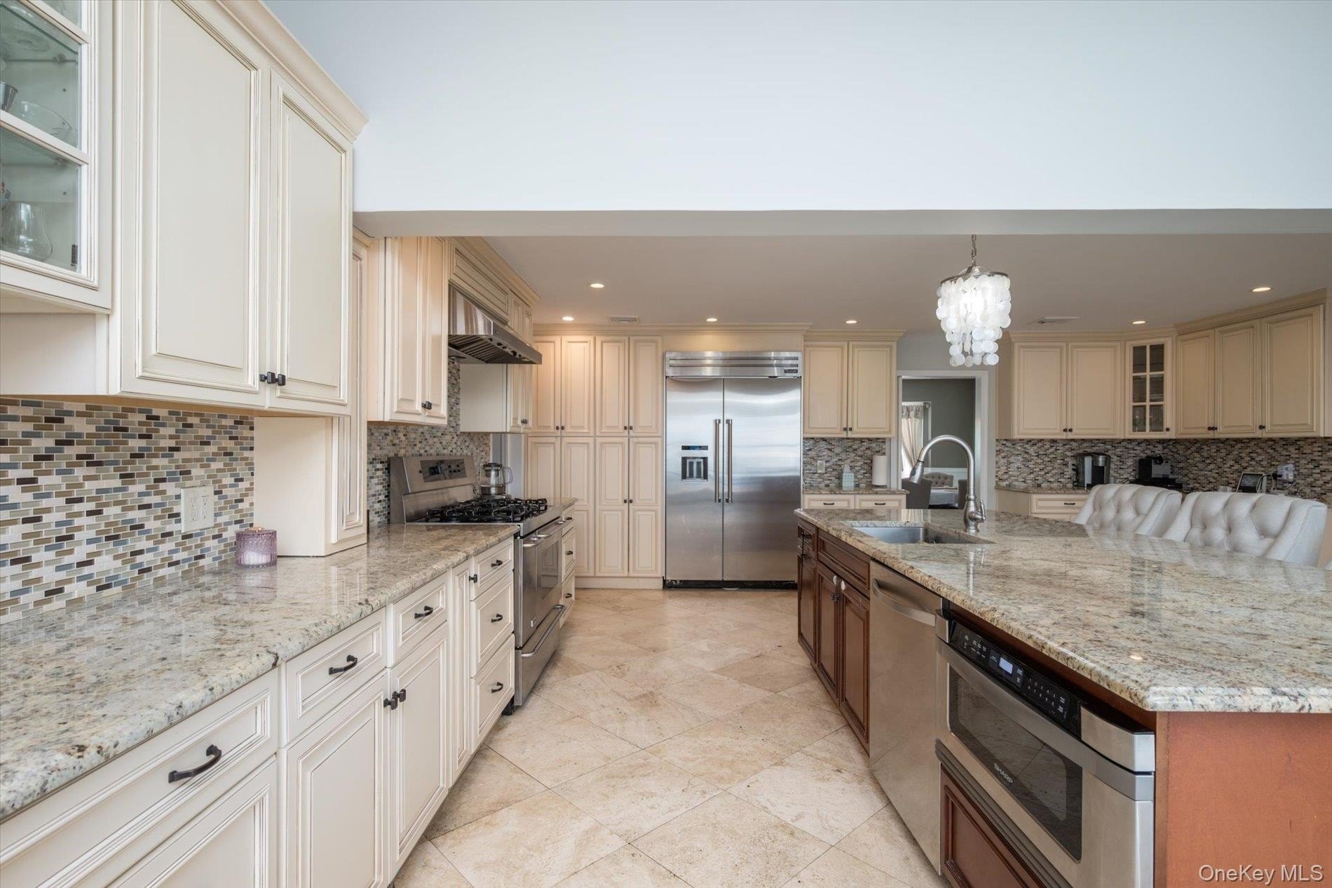 Exquisite Estate in Prestigious Imperial Gardens Tucked away in the exclusive enclave of Imperial Gardens, this grand colonial estate redefines luxury living. Set on a quiet cul-de-sac and situated on a beautiful 1-acre lot, the residence offers both privacy and effortless elegance across every detail. With 5 expansive bedrooms and 3.5 designer baths, this home effortlessly blends timeless architecture with modern sophistication. An open, flowing floor plan invites natural light into every corner-from the sun-drenched formal living and dining rooms to the inviting family room with a gas fireplace, ideal for relaxed evenings or refined entertaining. At the heart of the home lies the gourmet chef's kitchen, a culinary masterpiece featuring granite countertops, a center island, top-tier stainless steel appliances, gas range, and custom cabinetry. With ample space for an eat-in area, it seamlessly blends function and elegance. Just off the kitchen, a dramatic sunroom with soaring cathedral ceilings offers a serene retreat year-round, featuring panoramic views of the resort-style backyard. Designed for both lavish entertaining and everyday comfort, this residence includes a private home theater, a spacious 1600 sq ft basement for recreation or storage, and a 2.5-car garage. The state-of-the-art 4-zone HVAC system, radiant heated flooring, and gas heating ensure optimal comfort throughout. The primary suite is a sanctuary unto itself-offering a grand dressing room with a center island, spa-inspired bath with floor to ceiling Carerra marble, heated floors, a steam shower, sauna, and towel warmer, creating the ultimate in-suite spa experience. A first-floor bedroom or executive office provides flexible space for guests, multigenerational living, or remote work. Step outside into your private resort oasis, where expansive Trex decking leads to an in-ground Gunite heated saltwater pool and hot tub, surrounded by elegant pavers. Whether hosting sunset soirees or enjoying a quiet morning by the pool, the outdoor experience is nothing short of extraordinary. Located within the award-winning Commack School District, renowned for its nationally ranked Blue Ribbon schools, and just minutes from premier shopping, fine dining, major highways, the LIRR, and places of worship, this home offers a rare combination of prestige, privacy, and convenience.