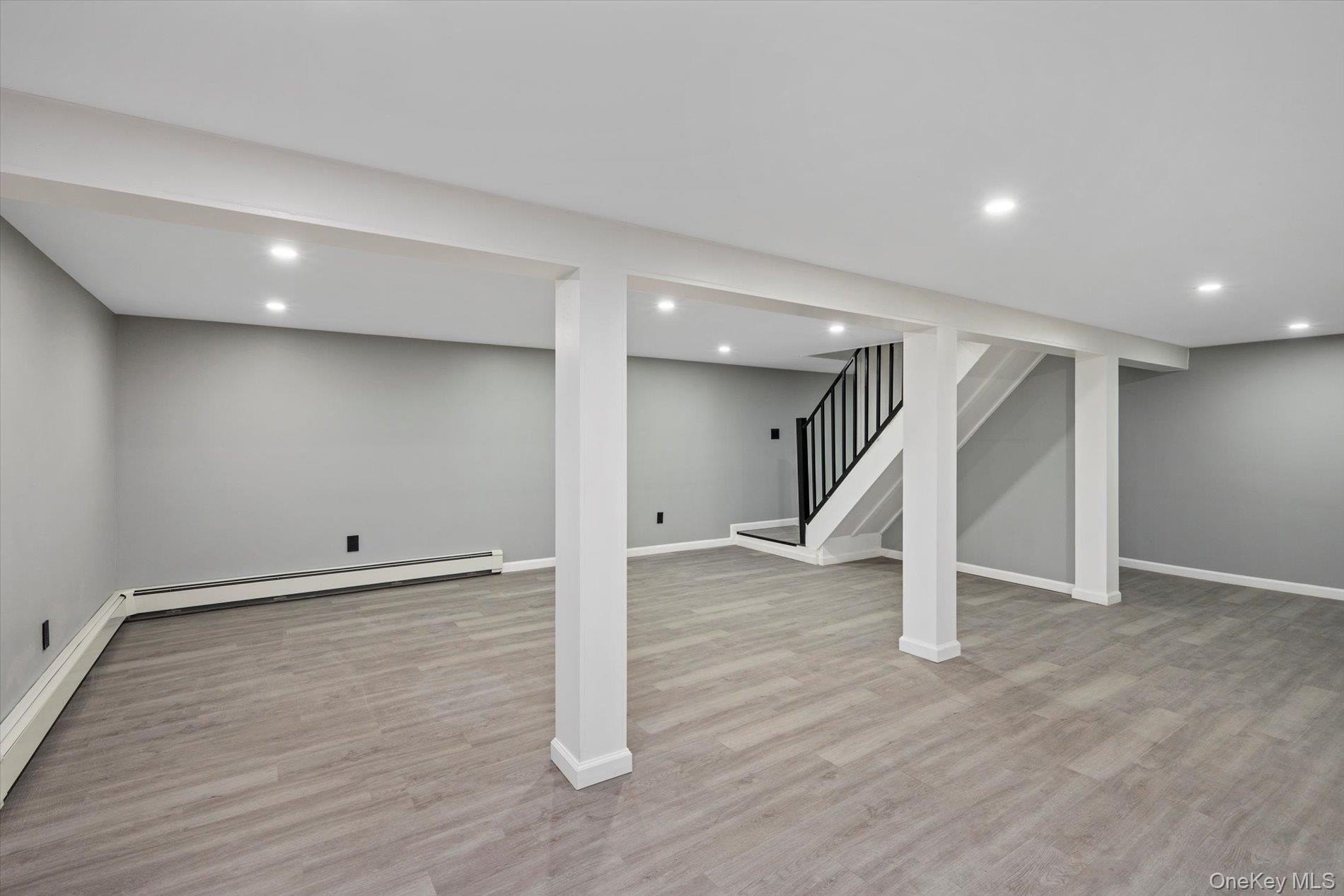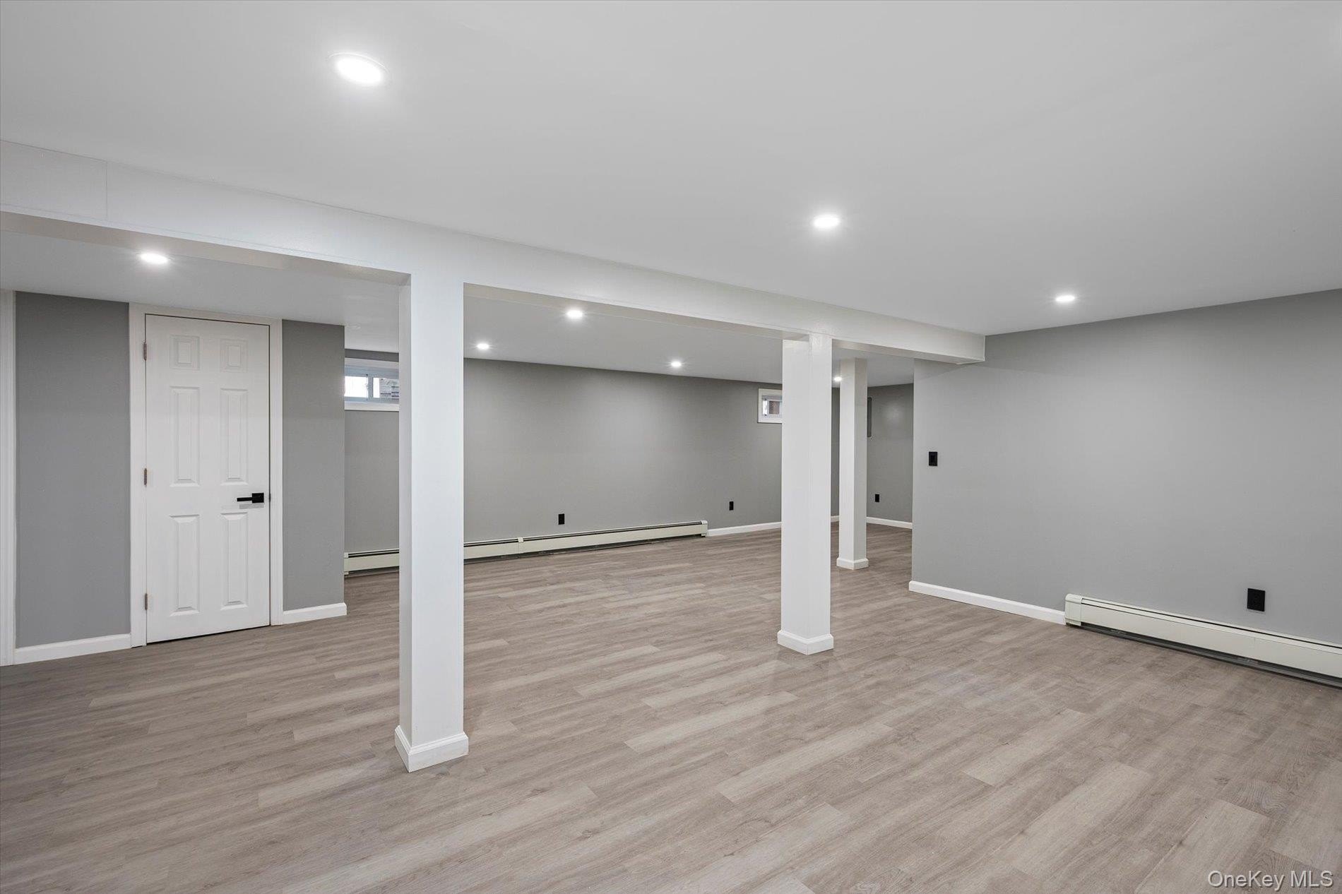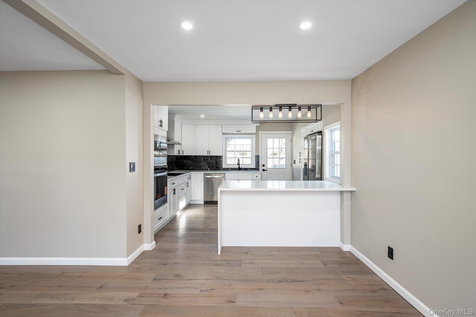 Welcome to this beautifully expanded and fully renovated 5-bedroom, 3-bath Cape nestled in the heart of North Babylon. Offering an exceptional blend of modern style and comfortable living, this home features a spacious open-concept layout, new flooring throughout, and a stunning kitchen with quartz countertops, stainless steel appliances, and custom cabinetry. Front load washer and dryer in laundry room lower level. The first floor includes generously sized bedrooms and a sleek, updated full bath-perfect for guests or multi-generational living. Upstairs, you'll find additional bedrooms with contemporary finishes. All three bathrooms have been thoughtfully redesigned with a modern touch. Enjoy peace of mind with brand-new systems, 150-Amp electric, and efficient heating. The home sits on a nicely sized property with a private backyard ideal for entertaining or gardening. Conveniently located near parks, schools, shopping, major roadways, and the LIRR. Move-in ready and designed for today's lifestyle-this is North Babylon living at its best.