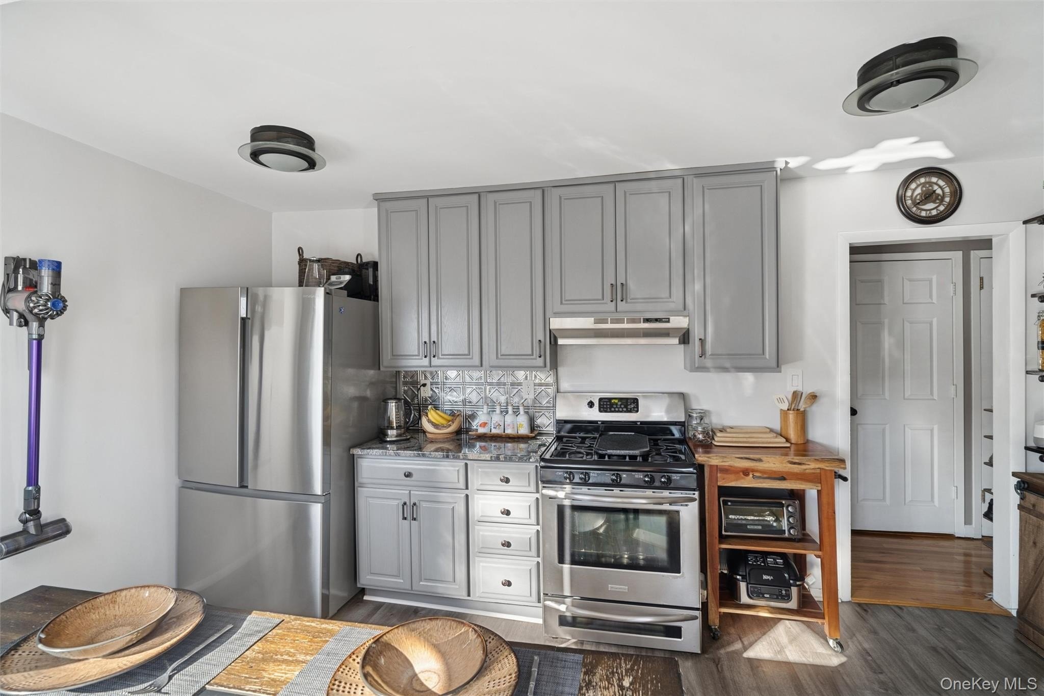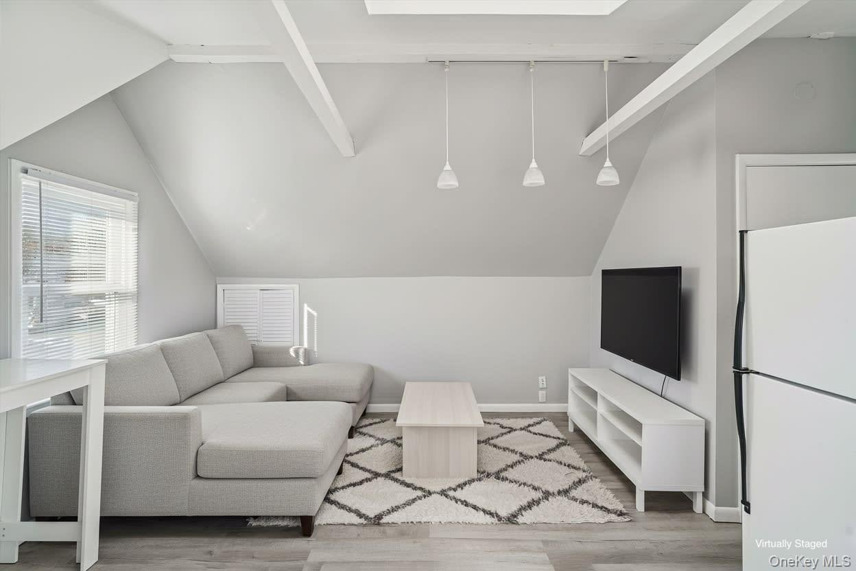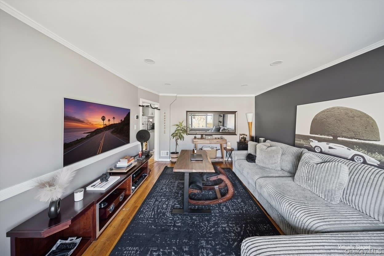 Welcome to a beautifully updated and exceptionally well-maintained home offering modern comfort, abundant upgrades, and flexible living potential. Thoughtfully improved over the last decade-with major updates between 2023-2025-this property provides a move-in-ready experience and a layout that can adapt to a variety of needs. The exterior features new siding and a new roof (2023), giving the home a refreshed, durable look. The property is also fully enclosed with a white PVC fence, offering privacy and security. Inside, you'll find hardwood floors, new flooring, fresh paint, updated windows throughout, and new high-hat lighting installed in 2025, creating bright and inviting living spaces. A brand-new HVAC system with central air conditioning (2025) ensure efficient, year-round climate control. The home is also upgraded with 200-amp electrical service, new stainless steel appliances, and a Samsung washer and dryer. The second floor includes a separate 1-bedroom suite with its own private entrance. This area offers excellent flexibility for a variety of uses-such as extended living space, guest accommodations, or a potential accessory apartment subject to obtaining proper permits. Buyers are encouraged to verify all intended uses with the town. Additional features include a full basement with bonus finished space, a 1-car garage, and a large backyard with a spacious composite deck, perfect for outdoor enjoyment and entertaining. The yard also includes a hardwired natural gas BBQ line, providing convenience for outdoor cooking. The property offers a generously sized side yard ideal for boat, trailer, or recreational equipment storage. Smart-home enhancements include Ring security cameras around the exterior and a 4-zone smart irrigation system for effortless lawn maintenance + Ecobee smart thermostat. The home is equipped with natural gas forced hot air heating, central A/C, and an optional gas fireplace in the living room, providing comfort and convenience throughout the seasons. Well cared for by the owner for the past 10 years, this home showcases pride of ownership and thoughtful upgrades throughout. With its modern systems, versatility, and spacious layout, the property offers long-term value and a wide range of possibilities. Conveniently located near major highways, malls, approximately 1 mile from Starbucks, and about 28 minutes to JFK Airport, the home offers excellent accessibility for commuting, shopping, and everyday convenience.