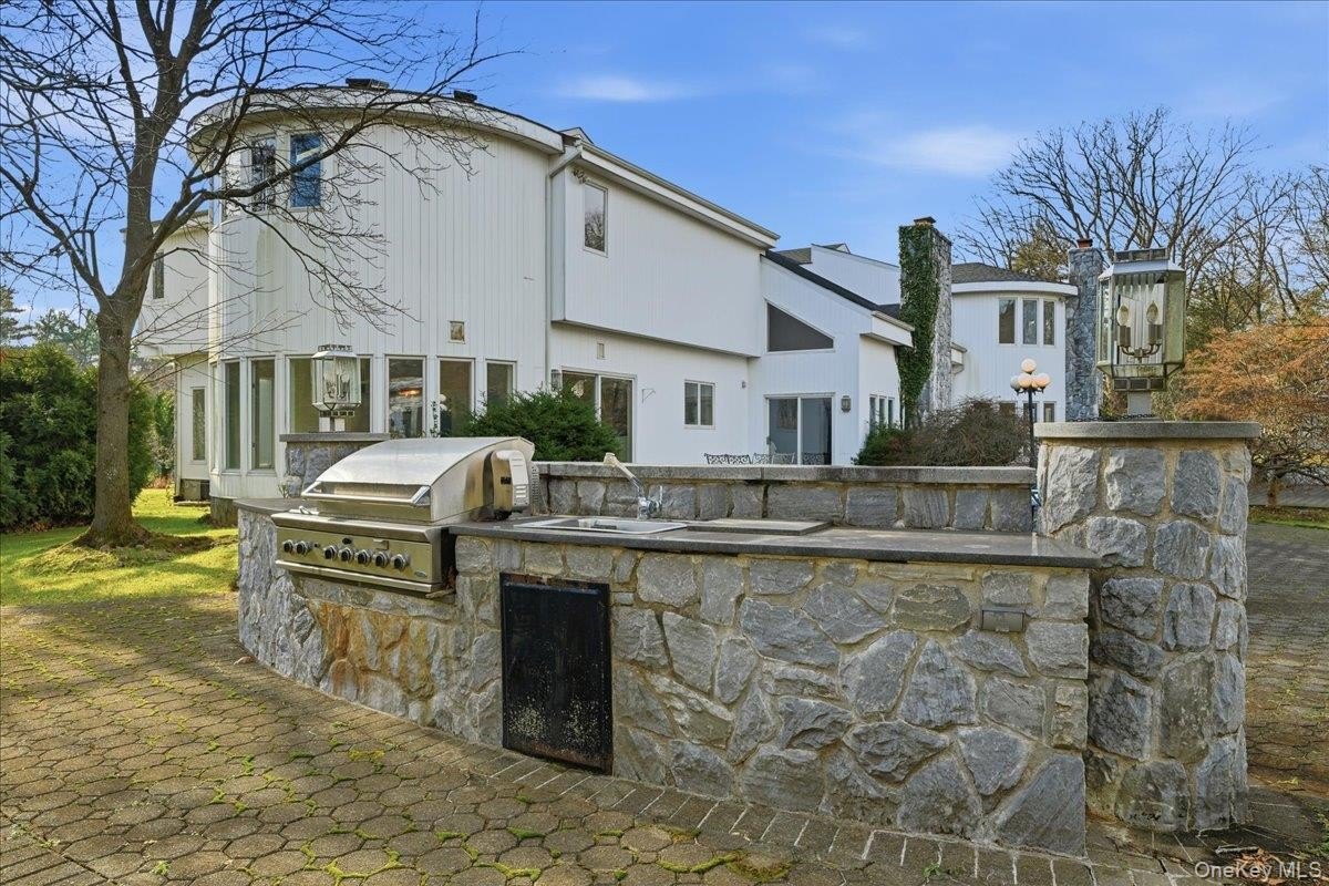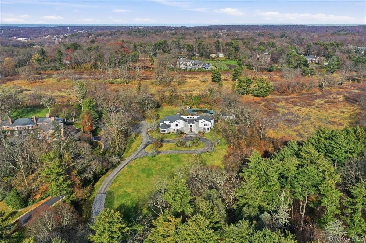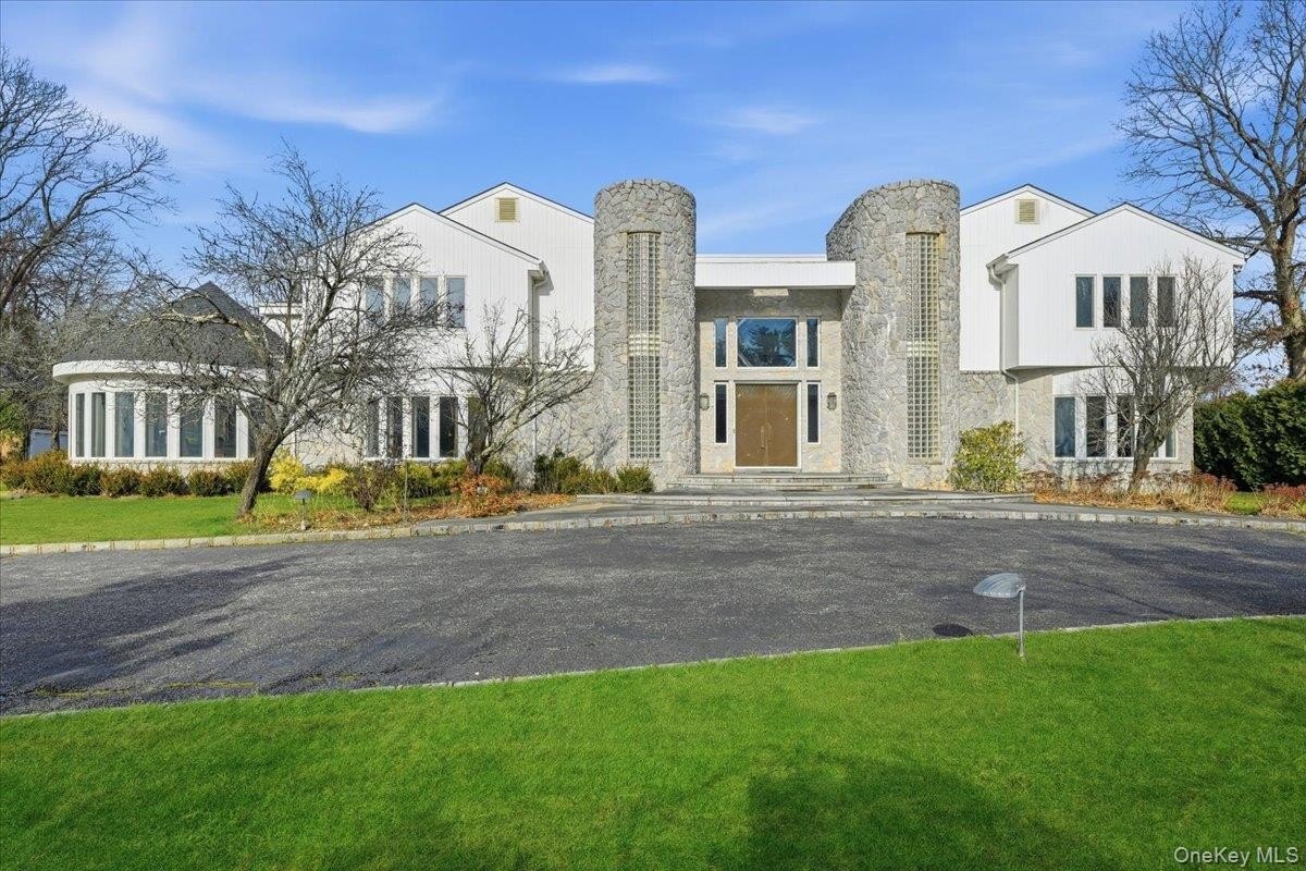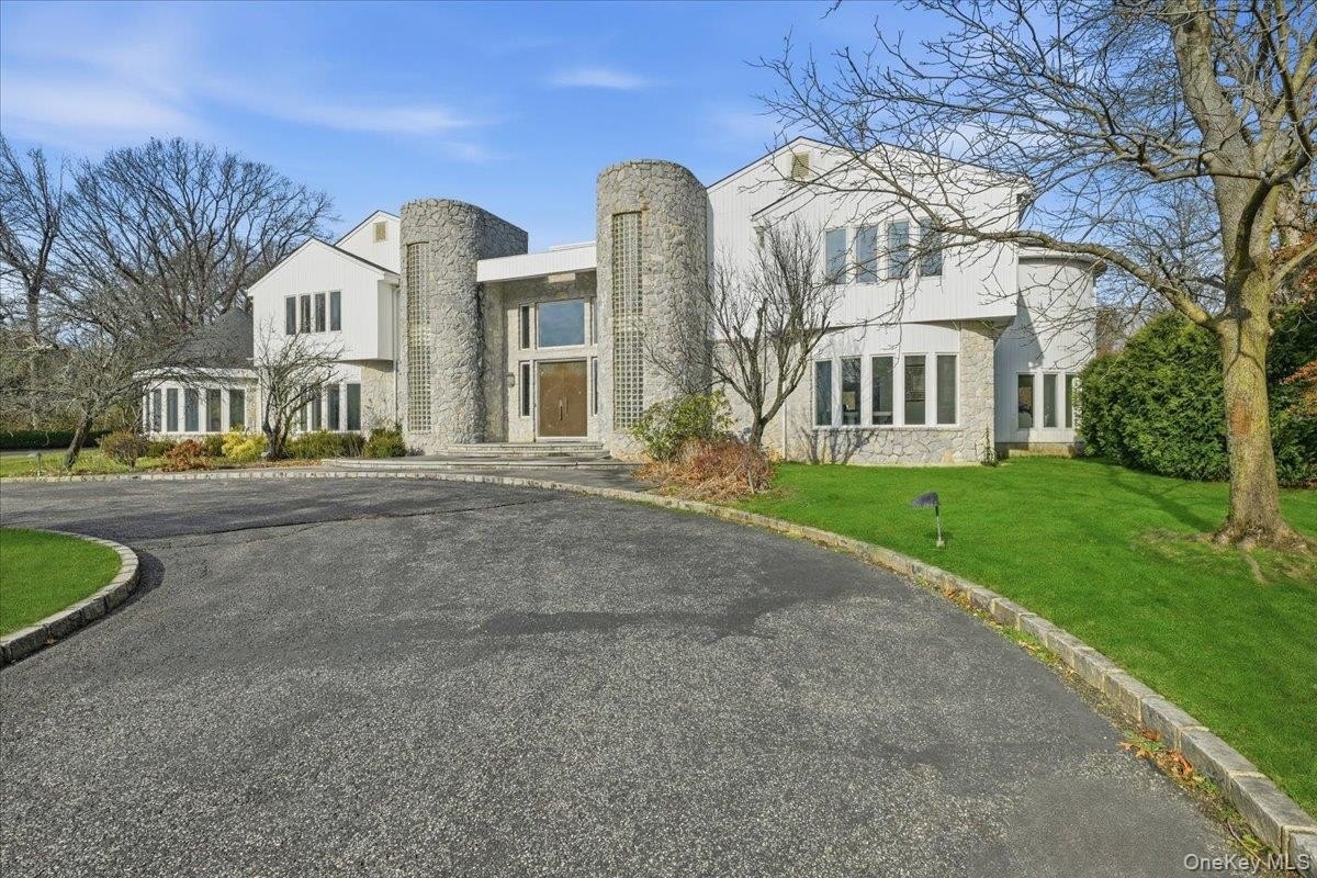 Nestled on a serene 3.2 acre parcel in prestigious Old Brookville, this striking contemporary residence offers 8,201 square feet of luxurious living space designed for modern comfort and grand scale entertaining. A private drive leads to the impressive home, showcasing clean architectural lines, expansive glass, and a commanding presence. Inside, the home features sun filled open spaces, soaring ceilings, and seamless indoor outdoor flow. Walls of windows capture views of the manicured grounds, while multiple living areas provide versatility for both intimate gatherings and large events. The chef's kitchen, formal dining room, and spacious great room create a perfect setting for refined living. The estate includes multiple ensuite bedrooms, a serene primary suite, and dedicated spaces for work, fitness, or recreation. A rare detached guest house with a 4 car garage offers exceptional storage and car-collector appeal. Outdoors, enjoy resort-style living with a sparkling waterfall pool, generous patios, and expansive lawns ideal for entertaining, relaxation, and privacy. A true Old Brookville retreat, combining contemporary design with distinguished estate living.