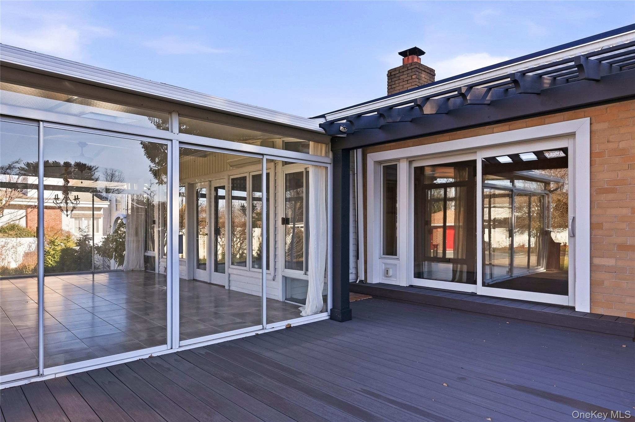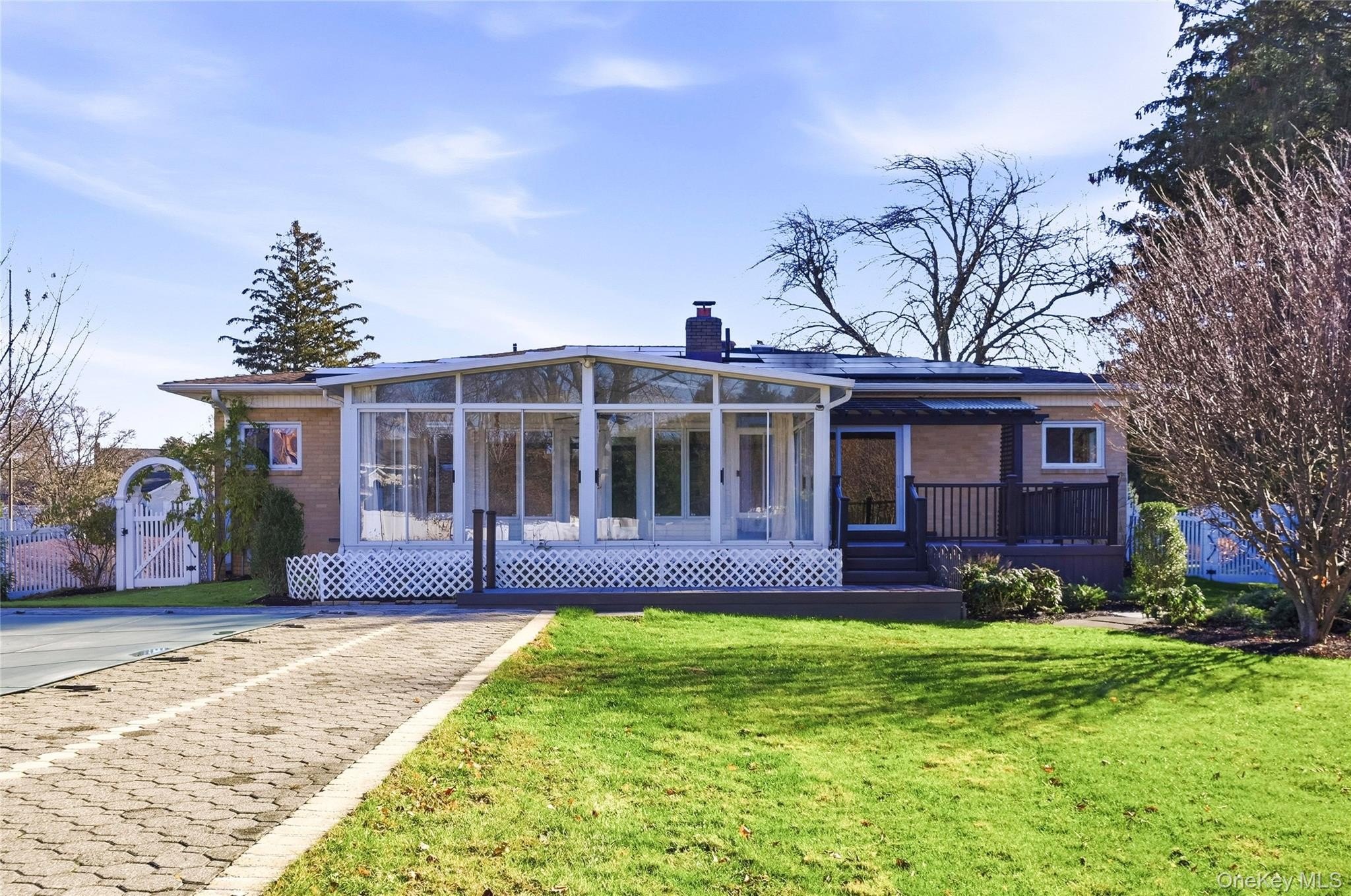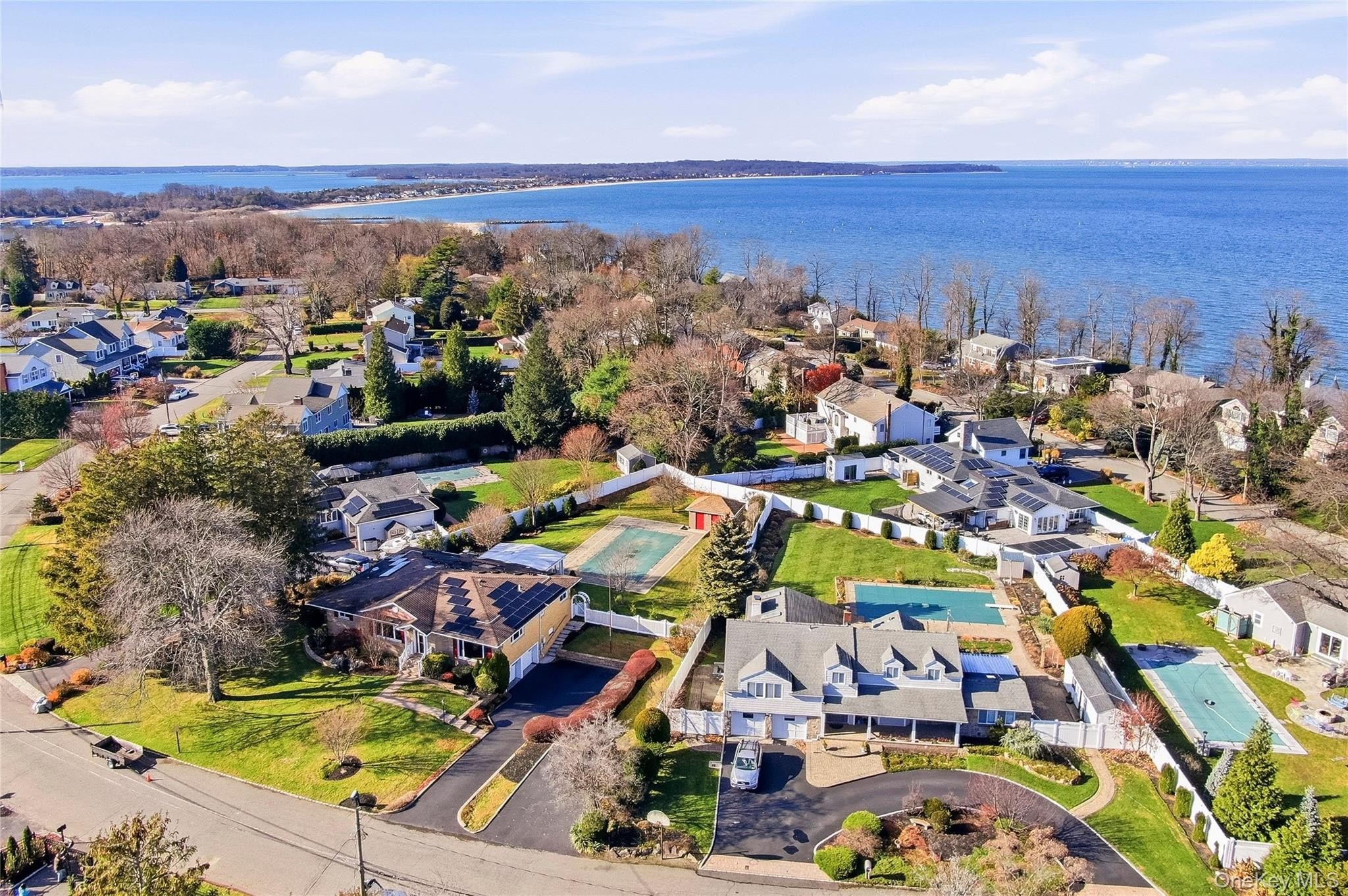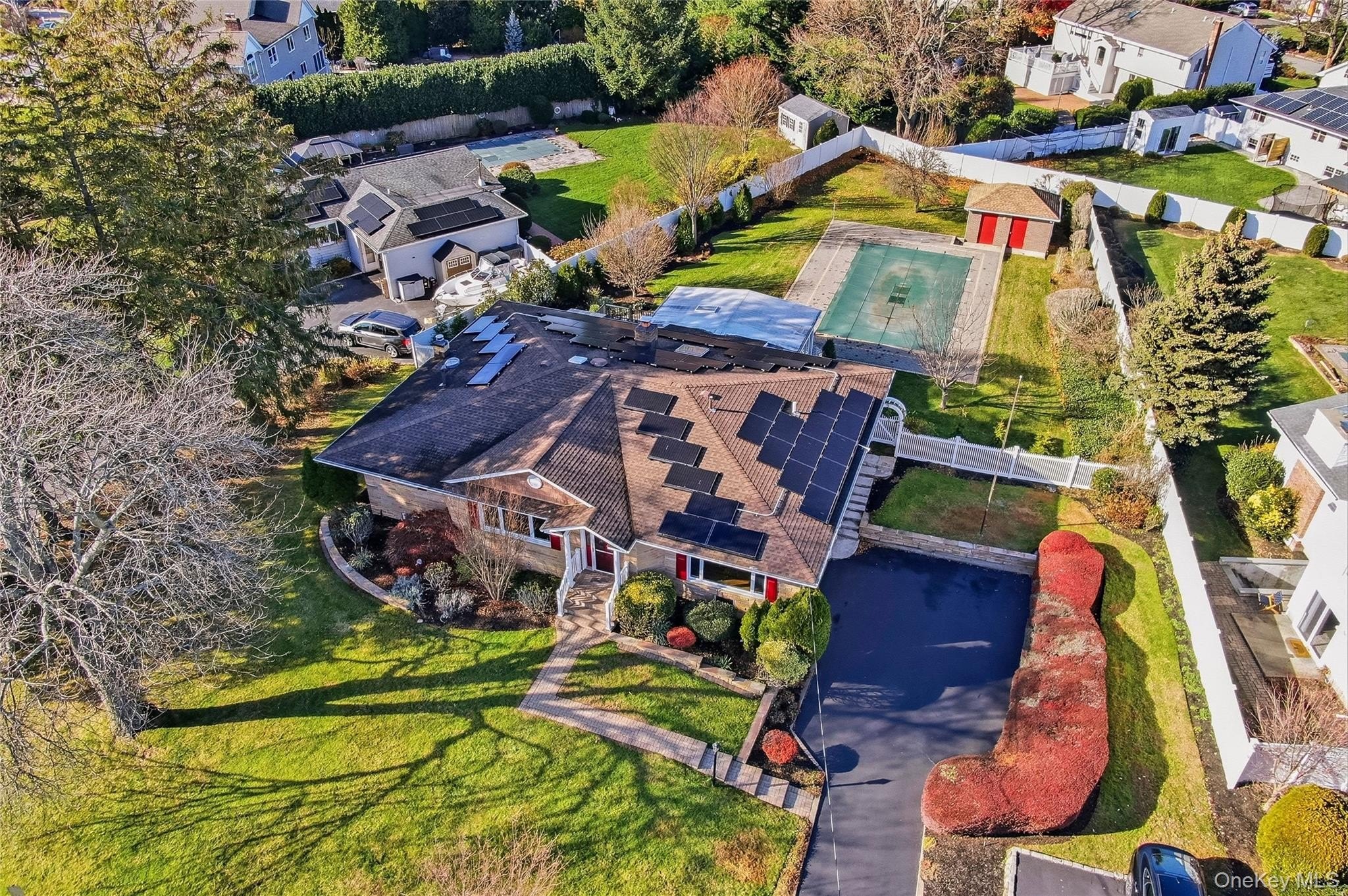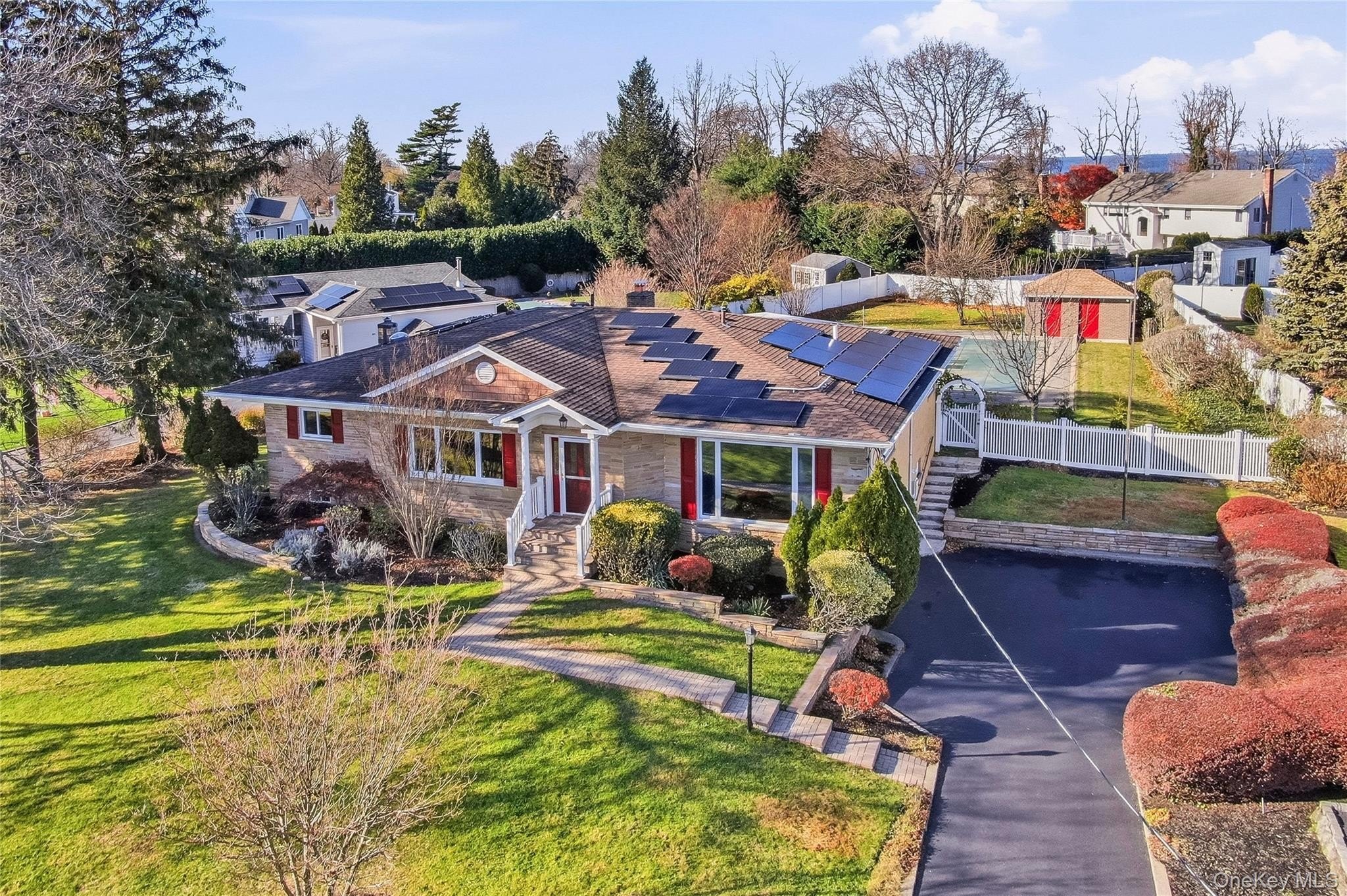 Welcome to this beautifully updated expanded ranch in the highly sought-after Crab Meadow neighborhood of Northport, where luxury, comfort, and coastal living come together seamlessly. Set on over a half acre of pristine property, this four-bedroom, three-bathroom home has been fully renovated over the last several years and offers an exceptional blend of modern amenities and timeless craftsmanship. From the moment you enter, the attention to detail is unmistakable. The family room features a stunning stone floor and matching stone gas fireplace, creating a warm, inviting focal point. Just off this space is the sun-filled four seasons room-an ideal place to relax year-round, enhanced by its own split-unit heating and cooling. The gourmet chef's kitchen is an entertainer's dream, outfitted with stone countertops, dual KitchenAid ovens, a Forna refrigerator, a 6-burner Wolf range, and a generous farm sink. The home's layout flows perfectly for both everyday living and hosting guests, with updated bathrooms showcasing exquisite stonework throughout. The expansive primary suite offers a peaceful retreat, complete with its own en suite bathroom and a large walk-in closet. Step outside to a resort-style yard designed for leisure and enjoyment. A heated Gunite saltwater pool-supported by brand-new piping and a new cover-sits gracefully within a brick patio surround. The pool house adds convenience, allowing for effortless summer entertaining. A deck off the four seasons room provides yet another inviting outdoor space. Practicality meets convenience with a three-zone in-ground sprinkler system, a Generac generator, and leased solar panels. The property is further equipped with three-zone oil baseboard heat, central air conditioning, and an additional split-unit systems for the four seasons room. Propane tanks support the generator, gas range, heated pool, and gas fireplace. Adding even more value, homeowners here enjoy optional membership in the Sound Shore Bluffs Beach Association, offering private beach rights for just $300 per year. With very reasonable taxes, a prime Northport location, and updates throughout every corner of the home, this property offers an exceptional lifestyle opportunity. Move right in and experience the best of Crab Meadow living-luxury, comfort, and coastal charm all in one extraordinary residence.
