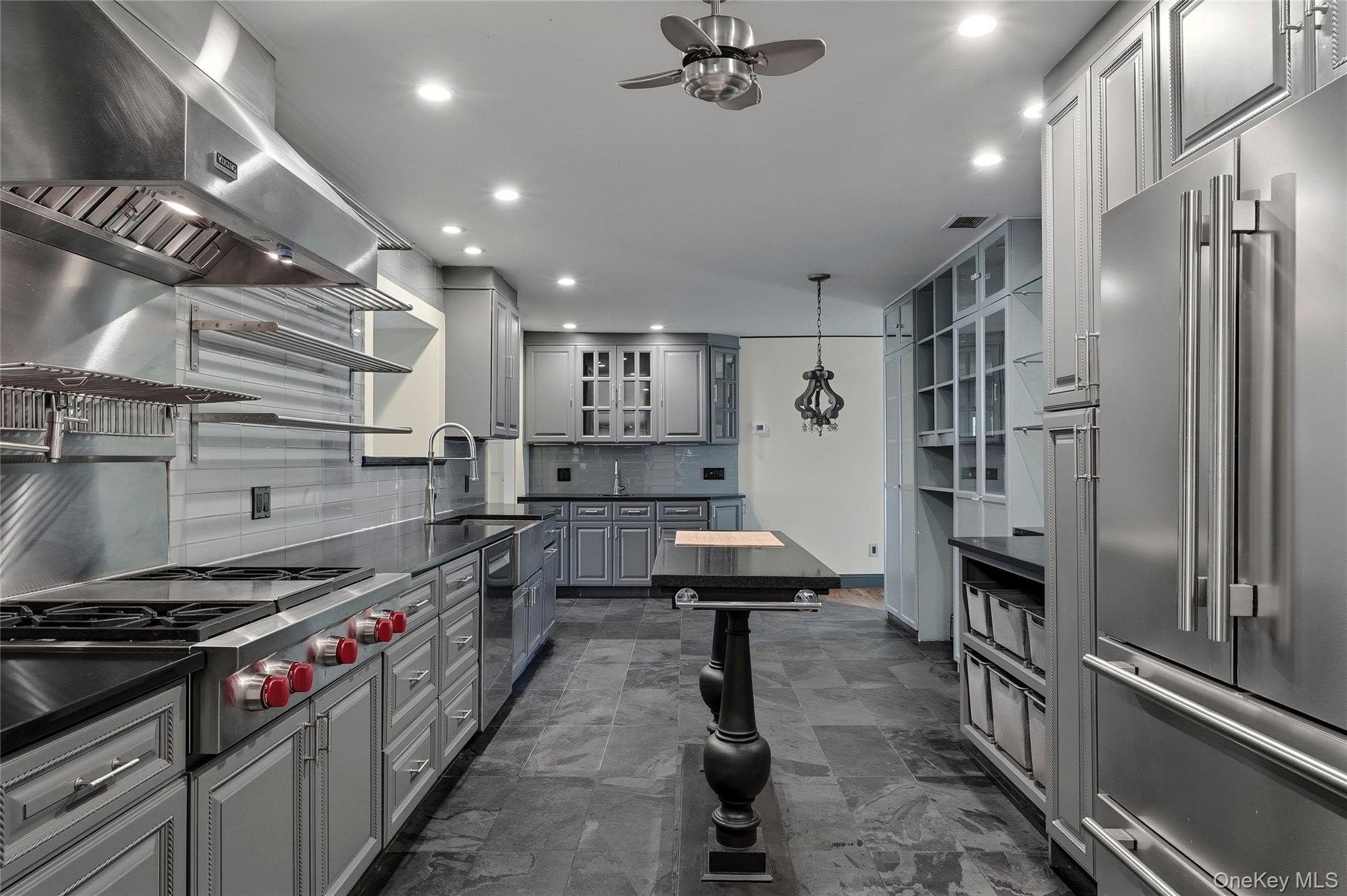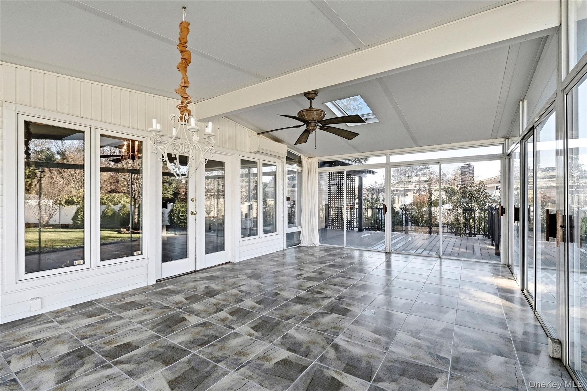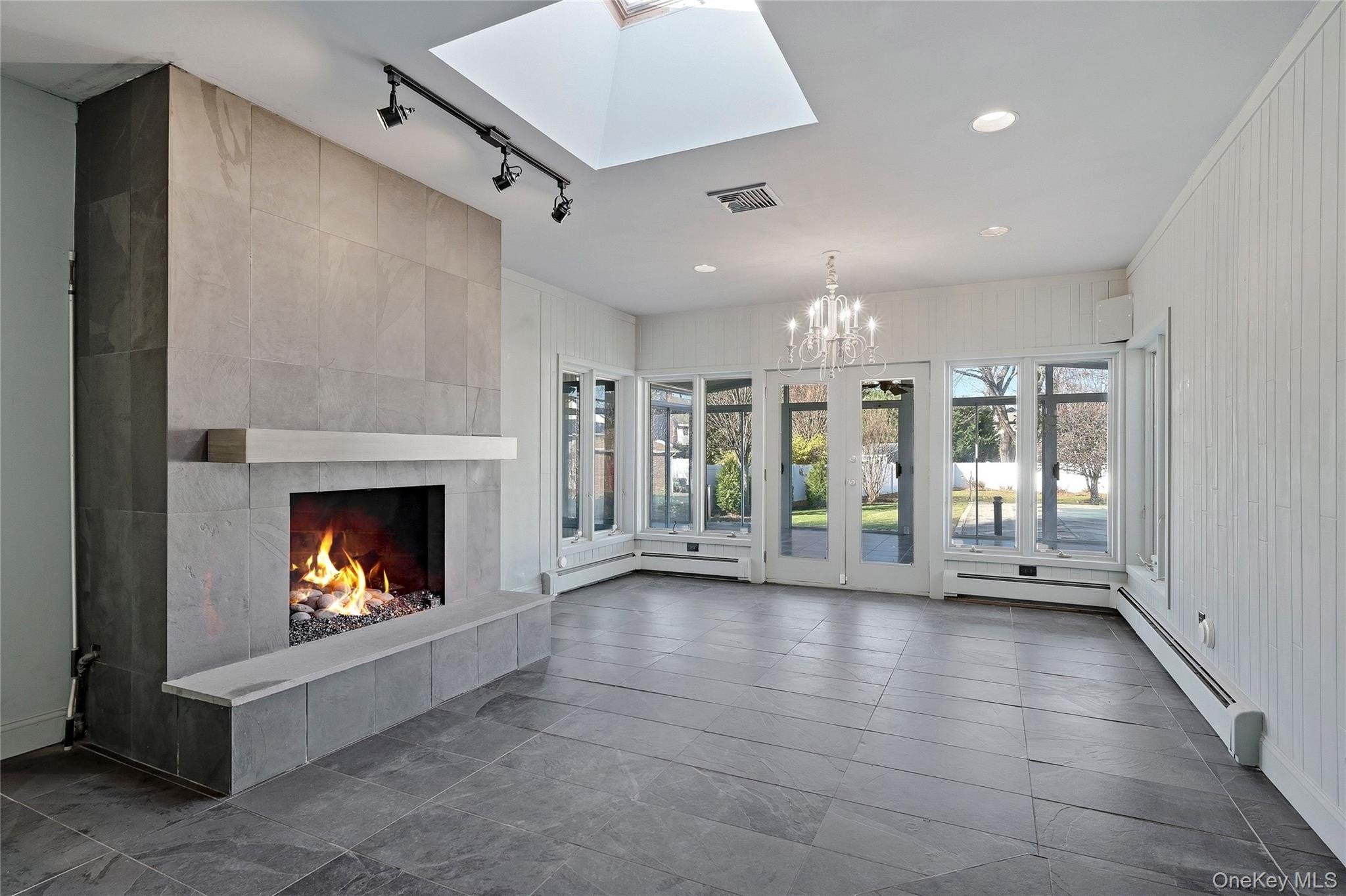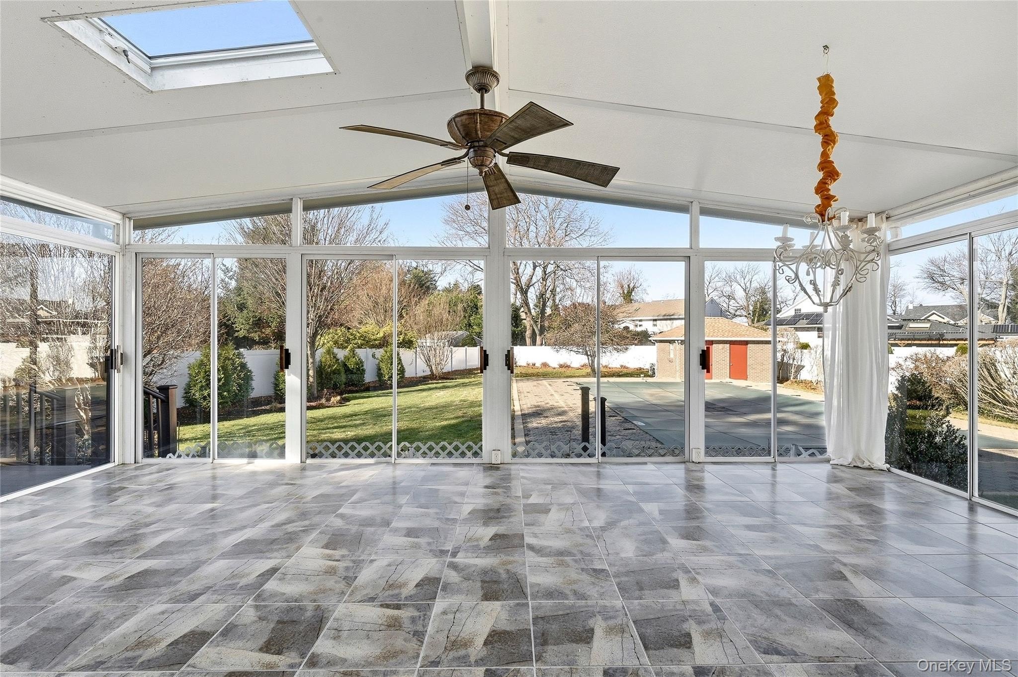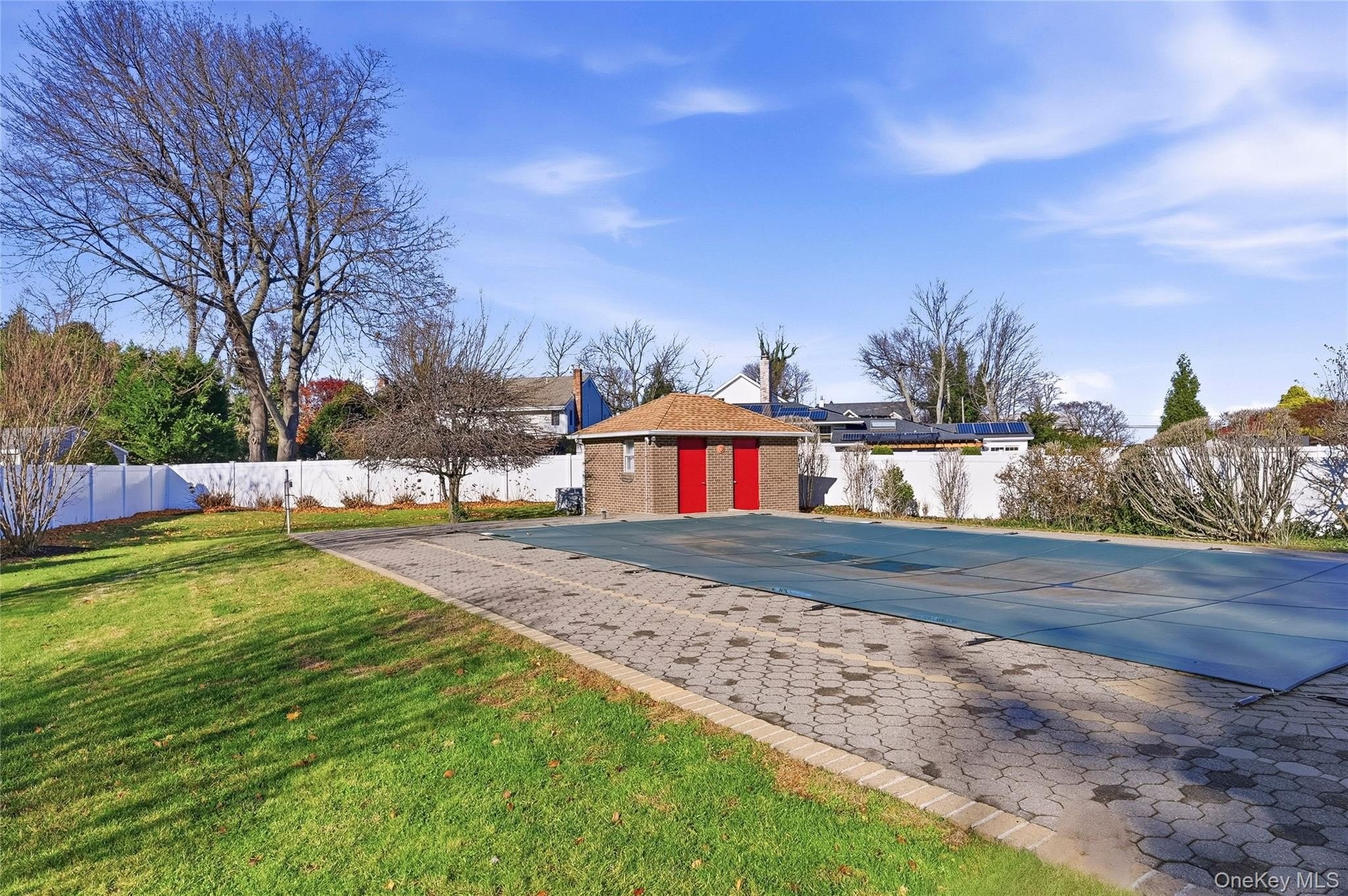 Welcome to this beautifully updated expanded ranch in the highly sought-after Crab Meadow neighborhood of Northport, where luxury, comfort, and coastal living come together seamlessly. Set on over a half acre of pristine property, this four-bedroom, three-bathroom home has been fully renovated over the last several years and offers an exceptional blend of modern amenities and timeless craftsmanship. From the moment you enter, the attention to detail is unmistakable. The family room features a stunning stone floor and matching stone gas fireplace, creating a warm, inviting focal point. Just off this space is the sun-filled four seasons room-an ideal place to relax year-round, enhanced by its own split-unit heating and cooling. The gourmet chef's kitchen is an entertainer's dream, outfitted with stone countertops, dual KitchenAid ovens, a Forna refrigerator, a 6-burner Wolf range, and a generous farm sink. The home's layout flows perfectly for both everyday living and hosting guests, with updated bathrooms showcasing exquisite stonework throughout. The expansive primary suite offers a peaceful retreat, complete with its own en suite bathroom and a large walk-in closet. Step outside to a resort-style yard designed for leisure and enjoyment. A heated Gunite saltwater pool-supported by brand-new piping and a new cover-sits gracefully within a brick patio surround. The pool house adds convenience, allowing for effortless summer entertaining. A deck off the four seasons room provides yet another inviting outdoor space. Practicality meets convenience with a three-zone in-ground sprinkler system, a Generac generator, and leased solar panels. The property is further equipped with three-zone oil baseboard heat, central air conditioning, and an additional split-unit systems for the four seasons room. Propane tanks support the generator, gas range, heated pool, and gas fireplace. Adding even more value, homeowners here enjoy optional membership in the Sound Shore Bluffs Beach Association, offering private beach rights for just $300 per year. With very reasonable taxes, a prime Northport location, and updates throughout every corner of the home, this property offers an exceptional lifestyle opportunity. Move right in and experience the best of Crab Meadow living-luxury, comfort, and coastal charm all in one extraordinary residence.