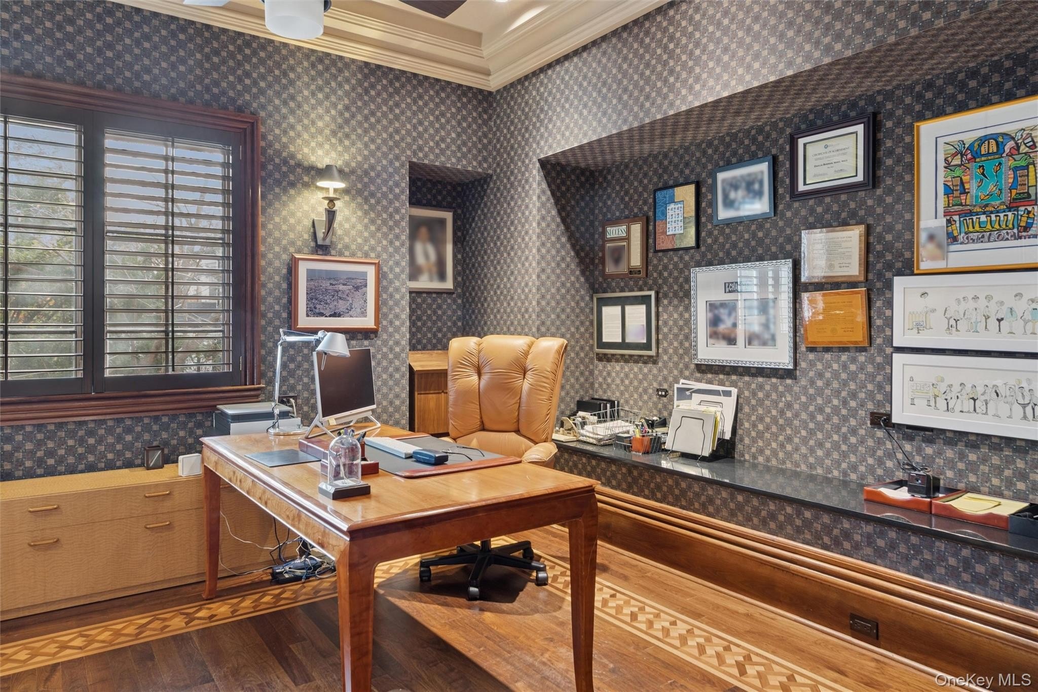 Welcome to this magnificent custom designed Estate! This prestigious brick colonial set on over an acre is in the exclusive village of Woodsburgh. This one of a kind home features 9 bedrooms, 9 full bathrooms, 3 half baths, and is perfectly designed for grand entertaining! Arrive through a stately circular driveway, flanked by two separate two-car garages (4 total) positioned on either side of the residence. Enter the breathtaking expansive foyer with soaring ceilings and experience the elegance of luxury living. With an open floor plan and attention to detail the home showcases 10 foot ceilings and 22 feet in the grand living room which boasts an adjacent library. The first floor features a primary suite that offers dual ensuite bathrooms, 2 home offices, as well as a guest suite. The heart of the home is the chef's eat in kitchen, which seamlessly flows to a great room and oversized formal dining room, ideal for hosting gatherings of any size. The sweeping staircase leads to the second floor, designed for comfort and privacy with 6 generously sized bedrooms and 5 bathrooms. Throughout the level, you'll find an abundance of closet space and sitting areas to gather. The massive walkout basement, provides a bedroom and 2 bathrooms. It is an entertainers paradise complete with a full recreation area, an indoor endless lap pool and gym. There is even an event space with custom bar and kitchen. Additional features include 2 laundry rooms, an elevator to all 4 floors and a dumb waiter. The excitement continues outside with a gunite salt water pool and hot tub, sports court, large patio and landscaped grounds. Built for both comfort and leisure, this Woodsburgh home truly has it all. Make this dream home your dream come true home! Do not miss this one! Too much to list but no detail has been missed.