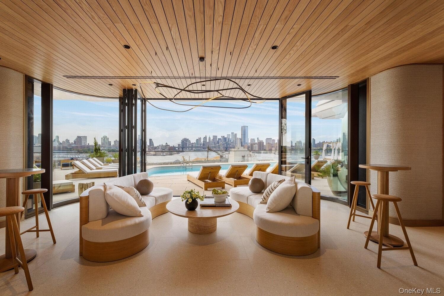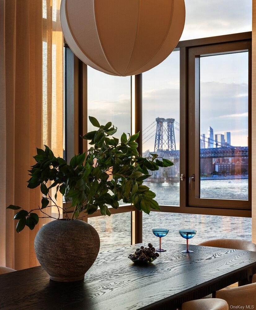 Radiant Resort-Style Living on Brooklyn's East River Waterfront. Welcome to this impeccably designed 3-bedroom, 3-bathroom condo graced with breathtaking views of the East River and the Manhattan skyline. Brought to life by the acclaimed Naftali Group and Brandon Haw Architecture, One Williamsburg Wharf is a neighborhood-defining luxury project curated to a level never-before-seen in Brooklyn. Residents enjoy a boutique experience with over 525 feet of waterfront promenades and 20,000+ square feet of world-class amenities catering to wellness, privacy, and relaxation. A sun-splashed entry gallery with picture-window views flows into an open-plan living room, dining room, and kitchen with northern and western exposure. The kitchen blends organic tones with subtle curves to create a modern, elegant space for everyday use. It features an eat-in island, honed Calacatta Gold Quartz slab countertops and backsplash, custom cabinetry, an InSinkerator garbage disposal, a matte black Waterworks pull-down faucet, a wine cooler, and high-end integrated appliances from Miele. The king-size primary suite boasts a huge walk-in closet and a spa-like en-suite adorned with radiant heated honed Carrara marble mosaic tile floors, fluted Dolomite wainscoting, a custom double vanity with curved corners, an oversized medicine cabinet with integrated LED lighting, a full-height storage unit with a built-in hamper, and a walk-in shower. The second and third bedrooms have private closets and easy access to full bathrooms. A laundry closet with a stacked washer and dryer completes the home. Resort-style, hospitality-driven amenities are designed by Ward & Gray. From the custom library, children's playroom, and pet grooming stations to the private cinema and exclusive Williamsburg Wharf Resort and Recreation Club, there is something for every lifestyle. A landscaped porte-cochere leads into a welcoming 24-hour attended lobby. Co-working lounges feature private phone booths and a wet bar. Entertaining spaces include a lounge, dining room, pantry, kitchenette, and a 9th floor terrace with a summer kitchen fire pit. Car parking and storage are available for purchase. The Williamsburg Wharf Resort and Recreation Club boasts its own concierge and reception area, a multi-season rooftop escape overlooking the East River and Manhattan, several indoor-outdoor lounges, and a 60-foot pool with poolside cabanas. There is also a seasonal ice-skating rink, a game room, and state-of-the-art fitness facilities that include a fully equipped gym, yoga and stretching areas, a basketball court, and private changing rooms and lockers. One Williamsburg Wharf is seconds from exciting dining and nightlife options like Peter Luger, Aska, L'Industrie, Pokito, and Meadowsweet. Domino Park is a few blocks away. Accessible public transportation options include several bus lines, the M, J, Z, and L subway lines, and the NYC Ferry only 200 feet from your doorstep. Tours are being held at the One Williamsburg Wharf Sales Gallery, located at 200 Kent Ave. Images are a combination of photographs and artist renderings. THE COMPLETE OFFERING TERMS ARE IN AN OFFERING PLAN AVAILABLE FROM SPONSOR. FILE NO. CD23-0081