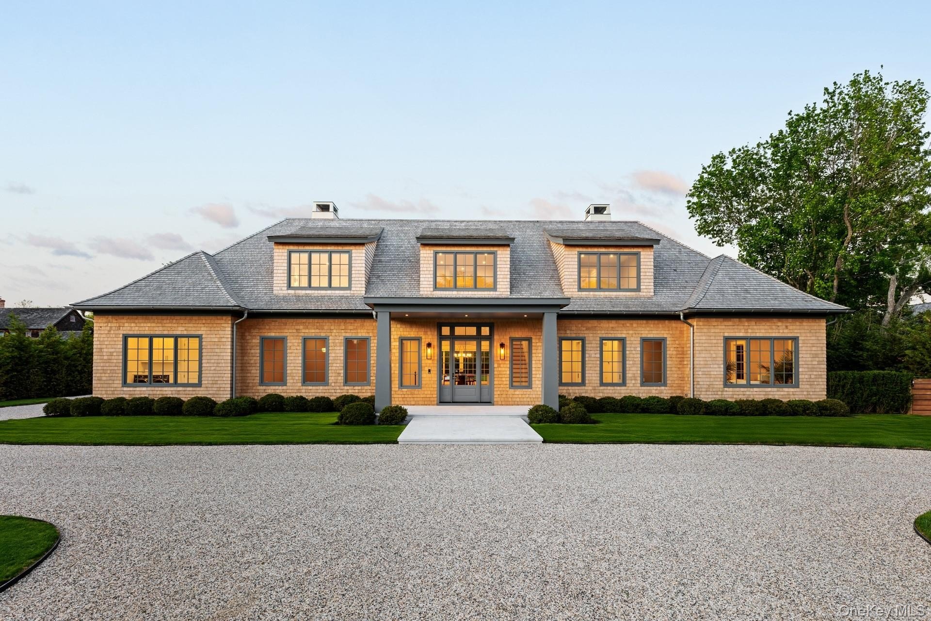 Nestled in the heart of Bridgehampton's renowned horse country, 361 Mitchell Lane offers a rare blend of timeless elegance and cutting-edge luxury. Situated on a 1-acre lot just 0.7 miles from Bridgehampton Village and minutes from world-class ocean beaches, this newly built estate showcases thoughtful landscaping that ensures both privacy and beauty. From the moment you approach via the automatic gated driveway, the home's traditional English country exterior and Alaskan yellow cedar roof set a tone of refined sophistication, perfectly framed by beautiful western views from the second story. Spanning approximately 11,100 square feet of conditioned living space, including a fully equipped pool house, the residence offers seven bedrooms and twelve bathrooms across three levels, all accessible by a custom staircase and an elevator. Interior highlights include 10-foot ceilings, coffered principal rooms, radiant heated floors, and four fireplaces with custom marble surrounds. The kitchen is a culinary dream, featuring a 60" Wolf range, dual Thermador refrigerators, and handcrafted Ciuffo cabinetry with Imperial Danby marble countertops. Thoughtfully designed for modern living, each bedroom boasts individual climate control, while architectural lighting, whole-house audio, and a comprehensive security system enhance both function and ambiance. The lower level is a full lifestyle destination, offering a multi-level screening room with a 150" infinity screen, a glass-walled gym with steam shower, and a bar with wine towers holding up to 400 bottles. Outdoors, resort-style amenities include a 20' x 54' heated gunite pool with integrated spa, a 540+/- square foot pool house, and a DCS outdoor kitchen setup. Sustainability is top of mind with a 12KW solar system and a whole house Kohler generator, all connected to underground utilities. This meticulously constructed property is a rare offering that pairs architectural excellence with the luxury of location and lifestyle in Bridgehampton.
