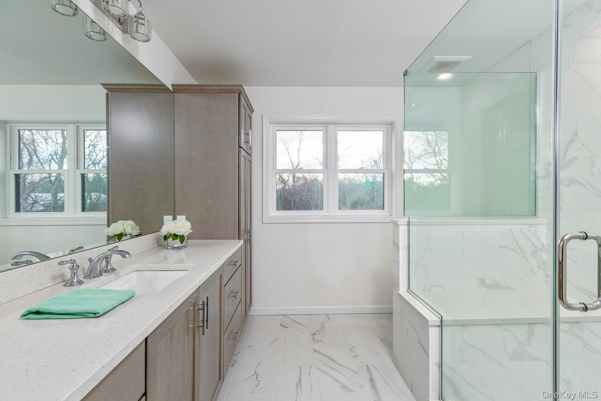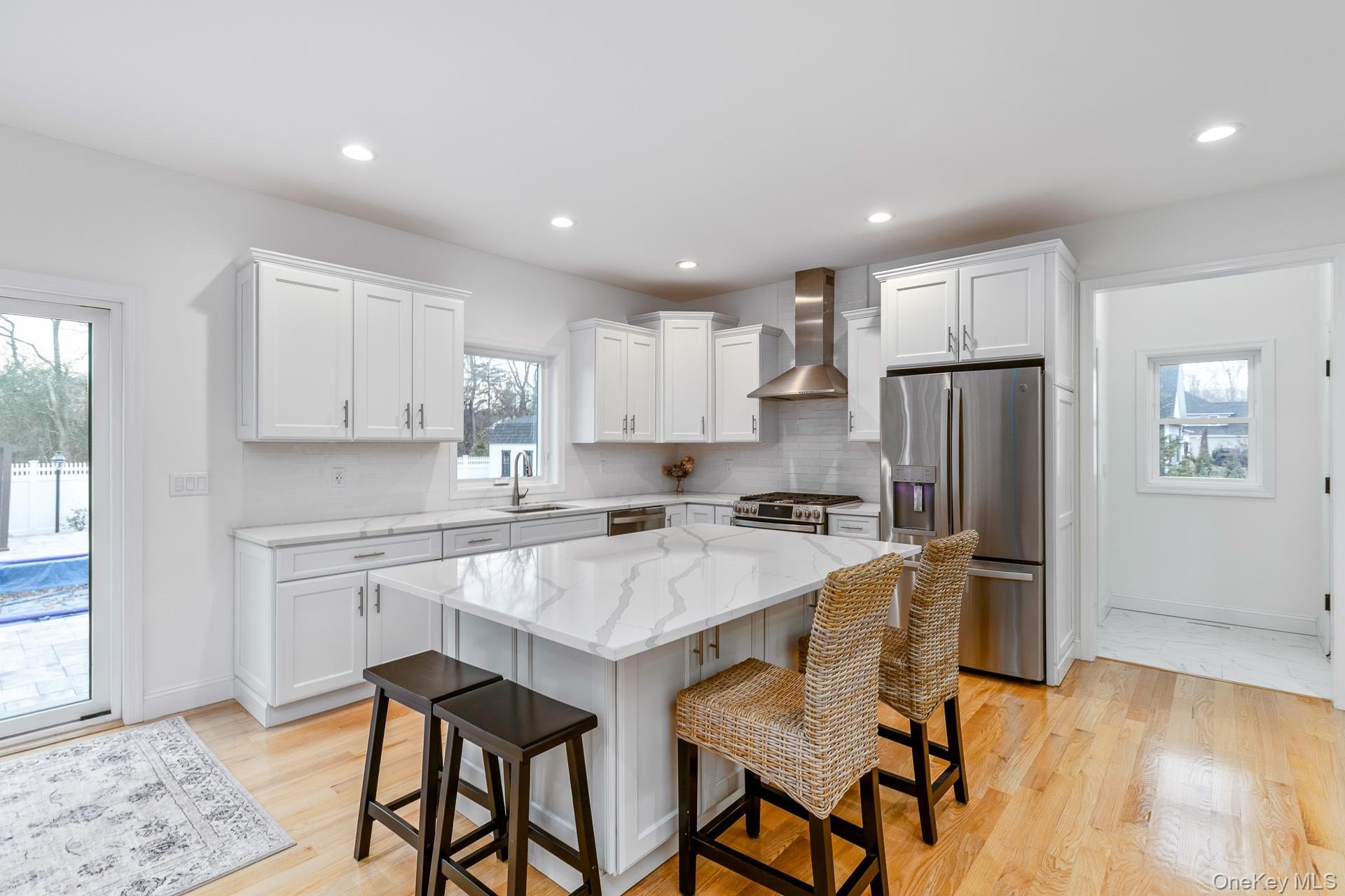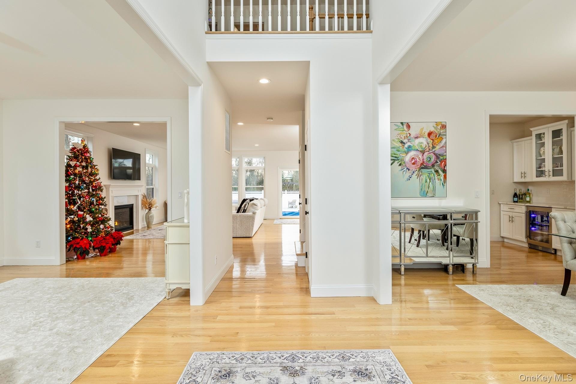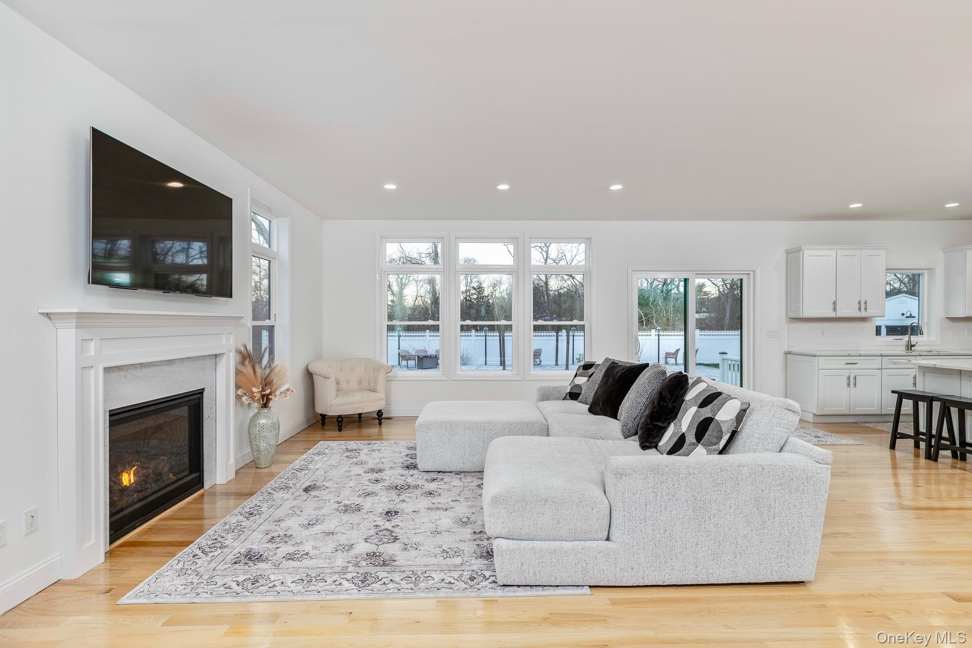 Tucked away at the end of a cul-de-sac block on a newly developed street, this exceptional residence built in 2023 offers modern comfort, luxury finishes, and a dream outdoor oasis. Enjoy the privacy of only having one neighbor next to you. The heated, saltwater inground pool, installed in 2024 by Swim King, is the highlight of the property, surrounded by a gorgeous paving stone patio that is perfect for arranging many different sitting and dining areas. Paver walkways lead you to the beautifully landscaped yard, creating a serene and elegant outdoor setting. The home's exterior features upgraded black-frame windows and a stylish metal front porch roof, enhancing its modern curb appeal. There is plenty of room for your guest to park with the extended driveway that wraps to the side of the home. Step inside to a bright and airy interior designed with additional windows to fill each room with natural light. A dramatic two-story entry foyer welcomes you, leading to spacious living areas all with hardwood floors throughout. The kitchen is equipped with a center island with built-in microwave, free standing hood and adjoining Butler's Pantry complete with a beverage/wine refrigerator that is perfect for entertaining. Upstairs, you'll find upgraded bathroom tilework and showers, along with the convenience of a second-level laundry room. A full basement with outside entrance (OSE) offers endless potential for future customization. Located in the highly regarded East Moriches School District, offering a choice of ESM, Center Moriches, or Westhampton Beach High School. East Moriches is known as the gateway to the Hamptons, providing easy access to all the beauty and amenities the South Fork has to offer. This young, meticulously finished home is truly turn-key and ready to enjoy both inside and out.