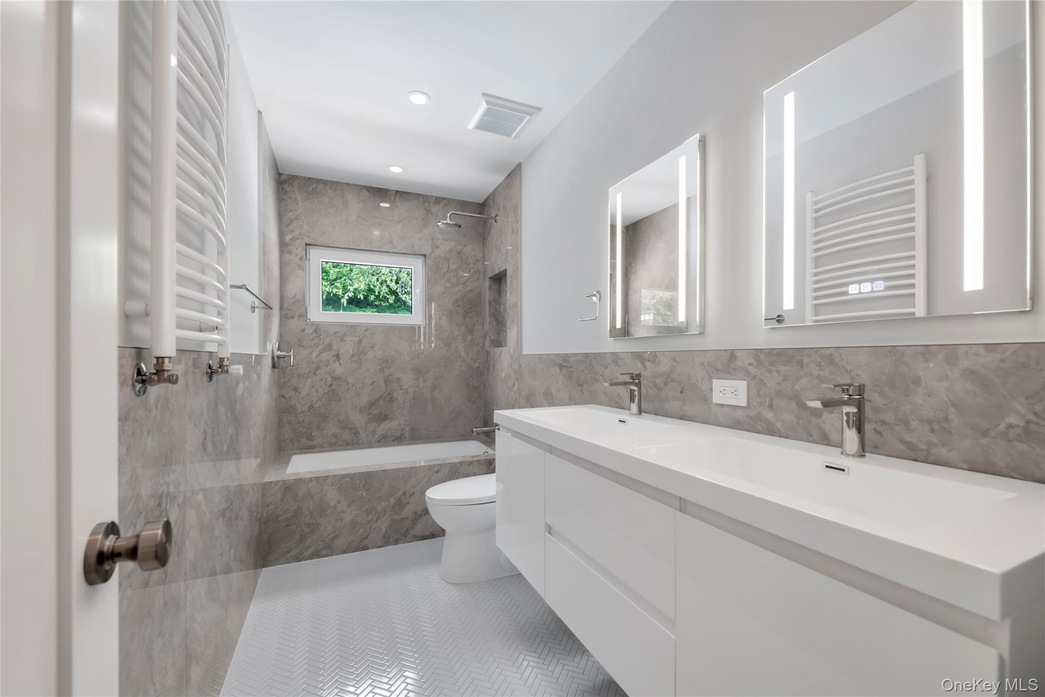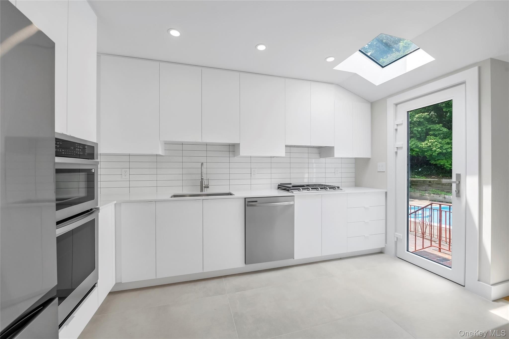 Totally updated with modern finishes, this split level home offers immediate occupancy and enjoyment. Brand new windows and siding plus full interior renovation. Nestled on a beautifully landscaped property, just under half an acre, 27 Meadowfield Lane offers refined living in the City of Glen Cove near the town Locust Valley too. Just completed, this 4 bedroom residence blends sophisticated design with every day comfort. Spacious layout complete with ground level bedroom and full bathroom off the foyer. The main level features soaring ceilings and an open floor plan. Large living room open to the eat-in-kitchen. Luxury kitchen with all new Samsung appliances, gas stove, stainless steel appliances, all new cabinets, quart countertops and centre island. The den is complete with gas fireplace framed in marble. Three additional bedrooms on the second level and new bathroom. All the finest materials throughout. The lower level offers flexible space for guests, a home office, or a media room, private laundry room and utilities. Outside, enjoy your own private retreat with a large in-ground swimming pool surrounded by mature landscaping. Additional highlights include modern European-style windows, natural gas heating, a new split-unit A/C system, and updates throughout. This move-in-ready home is a rare blend of style, comfort, and location-perfect for those seeking luxury living in a serene setting. Glen Cove residents enjoy access to three beaches on the Long Island Sound, a beautiful golf course with driving range and multiple parks.