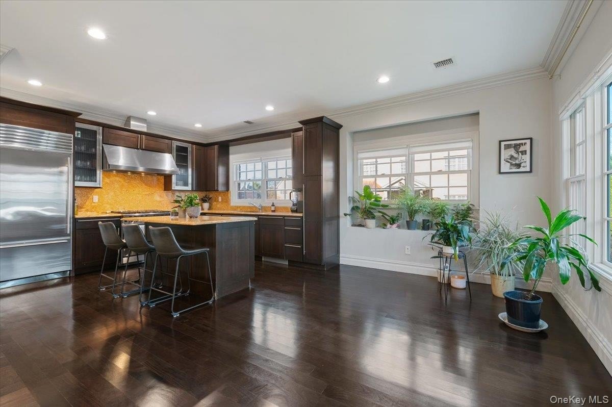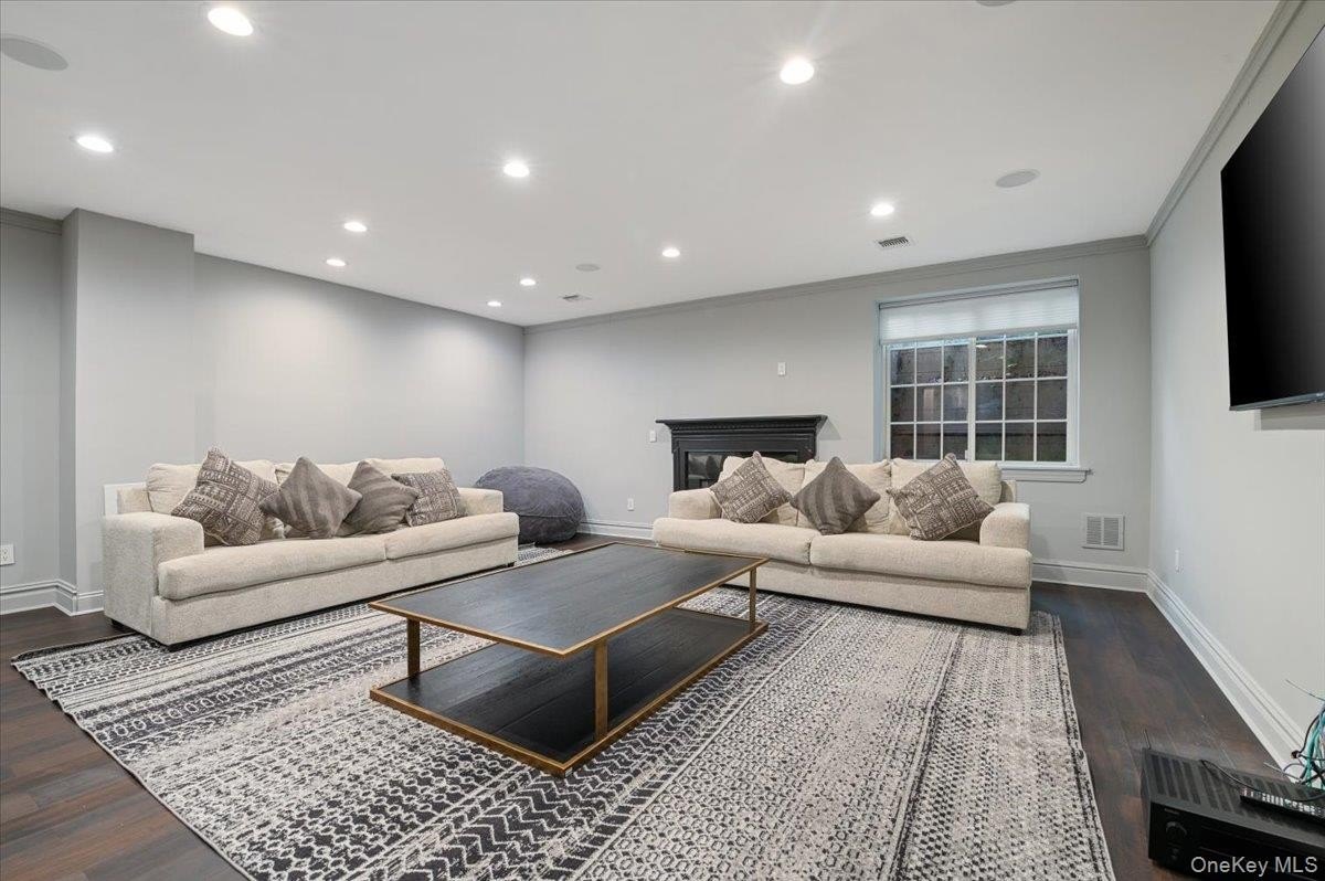 Corner end unit townhome in The Preserve at Woodbury offering approximately 3,064 square feet across three finished levels. Brick exterior with private side entrance, driveway, and attached two car garage. Main level features a large living room with fireplace, formal dining area, kitchen with breakfast nook, powder room, and elevator access. Second level includes a primary bedroom with walk in closets and en suite bath, two additional bedrooms, and a full bathroom in the hallway. Lower level offers a spacious family room, full bath, laundry room, utility space, elevator access, and direct entry to the garage. Private patio and surrounding green space. Community amenities include clubhouse, fitness center, recreational facilities, and walking paths. Conveniently located near major roadways, shopping, and transportation, with Syosset School District. The home is zoned for Walt Whitman Elementary School.