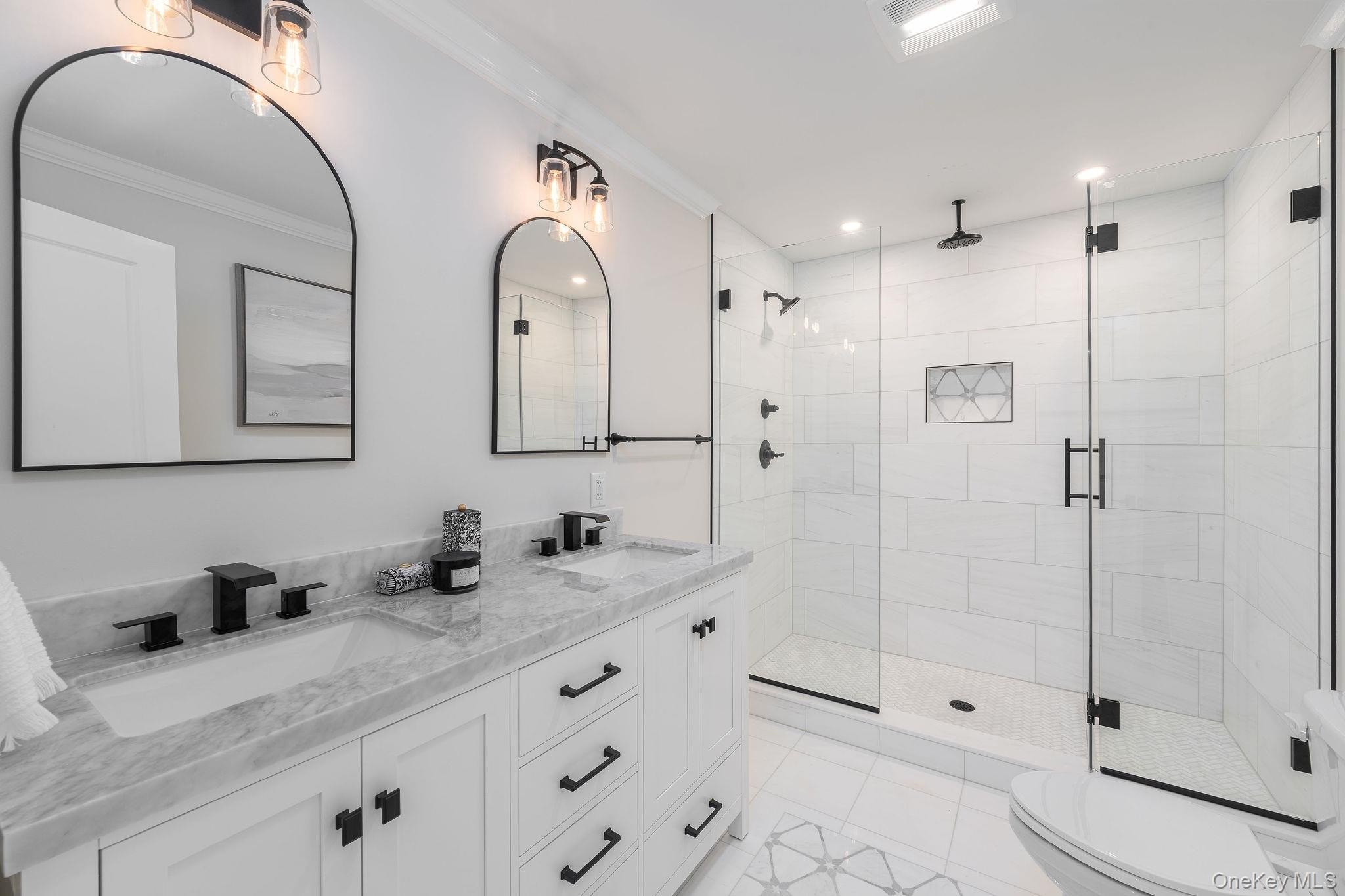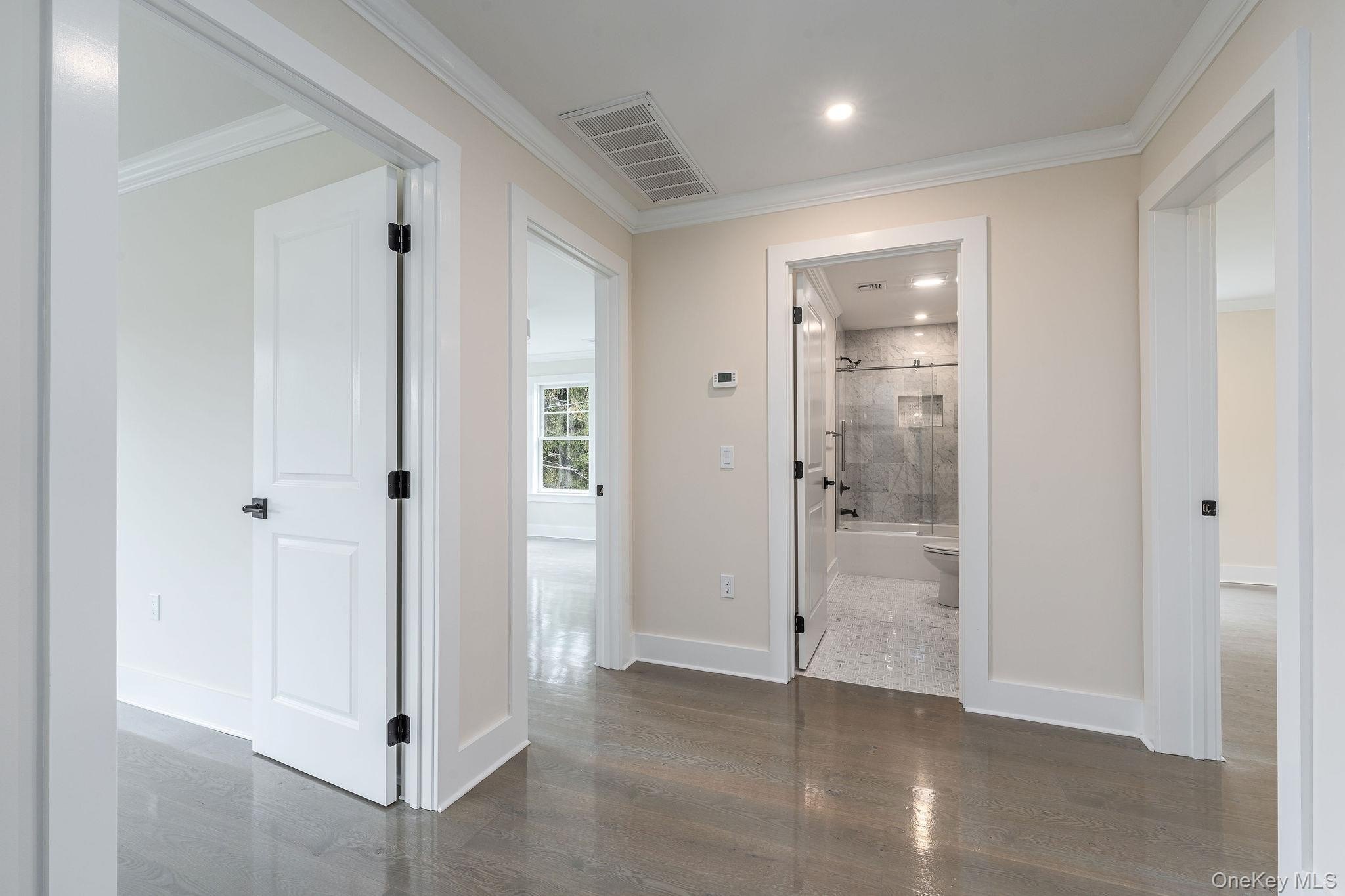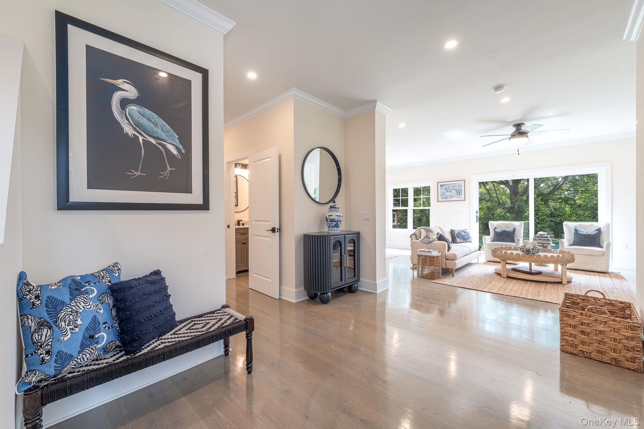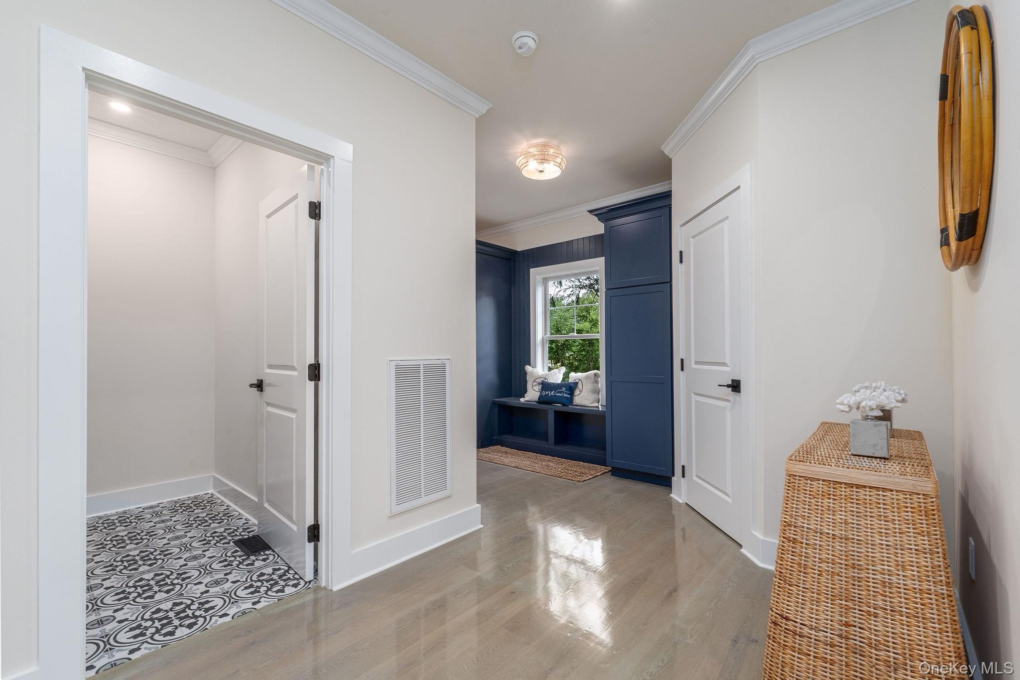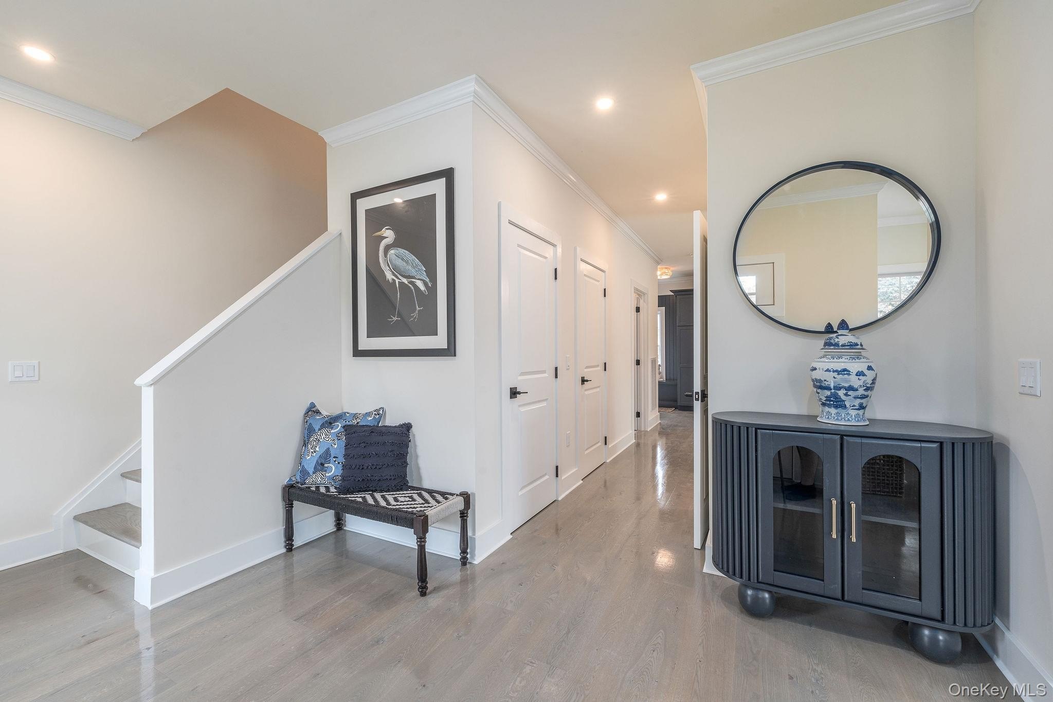 Welcome to this luxurious new construction in the heart of South Jamesport, just half a mile from the beach and 200 yards from deep-water marina. Located in an exceptional neighborhood, this beautifully crafted home features 3 spacious bedrooms and 2.5 elegant bathrooms, including a stunning primary ensuite with a marble bathroom, double vanity, and large custom closets. Designed with an open-concept layout, the entire home boasts 7-inch wide oak wood floors, a cozy gas fireplace, and a gourmet kitchen equipped with premium Thermador appliances. The full basement, with 9-foot ceilings and two egress windows, offers the potential to add up to two additional bedrooms-perfectly aligned with the septic system already approved for five bedrooms. Step outside to enjoy a 16x32 heated inground gunite saltwater pool, surrounded by professional landscaping, landscape lighting, and an irrigation system. A charming front porch with a tropical wood deck completes this exceptional offering, blending refined interior design with resort-style outdoor living.