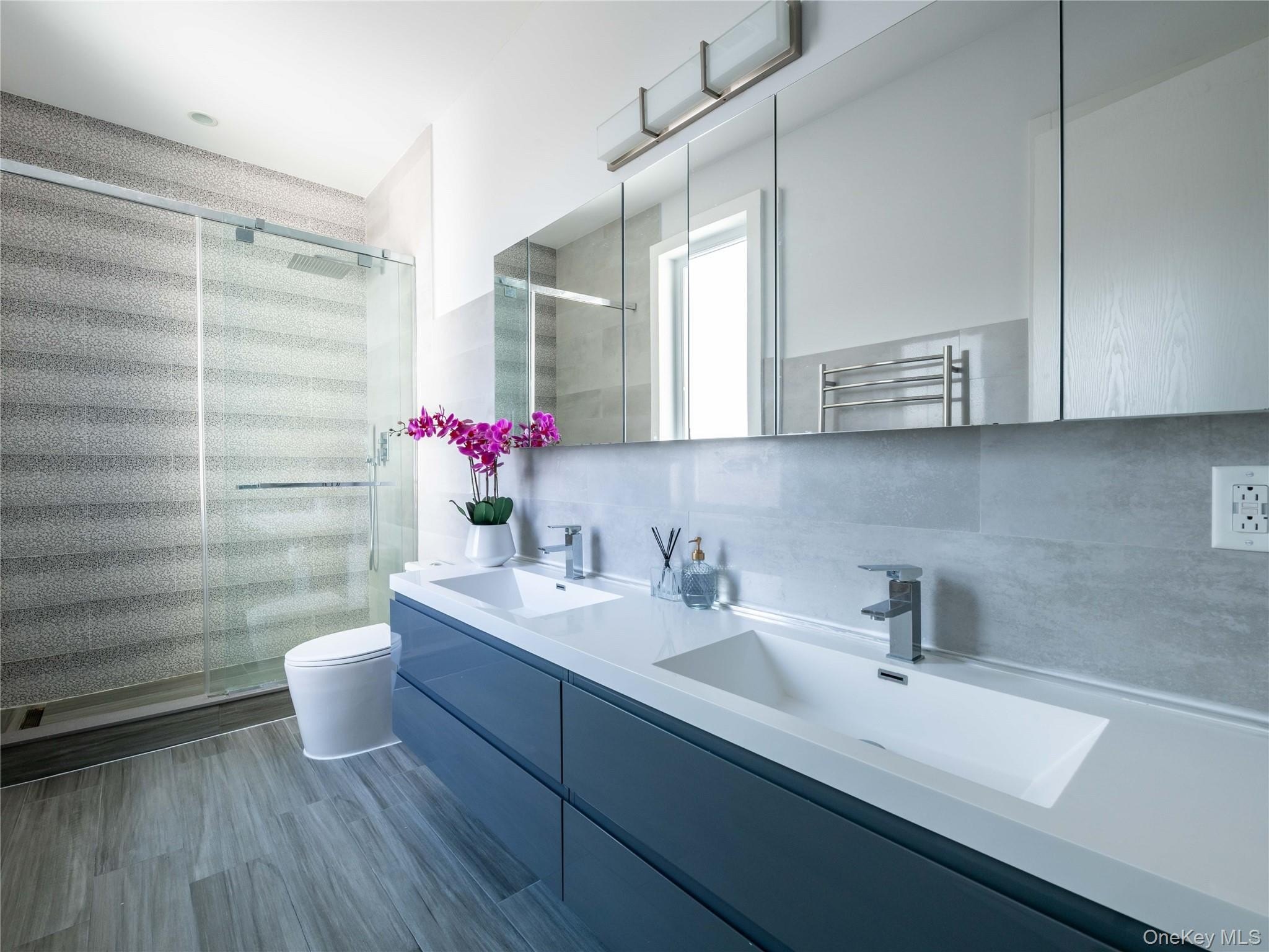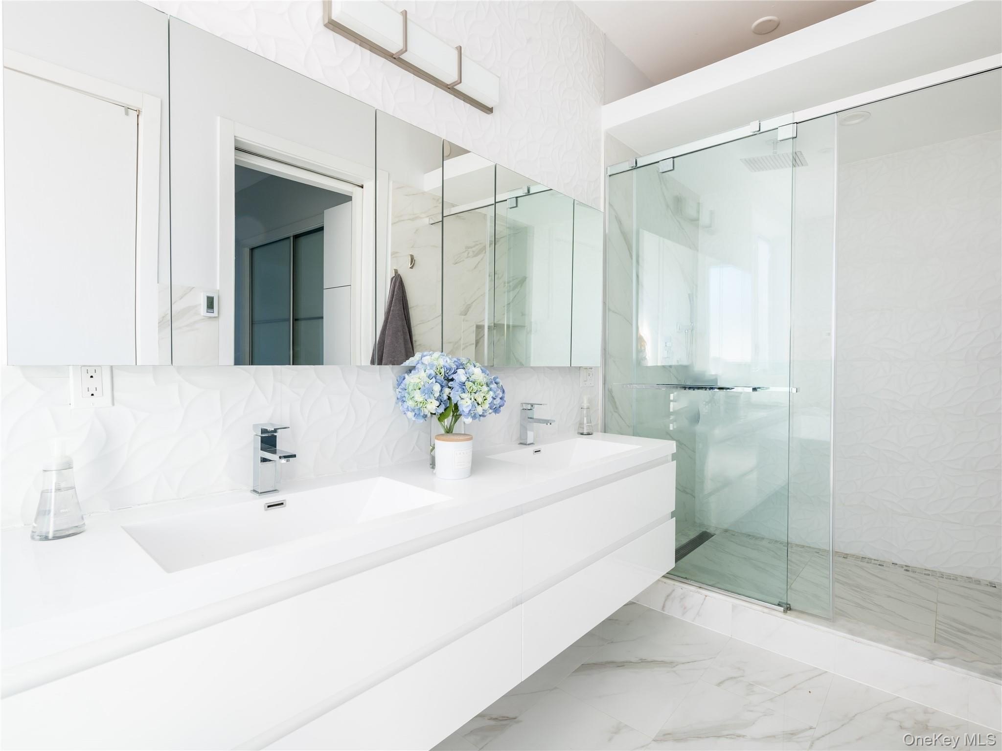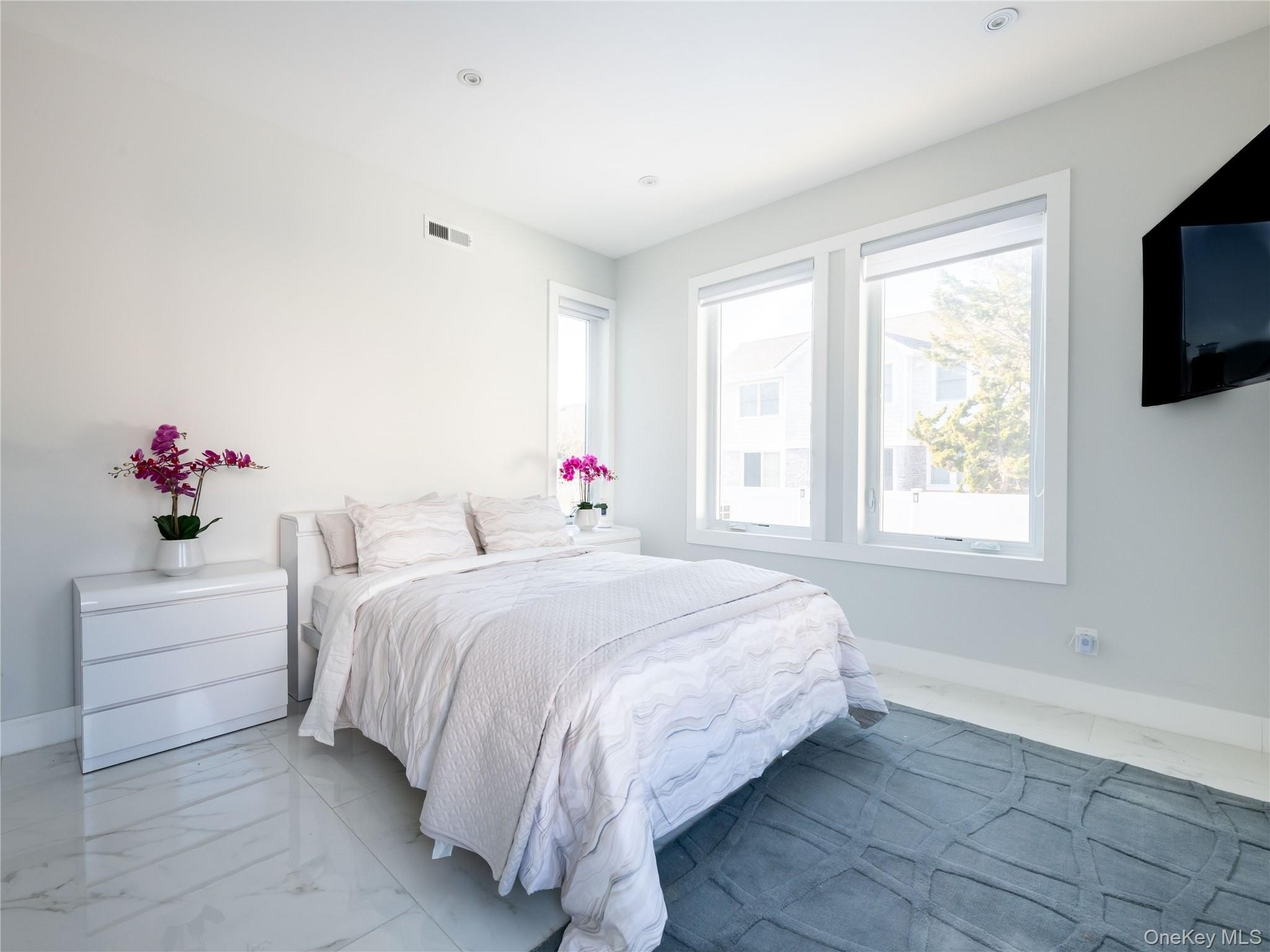 Spectacular oasis just a block from the private beach - truly a beach lover's dream! Recently dubbed 'The New Hamptons' by the NY Post (without the treacherous commute!), this exceptional 6-bed, 4.5-bath home is built for both entertaining and relaxing. Soaring ceilings, sun-filled rooms, a stunning entry foyer, and a chef's kitchen with custom cabinetry, top appliances, and Caesarstone counters await. Living and dining areas are divided by a striking fireplace, with sliders leading to a veranda and a gorgeous backyard featuring an in-ground saltwater pool, hot tub, and outdoor entertaining area. The grand primary suite has a balcony with sunset views over Reynold's Channel. Additional highlights: multi-zone Daikin AC, radiant-heated floors, solar panels, wine fridge, hardwood floors, walk-in closets, and reverse osmosis water filtration. Short distance to the private beach, restaurants, tennis courts, houses of worship - and only 23 miles to NYC. Luxury living at its finest! Tax records state 4194 square feet. Per inspector-approved floorplans for the house The livable square footage per floor is 2,401 sq. ft., totaling approximately 4,800 sq. ft. of total square footage (excluding the roof).