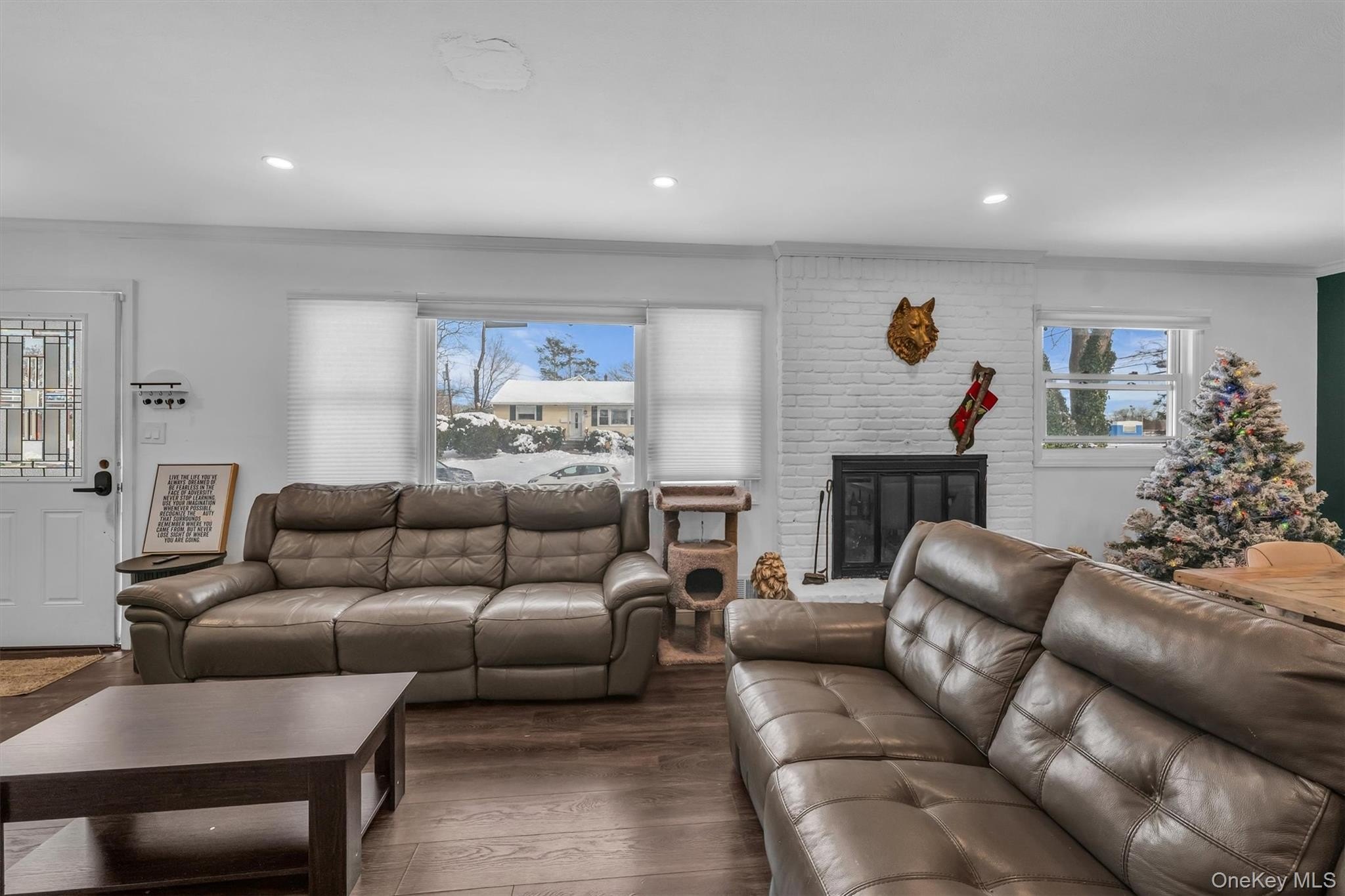 Welcome to this lovely three-bedroom ranch in Centereach, located on a peaceful corner lot at the end of a dead-end street. This home features maintenance upgrades, including a roof, siding, bathroom floors, kitchen cabinets, and some PVC fencing, all completed in 2018. Plus, the kitchen is well-equipped with a brand-new gas range, refrigerator, and dishwasher added in 2024. As you step inside, you'll enjoy the cozy feel from the two wood-burning fireplaces and the comfort of central air. The home also offers a separate entrance to a potential finished basement, along with an attic for extra storage.The property is also complete with a 7-zone sprinkler system. Conveniently located near major roads like Nicols Road, NY-347, and Middle Country Road, you're just a short drive away from shopping centers and everything you need. This home truly offers a blend of comfort and convenience!
