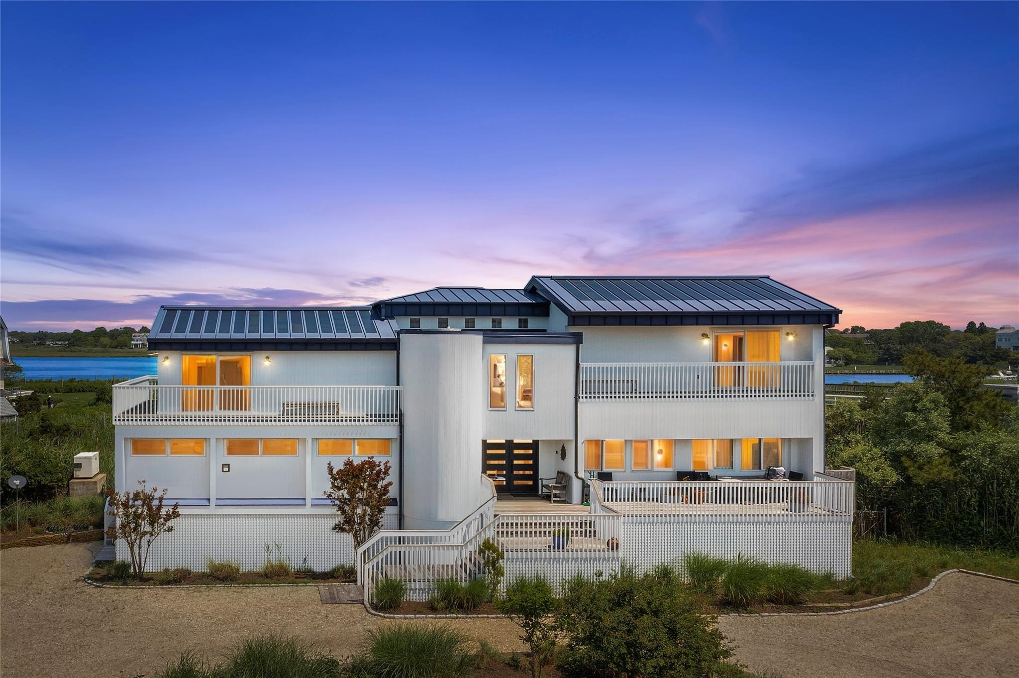 Located on a quiet street off Dune Road in prestigious Quogue, this distinctive four-bedroom, four-bath beach house offers an idyllic waterfront lifestyle. Boaters will appreciate the private deep-water dock set within a tranquil cove on Quantuck Bay, providing direct access for endless days on the water. A deeded private right of way to the ocean across the street ensures easy enjoyment of sandy shores and coastal breezes. The home is thoughtfully designed to showcase panoramic bay views from nearly every room. Spacious decks extend from each living space, while the updated kitchen and open living room feature expansive sliding doors that seamlessly connect to the in-ground pool and dockside patio-perfect for entertaining or quiet relaxation. Upstairs, a sunlit den with floor-to-ceiling windows serves as a serene retreat, and two generous primary suites include walk-in closets and luxurious en suite baths. Modern upgrades enhance both comfort and sustainability, including new bathrooms and kitchen finishes, solar panel metal roofing, and an energy-efficient geothermal heating and cooling system. Blending contemporary updates with classic Hamptons style, this property captures the best of indoor-outdoor living in a truly coveted Quogue location.