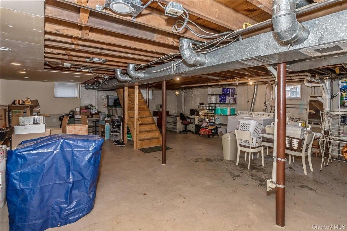 Neat and clean 5-bedroom, 2-bath Colonial offering spacious living and a flexible layout. The first floor features a welcoming living room, formal dining room, and an eat-in kitchen, along with a convenient first-floor bedroom and full bath-ideal for guests or extended living. The second floor offers four generously sized bedrooms and an additional full bathroom. The home includes a full unfinished basement, providing excellent storage or future finishing potential. Enjoy outdoor space with a backyard and patio, plus a one-car detached garage. Recent improvements include a new central air conditioning system in 2024, ring doorbell and a central vacuum system added in 2023. The Tesla solar system, new water heater, and boiler were installed in 2022, while upstairs windows were replaced in 2018. This home offers a strong foundation, valuable upgrades, and is conveniently located close to all amenities.