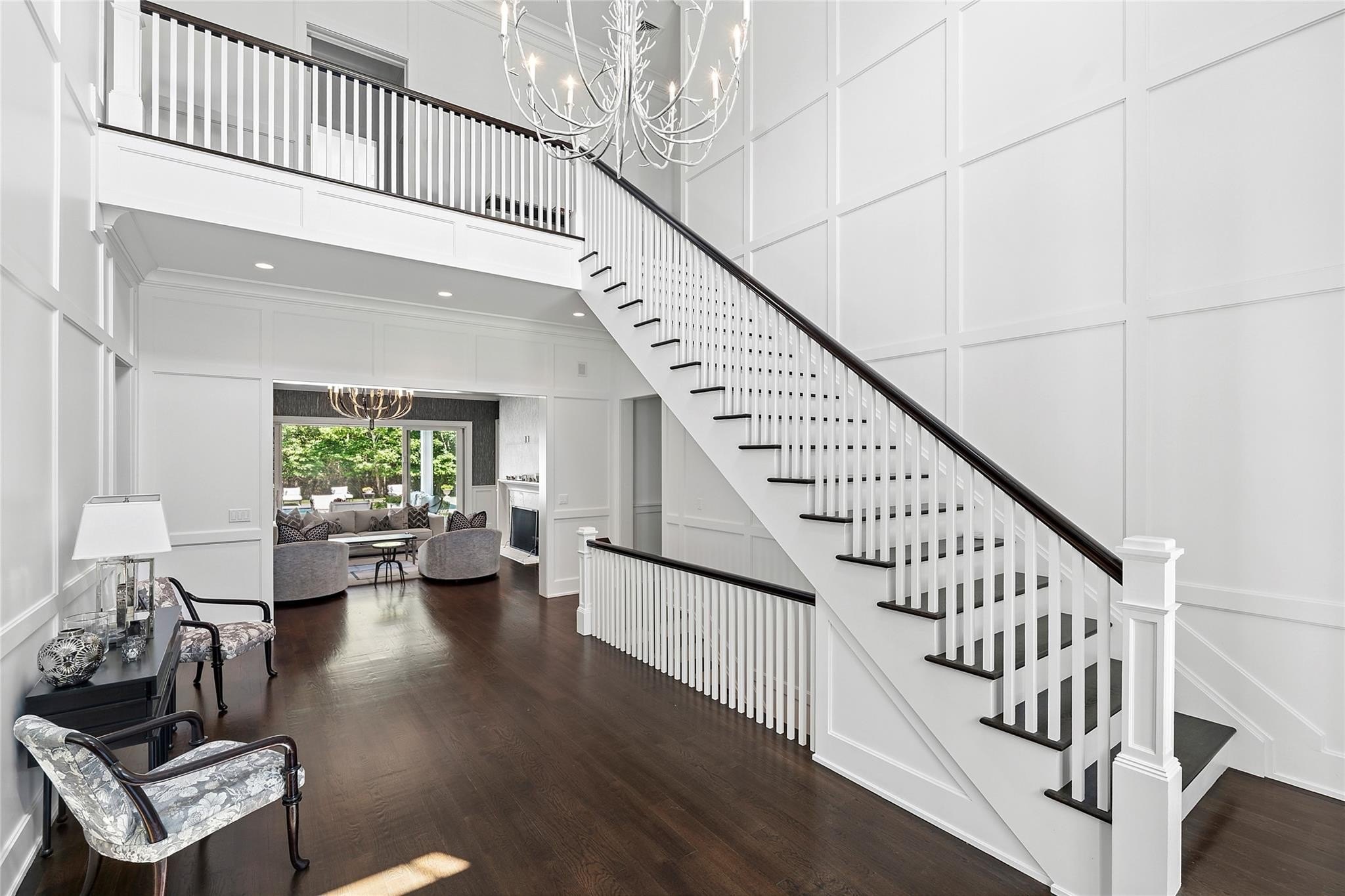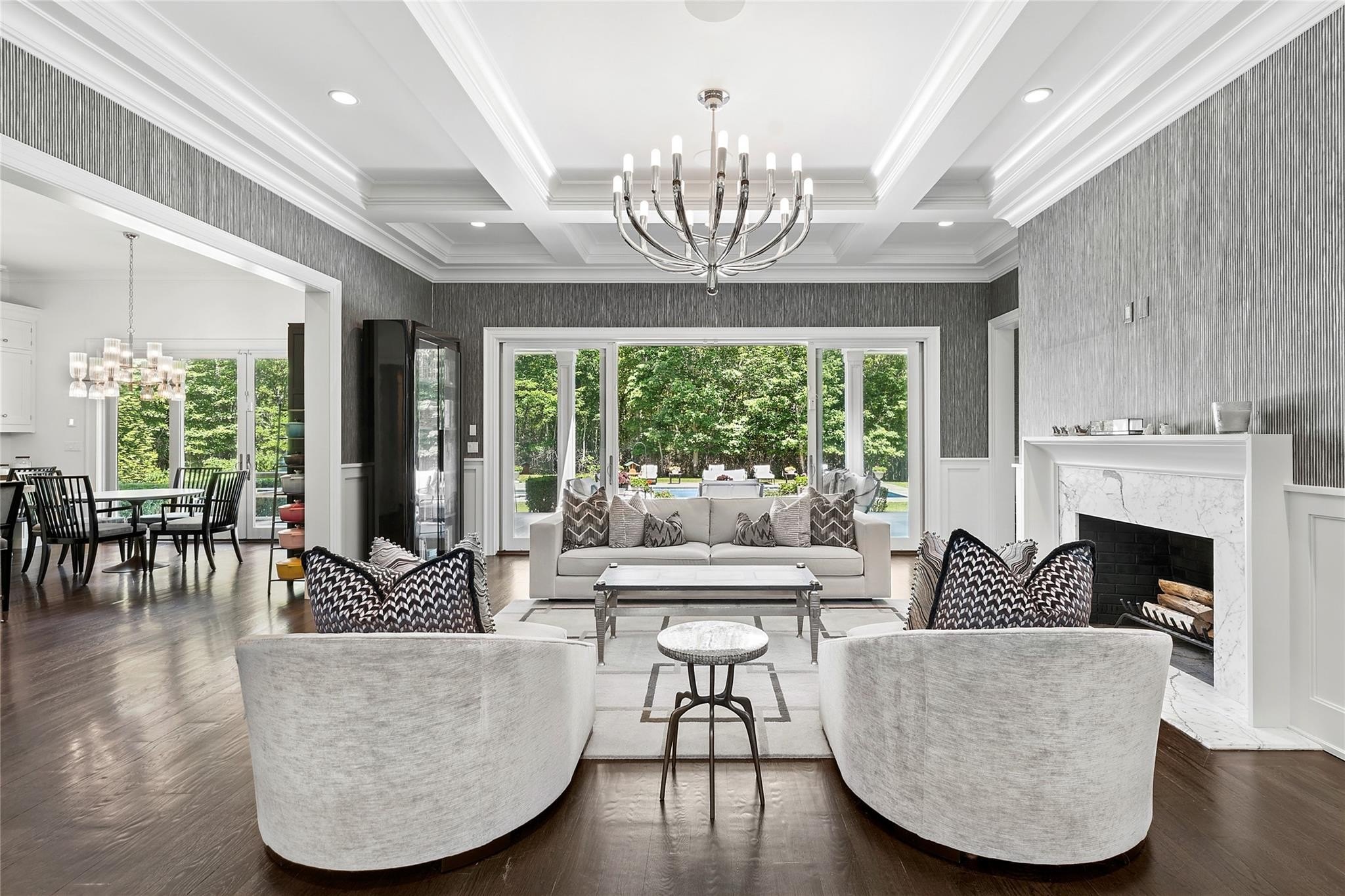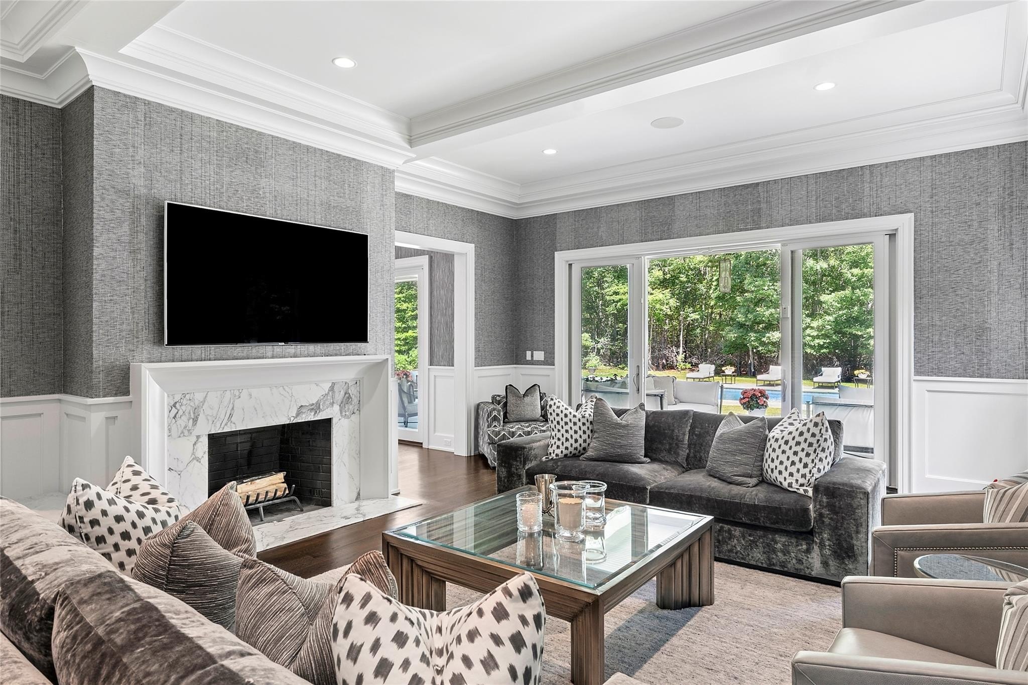 Tucked away down a winding driveway, past a gated entrance, and set on 6.5 acres of serene privacy, this extraordinary gabled estate offers the perfect Hamptons retreat. Conveniently located near the attractions of Bridgehampton and Sag Harbor, this immaculate residence spans over 8,000 square feet of pristine living space, featuring custom interior design and high-end details on all three levels. The home includes 8 spacious bedrooms, 7 full bathrooms, 2 half baths, a three-bay garage, a large gunite pool with a spa, and an expansive bluestone patio with multiple lounging areas, all surrounded by mature trees, lush landscaping and exterior lighting. A dramatic, double-height entry foyer welcomes you into the home, leading to the open living area with a fireplace and sliding windows that seamlessly blend the indoors with the natural surroundings. A luxurious den with a second fireplace provides an elegant retreat, offering serene pool views. The oversized chef's kitchen is a dream, perfect for cooking, dining, or entertaining. Carrara marble accents the generous island with bar seating, keeping guests close while you cook. Premium Sub-Zero, Wolf, and Miele appliances, including two dishwashers, make this space a chef's paradise. The formal dining room, just beyond, offers ample space for seating 12 or more guests. The main level also features one of the two primary bedrooms and a stylish powder room. Upstairs, you'll find 5 ensuite bedrooms, including the grand primary suite, which boasts a balcony, walk-in closet, and an expansive spa-inspired bathroom with marble sinks, a soaking tub and top-tier fixtures. Two of the guest suites also feature balconies, offering sunset views over the trees. The upstairs is completed with a large laundry room. The fully finished lower level offers 10-foot ceilings and is flooded with natural light from deep window wells. It includes two guest suites, a recreational area, media room, half bath, and a professional-grade home gym. The serene grounds are beautifully designed for entertaining and easy living, with lovely outdoor dining areas, and a heated 50-foot gunite pool with an integrated spa, all surrounded by natural bluestone. There's a covered porch for lounging and ample space for sunbathing, with the pool receiving beautiful southwestern light until sunset. The attached 3-car garage features high-performance epoxy flooring and custom cabinetry for toys and accessories. The home is equipped with Control4 automation, an indoor/outdoor sound system, security system, water filtration, and a multi-zone HVAC with humidification. This combination of meticulously maintained classic luxury, complete privacy, and easy access makes this estate one of the most exceptional properties available today.