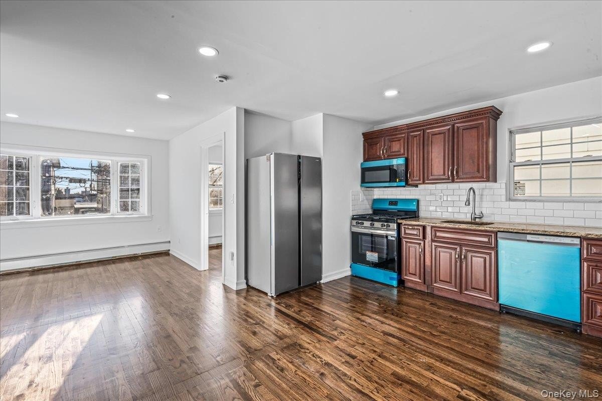 Welcome to a fully renovated brick semi-detached house with 8 bedrooms & 3 baths with a private driveway&garage and large fenced backyard in the Williamsbridge Section of the Bronx. This spacious property offers incredible versatility and investment potential, whether you're looking for an income-producing property or a place to call home. This house has been updated with new kitchens, new bathrooms, sanded & polished hardwood floors throughout, new stainless steel appliances, granite countertops, dishwashers, recessed lighting. The first floor unit offers two finished rooms, tiled floor, a summer kitchen, a full bathroom, and access to a private large backyard. The second floor offers three(3) bedrooms, living room, modern kitchen, full bathroom. The third floor offers three(3) bedrooms, living room, modern kitchen, full bathroom and separate utilities room.The house is close to public transportation (2 & 5 MTA-subway lines, bus stops, Metro-North), major highways, schools, shopping, parks, and local dining options in the neighbor. Don't miss the opportunity to own this turn-key house. Call today!
