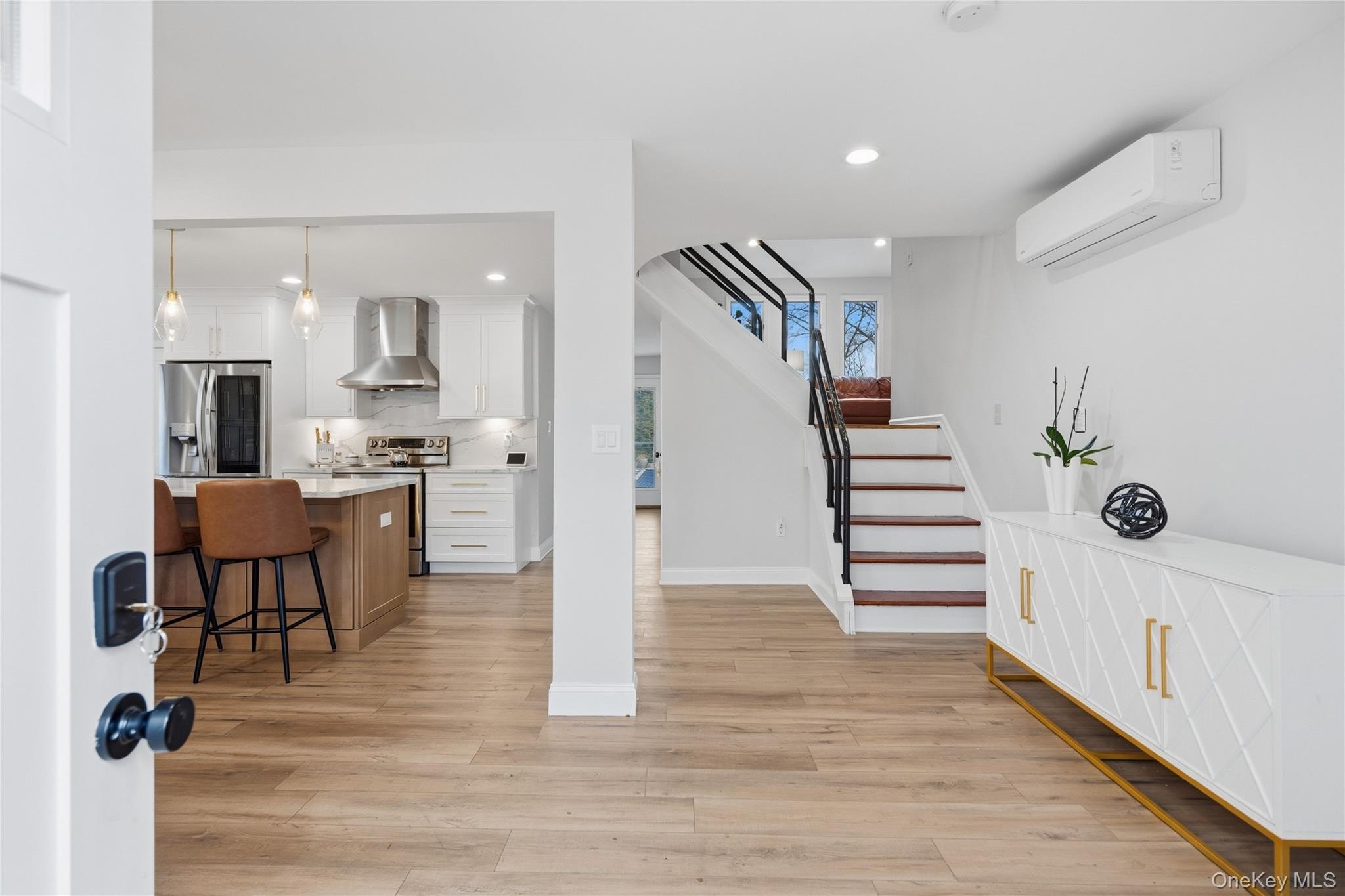 Welcome to this beautifully maintained Splash-style home in desirable Mount Sinai. Featuring 4 bedrooms and 1.5 baths, this residence offers a perfect blend of comfort, style, and indoor-outdoor living. The gorgeous, updated kitchen-truly the heart of the home-boasts stainless steel appliances, elegant gold accents, a pantry, and oversized Andersen windows that flood the space with natural light. The inviting living room showcases large windows overlooking the stunning backyard and inground pool, while the den provides easy access to the yard-ideal for entertaining or everyday enjoyment. The primary bedroom offers direct access to the updated full bath and includes a spacious closet. Secondary bedrooms feature excellent closet space, and a convenient first-floor storage room adds to the home's functionality. Step outside to a resort-style backyard complete with a large, fenced inground pool-your private oasis in a beautiful neighborhood close to all Mount Sinai has to offer.