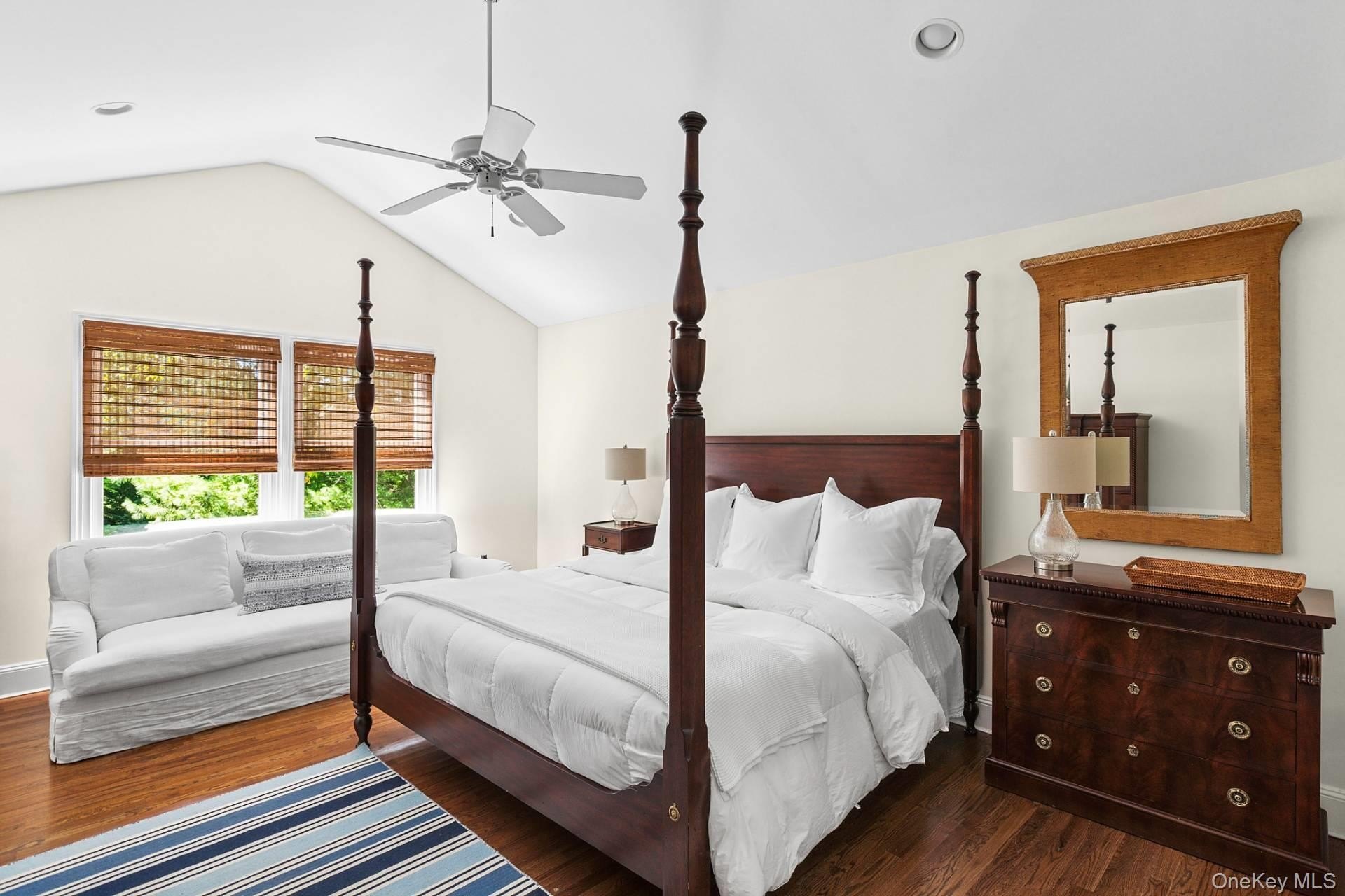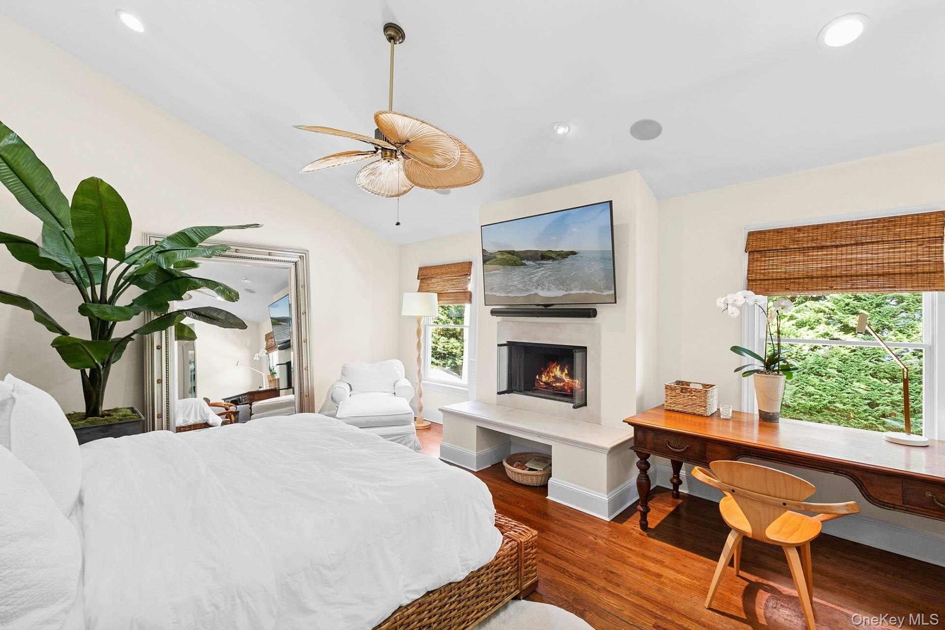 Beautifully designed with a sleek, minimalist aesthetic, this home offers an open and airy floor plan ideal for modern living. The residence features four en-suite bedrooms, all located on the second floor, highlighted by soaring ceilings throughout. Peconic Bay Beach is just one block away (approximately 500 feet) and includes deeded mooring rights. The community also offers private neighborhood beaches with amenities for swimming, paddleboarding, kayaking, mooring, and a boat launch. Set on a quiet street, this charming, village-style home is framed by manicured hedges, welcomed by a circular driveway and inviting covered front porch. Upon entry, a dramatic double-height, sun-filled foyer sets the open and bright tone for the home. The house offers approximately 3,400+/- square feet of above-grade living space, plus an additional 1,600+/- square feet of unfinished basement with ceilings that would finish at approximately 9 feet. The first floor features and a gourmet chef's kitchen with granite countertops, white high-end cabinetry, and a center island with prep sink and a second sink beneath a window overlooks the rear gardens. Professional-grade appliances include a Viking refrigerator/freezer, Viking 4-burner gas range with center grill, and two Bosch dishwashers. A large walk-in pantry provides ample storage. The adjoining great room features a stone fireplace, while the dining room flows seamlessly between the kitchen and open foyer ideal for entertaining. A light-filled first-floor office offers flexibility and could easily serve as a fifth bedroom, with a full bath available in place of the office. The first floor features 9ft ceilings throughout. The second floor is anchored by a spacious primary suite with approximately 20-foot ceilings, a fireplace with stone hearth, and a generous walk-in closet. The en-suite bath includes double vanities, a large soaking tub, and a glass-enclosed shower with stone floors. A junior primary bedroom with its own en-suite bath featuring both tub and shower completes the bedroom accommodations. A conveniently located second-floor laundry room is complemented by an additional laundry area in the basement. The meticulously landscaped grounds provide total privacy and an ideal setting for outdoor living and seamless outdoor entertainment. The backyard features an 18' x 36' heated saltwater pool with a dedicated sunbathing area, as well as a separate lounging space centered around an outdoor fireplace table-perfect for intimate evening gatherings. The spacious patio accommodates dining and grilling areas, and a sound system serves both the interior and exterior spaces, including the pool and patio. Additional features include an attached 20' x 16' garage and low taxes.