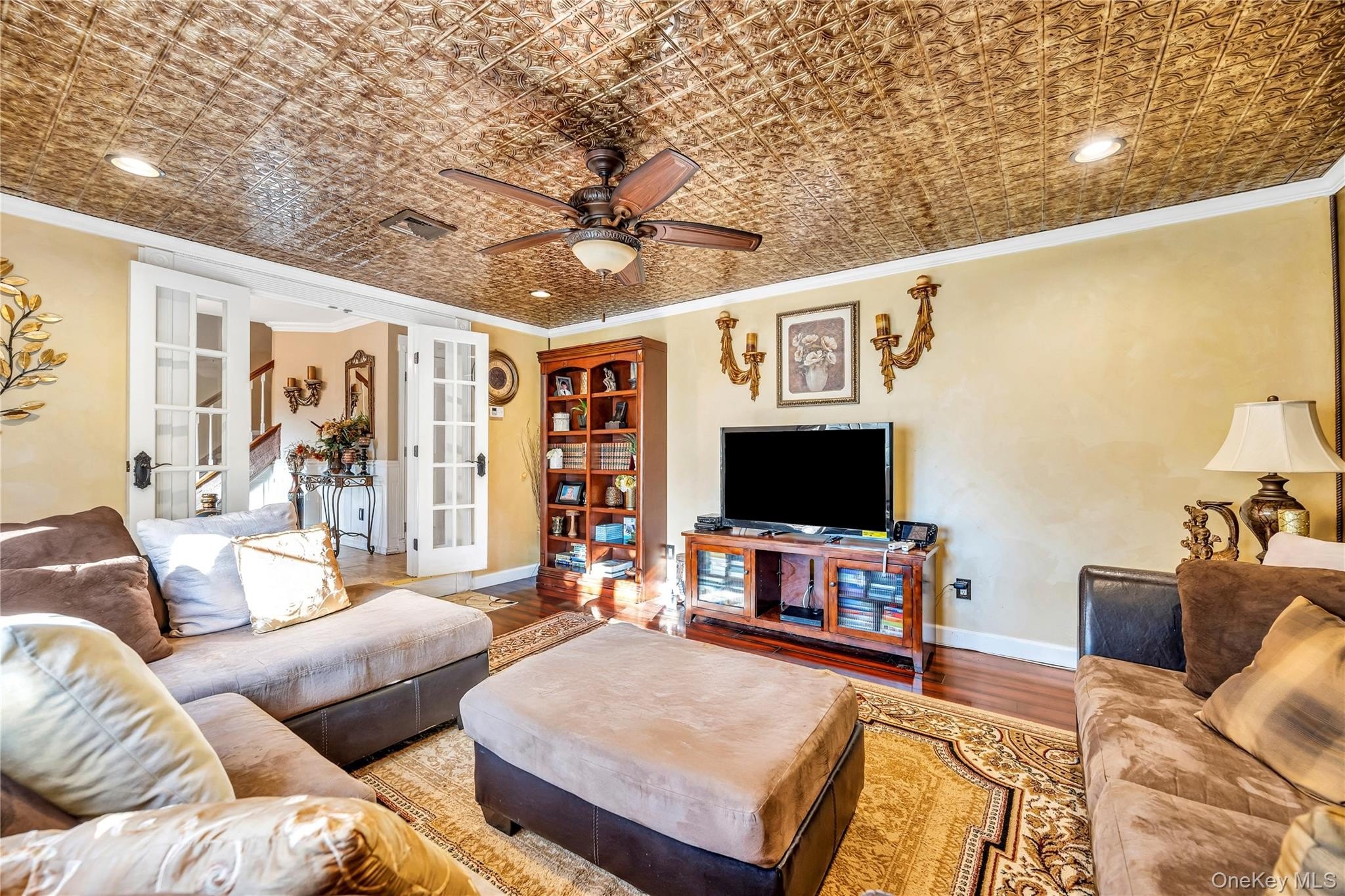 Welcome To 17 Wall Street! Updated 4 Bedroom, 2.5 Bathroom Colonial Offers Generous Living Space and Excellent Potential for Extended Family or Rental Income With Proper Permits. A Spacious Entrance Foyer With Custom Chandelier Opens to the Formal Dining Room on One Side and French Doors Leading to a Den/Formal Living Room on the Other. The Living Room Features a Wood Burning Fireplace and Convenient Access to the Garage with Washer/Dryer Area. A Half Bathroom Completes the 1st Floor and Provides a Rear Entrance to the Backyard for Added Convenience in the Warmer Months. The Open Kitchen Is Moderately Updated Just 8 Year ago With Granite Countertops and Stainless Steel Appliances. Sliding Glass Doors off the Kitchen lead to a Private Backyard Ideal for Entertaining. Upstairs Offers a Spacious Primary Bedroom With Multiple Closets and Reading Nook, Three Additional Well Sized Bedrooms, and a Full Bathroom updated 10 years ago. The Fully Finished Basement With Outside Entrance and Full Bathroom Creates a Great Opportunity for Extended Family or Potential Rental Income With Proper Permits. The Backyard Is Designed for Entertaining and Includes a Deck With Outdoor Kitchenette Featuring Sink, Wine Cooler, and Mini Fridge. The Gabana, Paver Patio and Fully Fenced Heated Inground Pool, and Hot Tub Complete the Outside Oasis All Set on a .35 Acre Lot. Updates and Amenities Include 2 Zone Central AC, 3 Zone Heating, Updated 200 Amp Electric, 7 Zone Front and Backyard Sprinklers, Pool Liner Approx 10 Years Old, Bathrooms Updated Approx 10 Years Ago, Kitchen Updated in 2017, Crown Molding, Recessed Lighting, and Anderson Windows Throughout. Great Opportunity to Be Near the Proposed Transit Hub Revitalization!