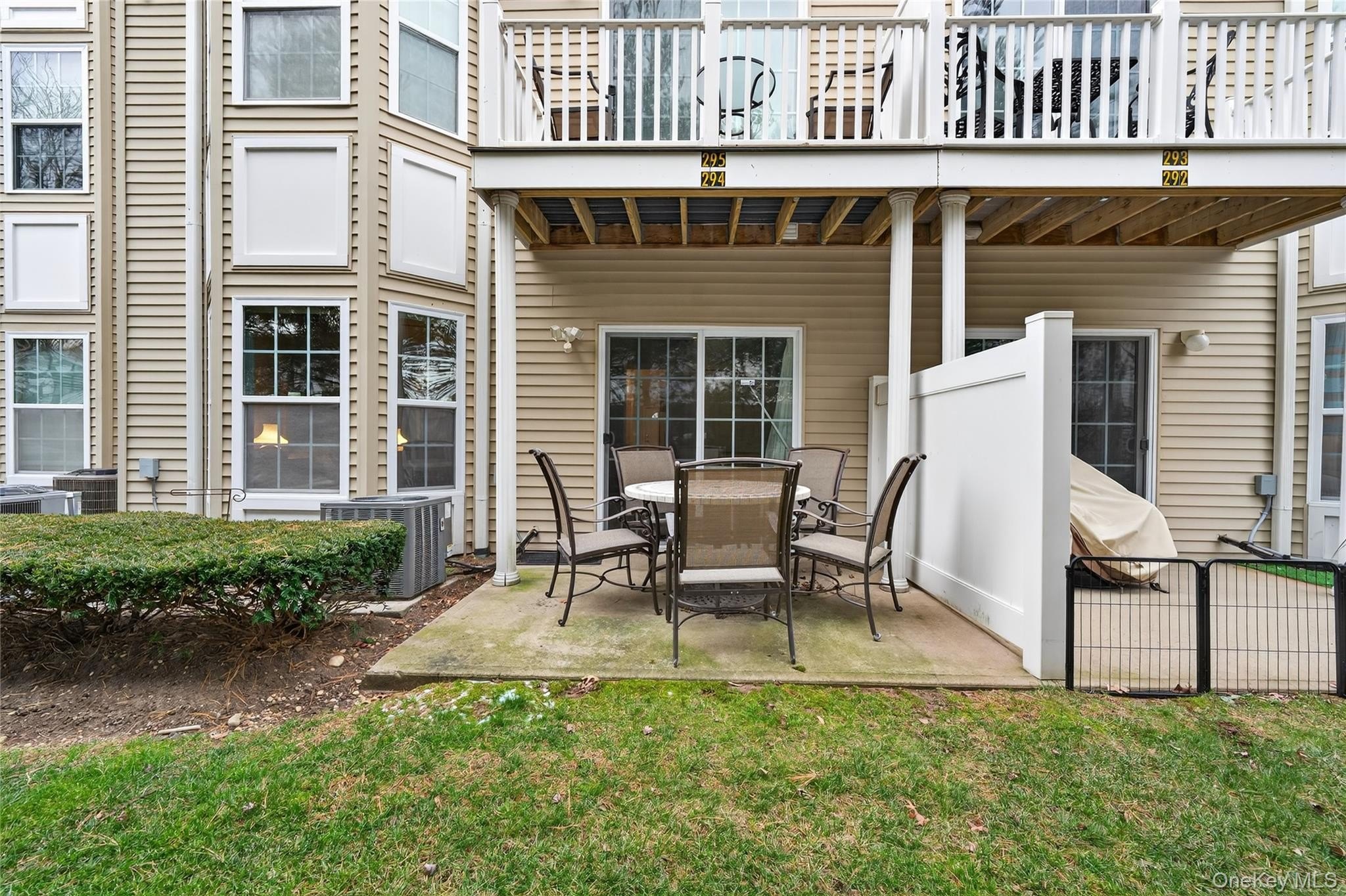 First floor condo living at its finest at The Seasons in East Meadow. This spacious 2 bedroom, 2 bath residence is located in a sought after 55+ community with 24-hour gated security, offering both comfort and peace of mind in a beautifully maintained, landscaped setting. The entire unit has been freshly painted and welcomes you with a bright, open layout designed for easy living. The generous primary suite features an en-suite bath, while the well sized second bedroom is conveniently located near a full hall bathroom. Ample closet space throughout, an in-unit washer and dryer, and a private backyard patio enhance everyday convenience. The finished lower level features brand new flooring and provides versatile bonus space-ideal for a den, home office, or hobby area-along with a walk-in closet, utility room, and additional storage to keep everything organized. Life at The Seasons is more than just a home-it's a lifestyle. Residents enjoy a clubhouse with heated indoor and outdoor pools, fitness center, game rooms, movie screenings, and a full calendar of social activities. Conveniently located near shopping, parks, and public transportation, this home offers the perfect blend of tranquility and accessibility.