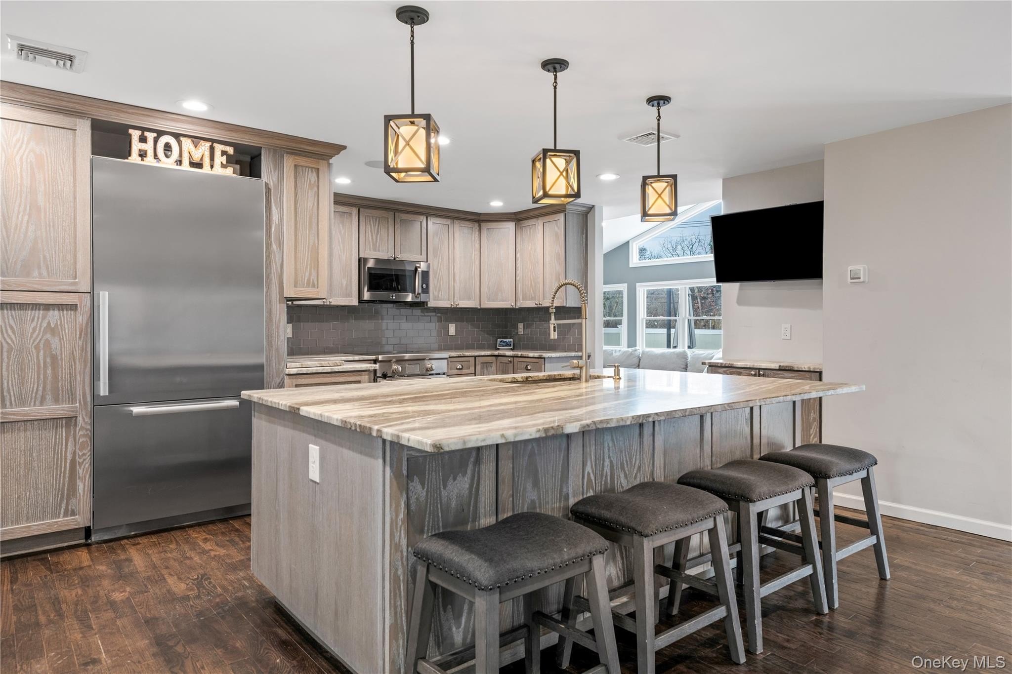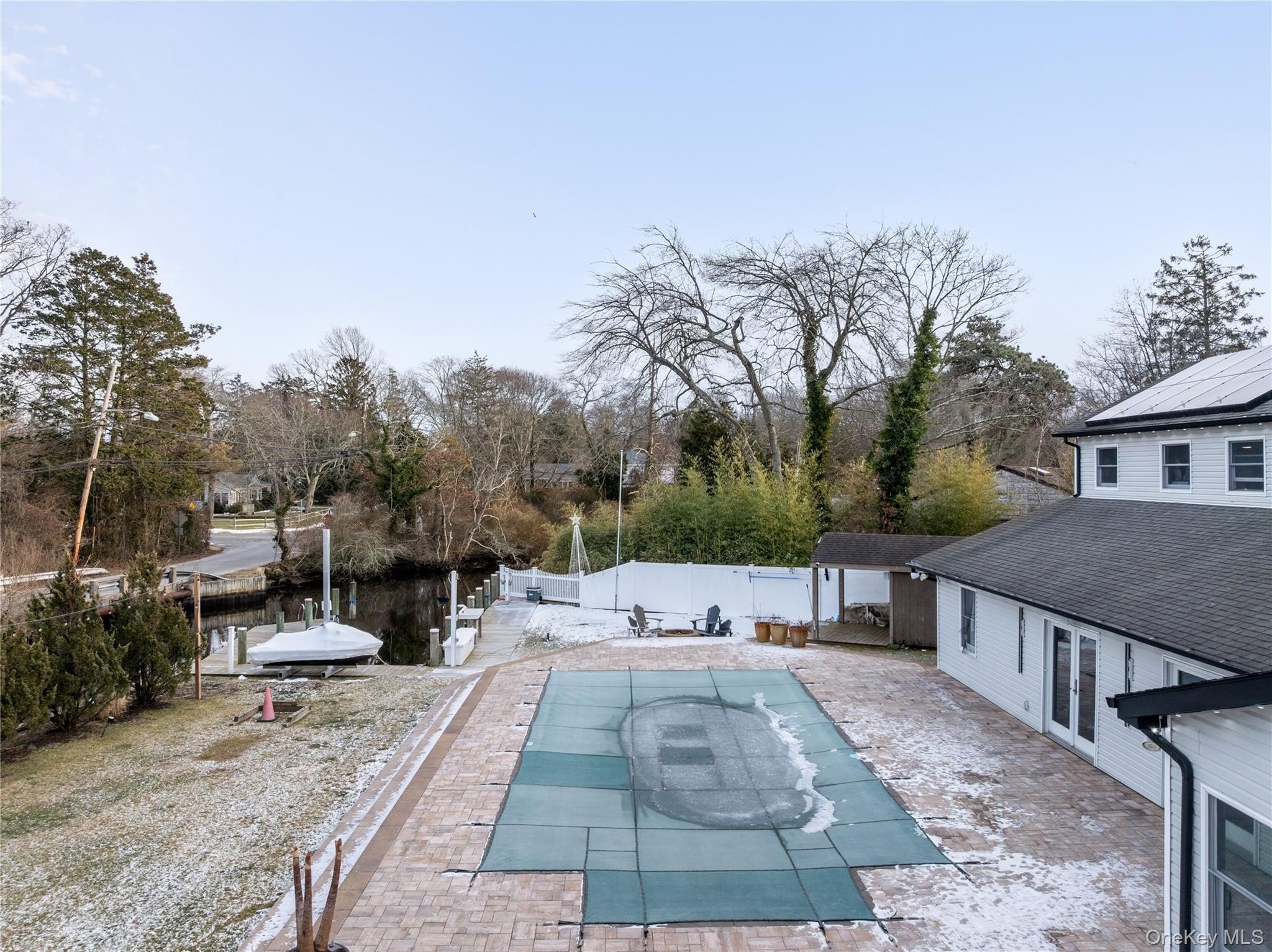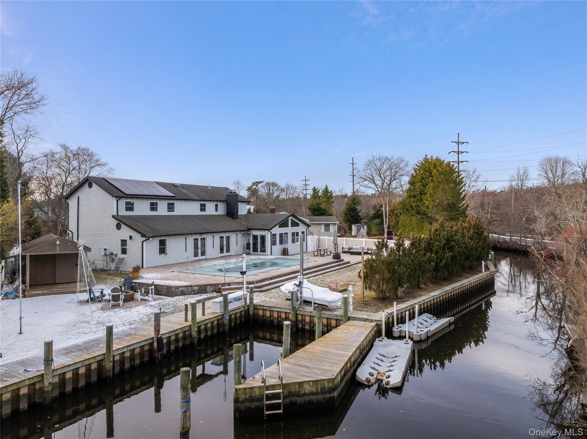 Located in Desirable Idle Hour Section of Oakdale , This Sunning 3700 sq ft Open Concept Waterfront Colonial Blends Elegant Design w/ Resort -Style Living. The First Level Is Designed For Both Everyday Living and Entertaining, Showcasing a Chefs Kitchen w/ Miele & Wolf Appliances, Granite Countertops & Stainless Finishes. Additional Highlights Include a Formal Dining Room, an Expansive Living Room w/ Soaring Ceilings, and a Stylish Bar Area w/ Miele Wine Refrigerator, Additional Miele fridge & Ice Maker. The Second Level Features Two Primary Bedrooms and a Versatile Loft, Ideal for a Home Office or Den. Enjoy Peace of Mind w/ New Central Air & Heating. Step Outside To Your Private Waterfront Oasis Featuring an In -Ground Pool, Cambridge Pave Patio , Two Jet Ski Lifts, and 140' Ft Bulkheading w/ Water & Electric. Shed is a gift, Solar Panels Are Owned.This Home Is Perfect For Embracing The Ultimate South Shore Lifestyle.