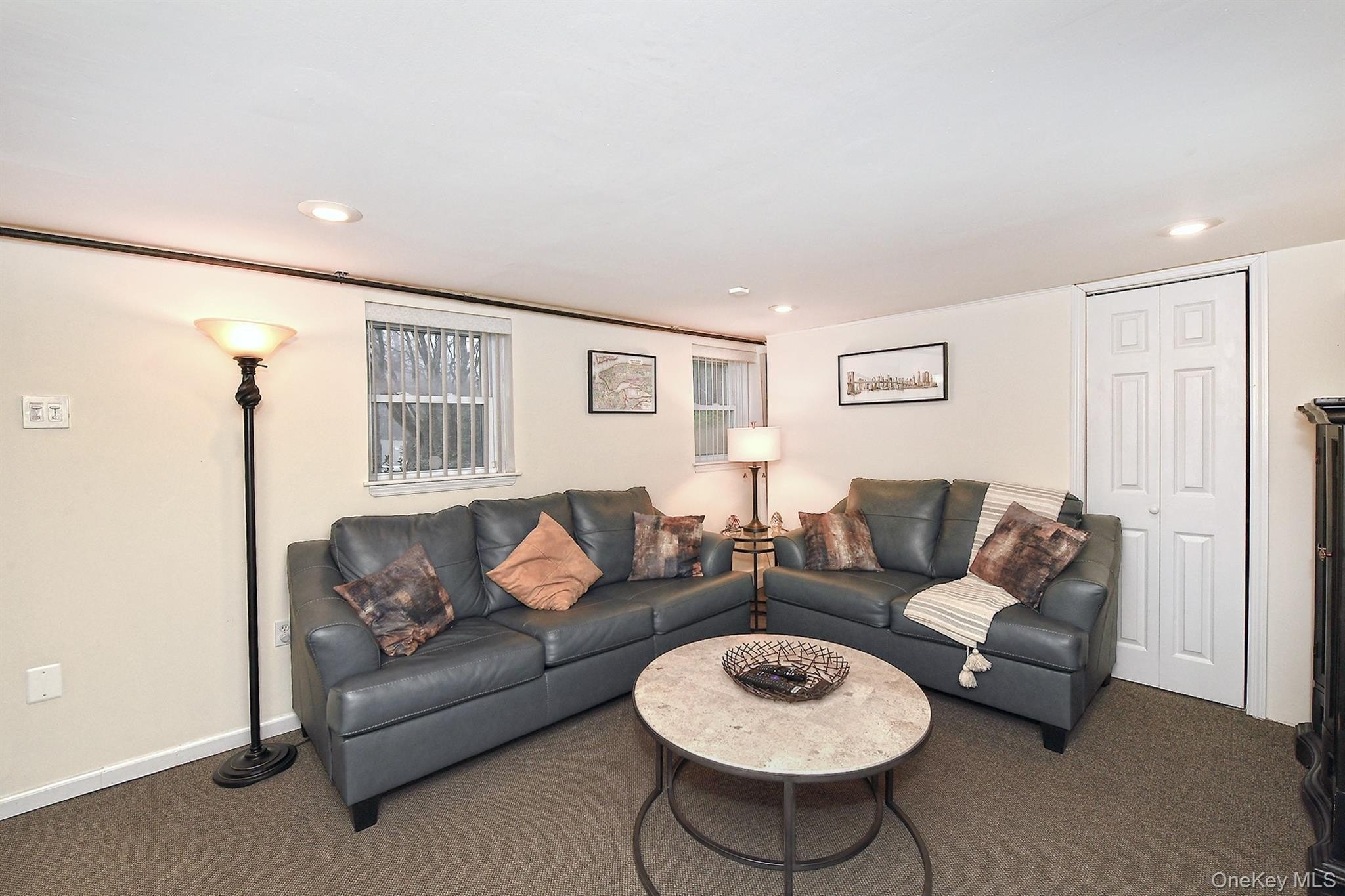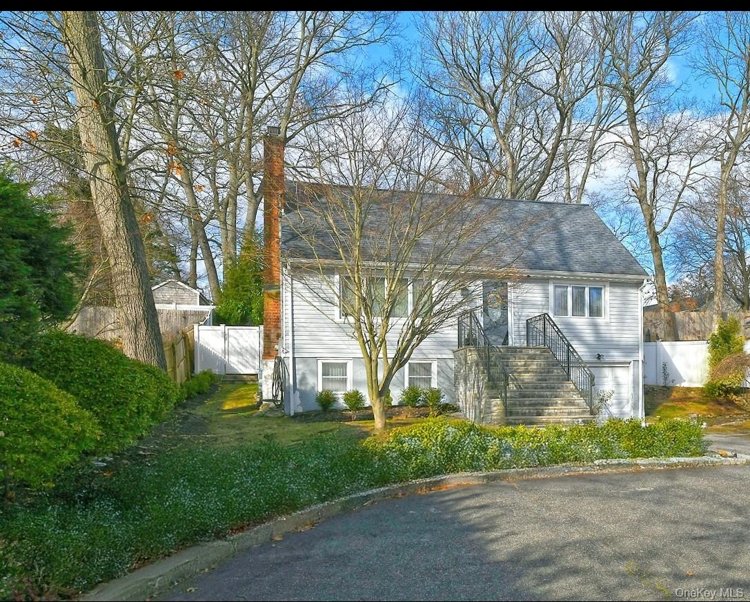 Welcome home to this beautifully updated Cape located in desirable South Huntington. This move-in-ready home offers 3 bedrooms and 2 full bathrooms, featuring a spacious living room with a wood-burning fireplace and custom marble mantel. The eat-in kitchen boasts brand new stainless steel appliances, granite countertops, and a stylish new backsplash, along with a formal dining room perfect for entertaining. The full basement is partially finished and above grade, offering additional living space, and the home includes a one-car garage with new garage door. Recent updates include new front steps, completely upgraded sprinkler system, central air conditioning, attic fan, fresh interior paint, Hard wood floors throughout, new light fixtures throughout, a new back door, updated bathrooms with custom vanities (marble downstairs and quartz upstairs), washer and dryer brand new , new carpeting in the basement and upstairs, a state-of-the-art security alarm system, baseboard moldings, a gutter guard system, and more. The professionally landscaped backyard features a new retaining wall and provides a lovely outdoor setting. The home is set back from the road and offers a large circular driveway with ample parking. Ideally located near major highways, shopping at Walt Whitman Mall and Huntington Square, minutes to the LIRR and Huntington Village. Located in the South Huntington School District. True taxes: $11,838.21 (does not include STAR rebate). If you're looking for a home that is truly move-in ready, look no further!