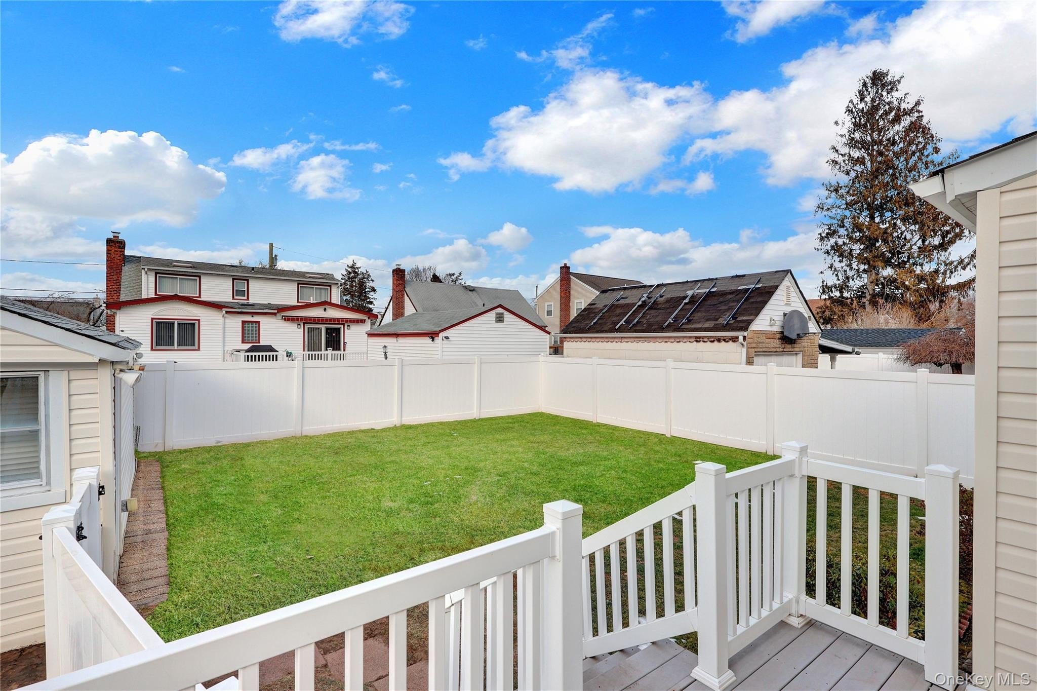 Welcome to this beautifully maintained brick expanded Cape Cod style home, ideally situated on a quiet middle block in a great location. This home offers four bedrooms and two full bathrooms, blending classic charm with thoughtful updates throughout. Hardwood floors and Andersen windows enhance the home's warmth and natural light, while central air conditioning ensures year-round comfort. The main living spaces flow seamlessly to a deck overlooking the backyard, perfect for outdoor entertaining or relaxing. A finished basement provides valuable additional living or recreational space. Exterior features include in-ground sprinklers, a newer roof (2019), and updated siding (2021), offering peace of mind for years to come. An extension/dormer completed in 1990 adds to the home's spacious layout, and the larger-than-average single-car garage provides excellent storage and convenience. With its solid construction, functional layout, and desirable location, this home offers endless potential for today's buyer. Low taxes!!