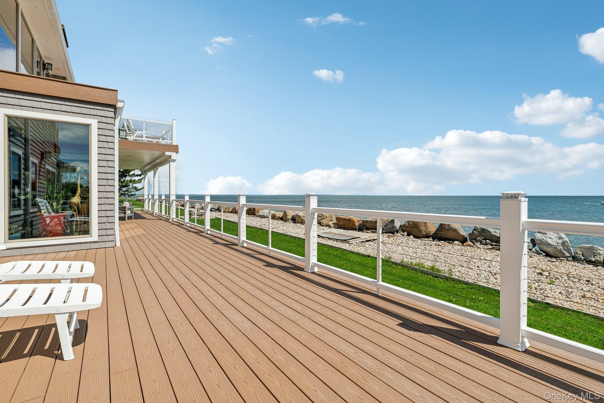 An extraordinary opportunity to own one of Asharoken's most iconic waterfront estates. Spanning over 4,000 square feet, this custom contemporary commands approximately 220 feet of pristine, private sandy beachfront along the Long Island Sound-second only to the legendary Morgan Estate-delivering breathtaking, unobstructed 180-degree water views from nearly every room. Designed for elevated coastal living, the home showcases a sun-filled open-concept layout, anchored by a striking chef's kitchen with custom finishes, expansive entertaining spaces, and refined architectural details throughout. The primary suite is a true retreat, featuring dual private decks, custom closets, and a spa-inspired ensuite bath that rivals a luxury resort. Soaring ceilings, Pella windows, multiple Trex decks, and premium materials enhance the seamless indoor-outdoor lifestyle. Beyond its dramatic beauty, this estate offers rare peace of mind and modern convenience-including separate guest quarters, two gas fireplaces, a walk-out lower level to the garage, a brand-new septic system, new driveway, privacy gate, and professionally enhanced landscaping. Even more exceptional: no flood insurance required and a full-house generator-true rarities for waterfront living. Rated Diamond+++, this is more than a home-it's a private coastal sanctuary where every day feels like a vacation, set within one of Long Island's most exclusive and sought-after enclaves.