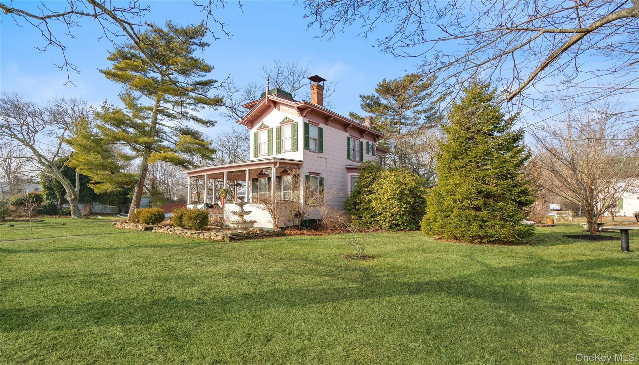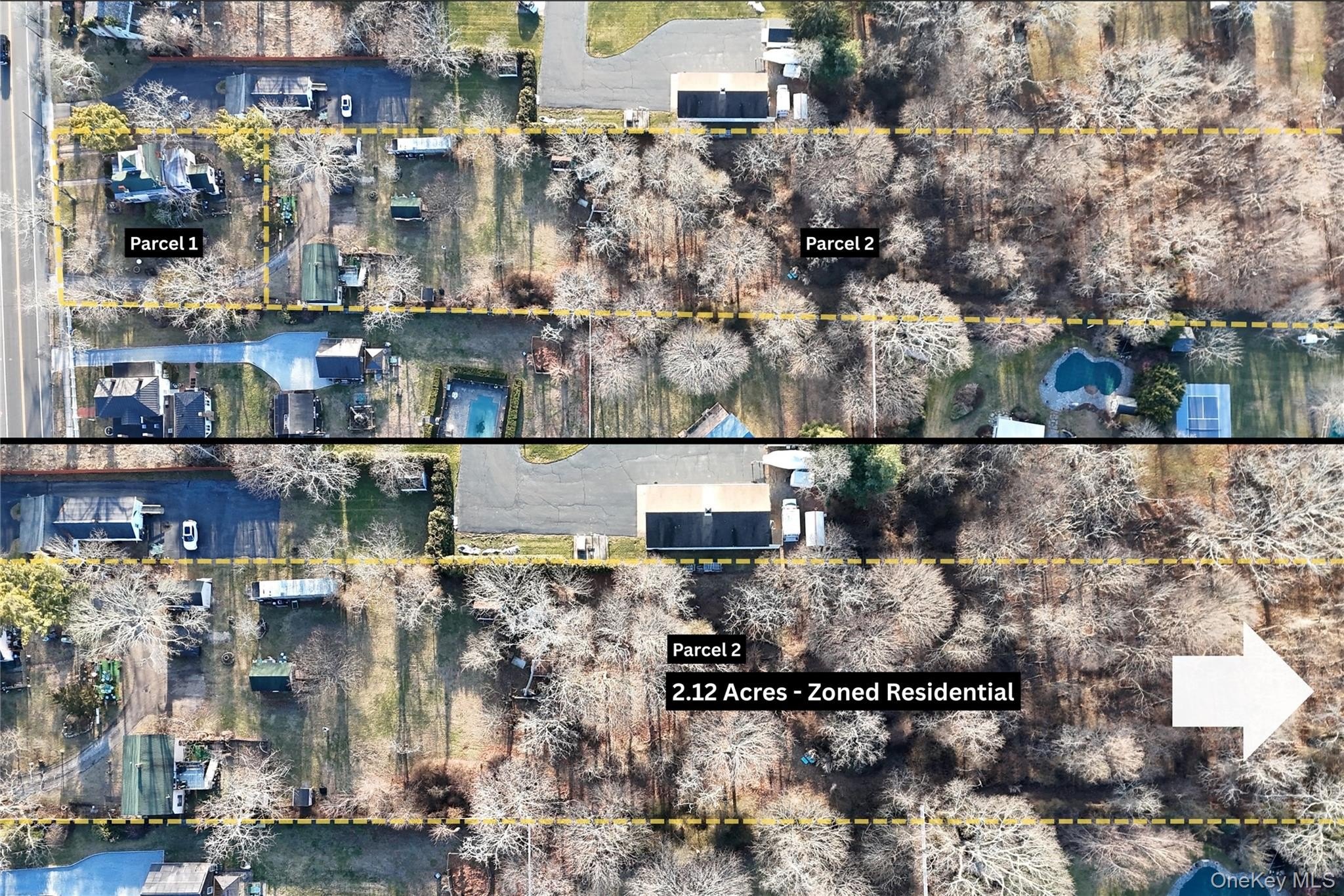 Two parcels totaling 2.5 acres, with more than 120 feet of frontage on Montauk Hwy in quaint downtown East Moriches. The front parcel is .38 acre, zoned commercial with maximum visibility - approx. 500 ft. east of Atlantic Ave, just before the bend headed towards Eastport, Speonk and the Hamptons. On the front parcel sits a unique and historical Victorian home built in the late 1800s, beaming with charm and potential. A must-see! Featuring 3 bedrooms and 3 full bathrooms including a primary en-suite, original hardwood floors, plaster walls and hand-crafted crown moldings, high ceilings, 2 wood-burning fireplaces made from black Italian marble, eat-in-kitchen, formal dining room and panoramic views of Main Street from its 3rd story "widow's peak", plus natural gas heating. Large U-driveway makes for easy access to and from the road. The back parcel is 2.12 acres, zoned residential, flat and only partially wooded. It includes a large outbuilding/garage which once functioned as a barn and later on as an antique shop, also heated with natural gas. Both properties are being sold together, but with proper permits offer the opportunity for commercial use directly on Main Street, and a possible flag lot in the rear where more than one home could potentially be built. Taxes listed are for both parcels combined. Survey attached is from 2019. By appointment only!